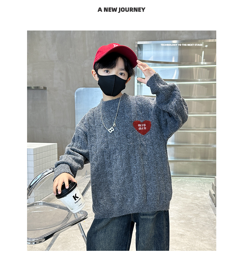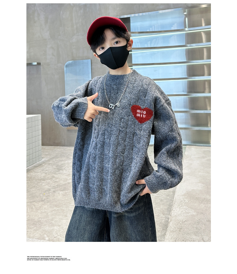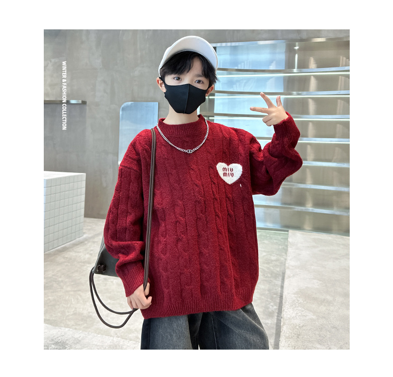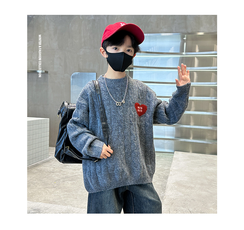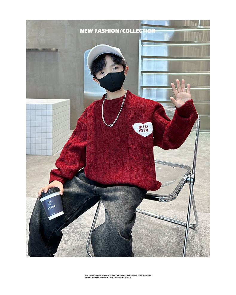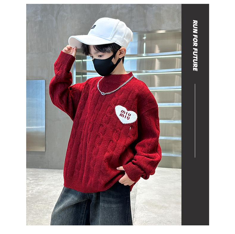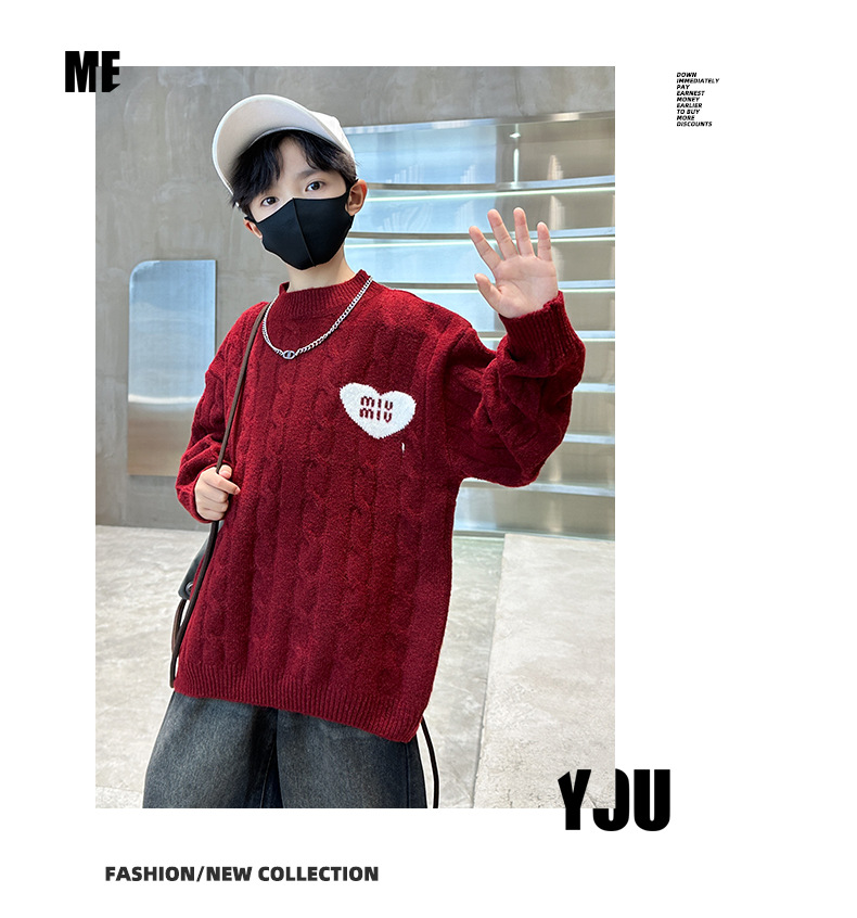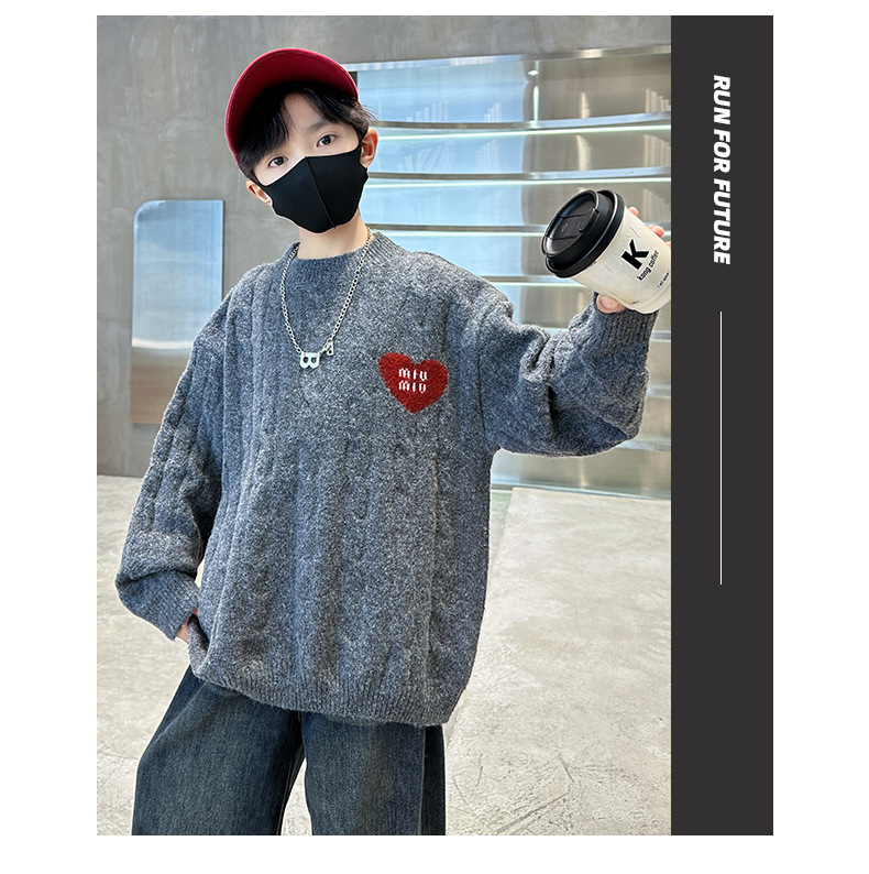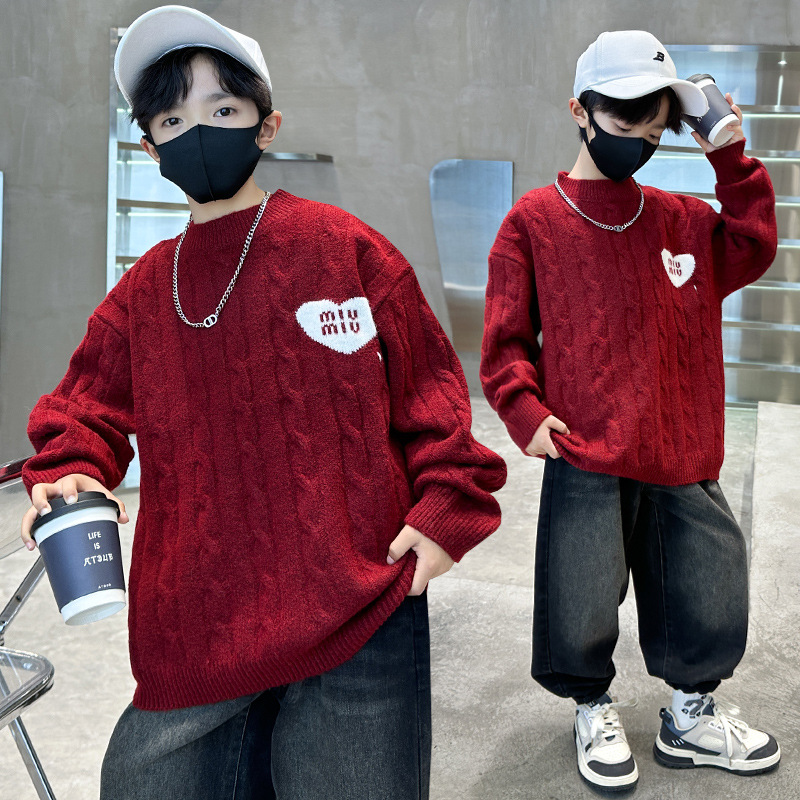 소년 사랑 크루 넥 스웨터 가을 겨울 서양 스타일 큰 어린이 겨울 스웨터를위한 두꺼운 따뜻한 니트 베이스 셔츠