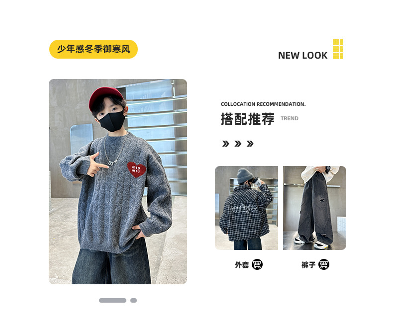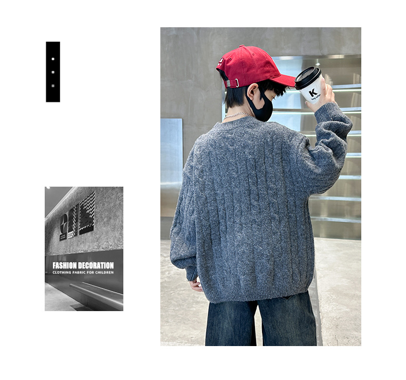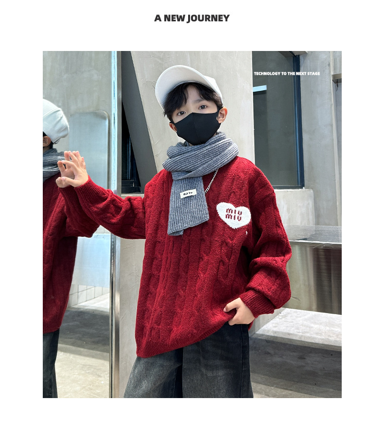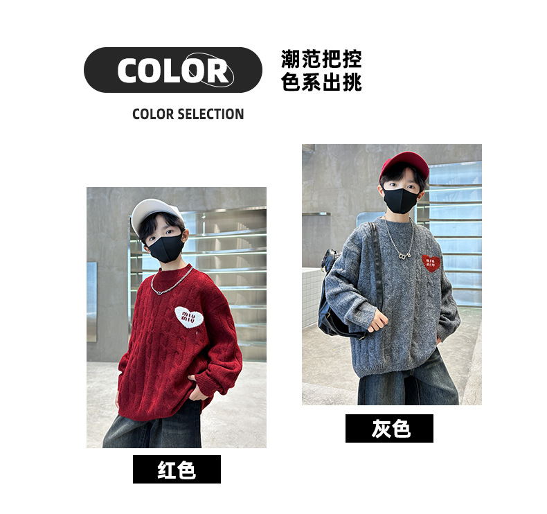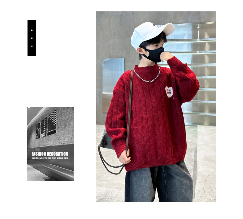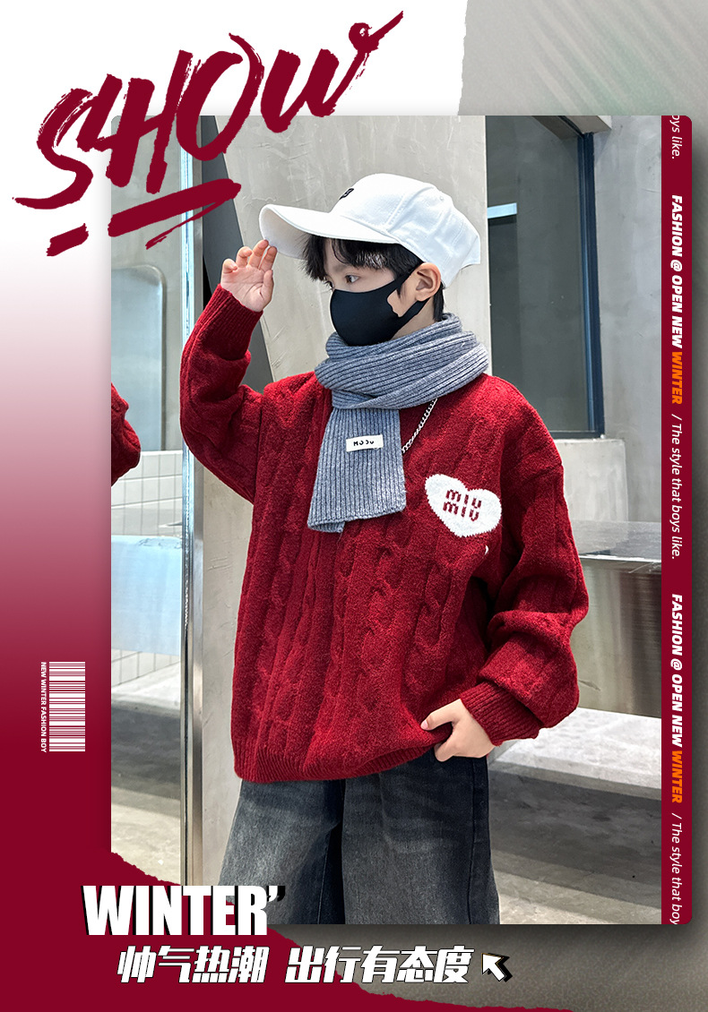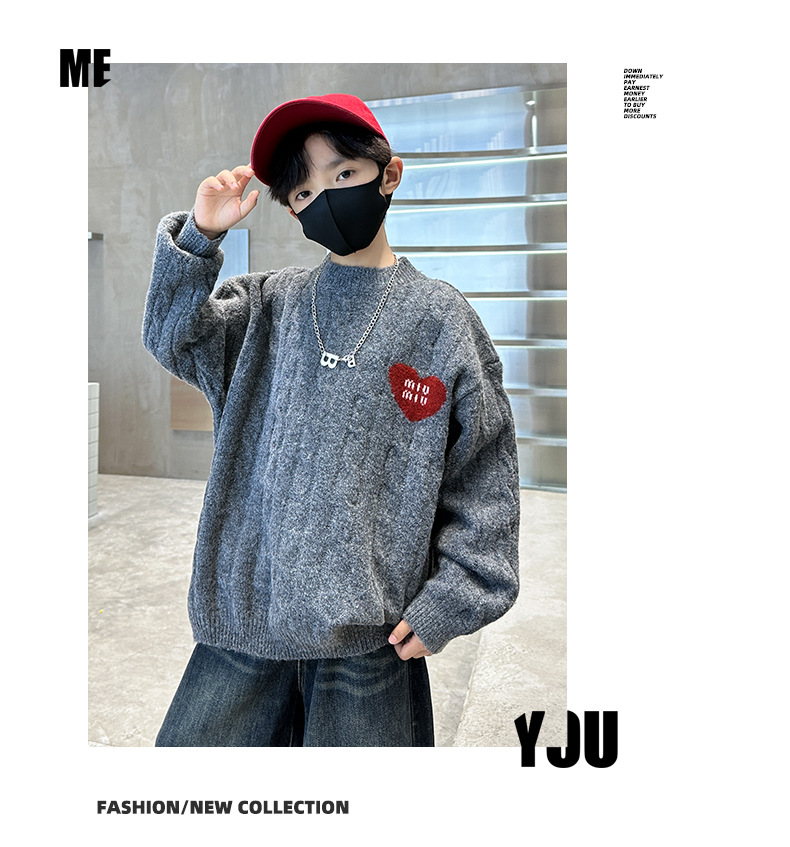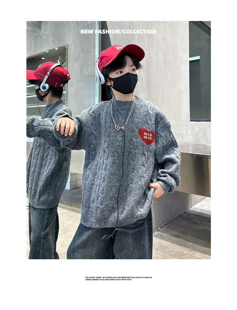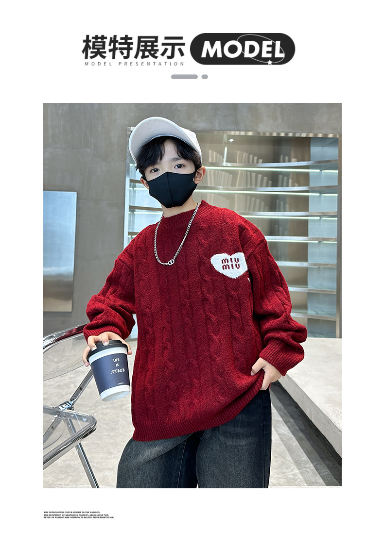 소년 사랑 크루 넥 스웨터 가을 겨울 서양 스타일 큰 어린이 겨울 스웨터를위한 두꺼운 따뜻한 니트 베이스 셔츠