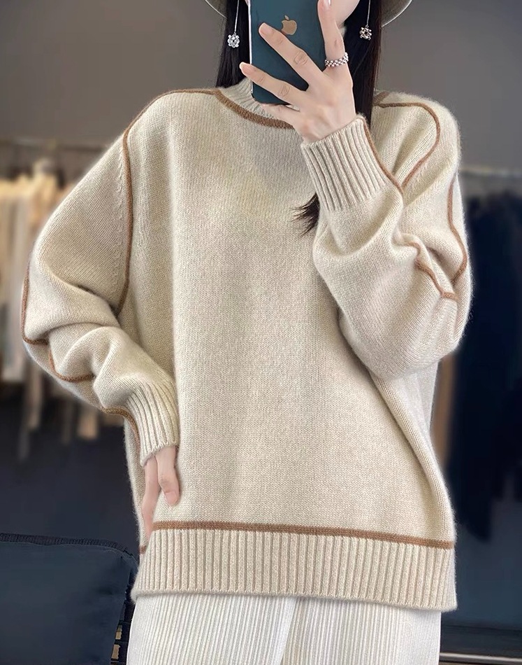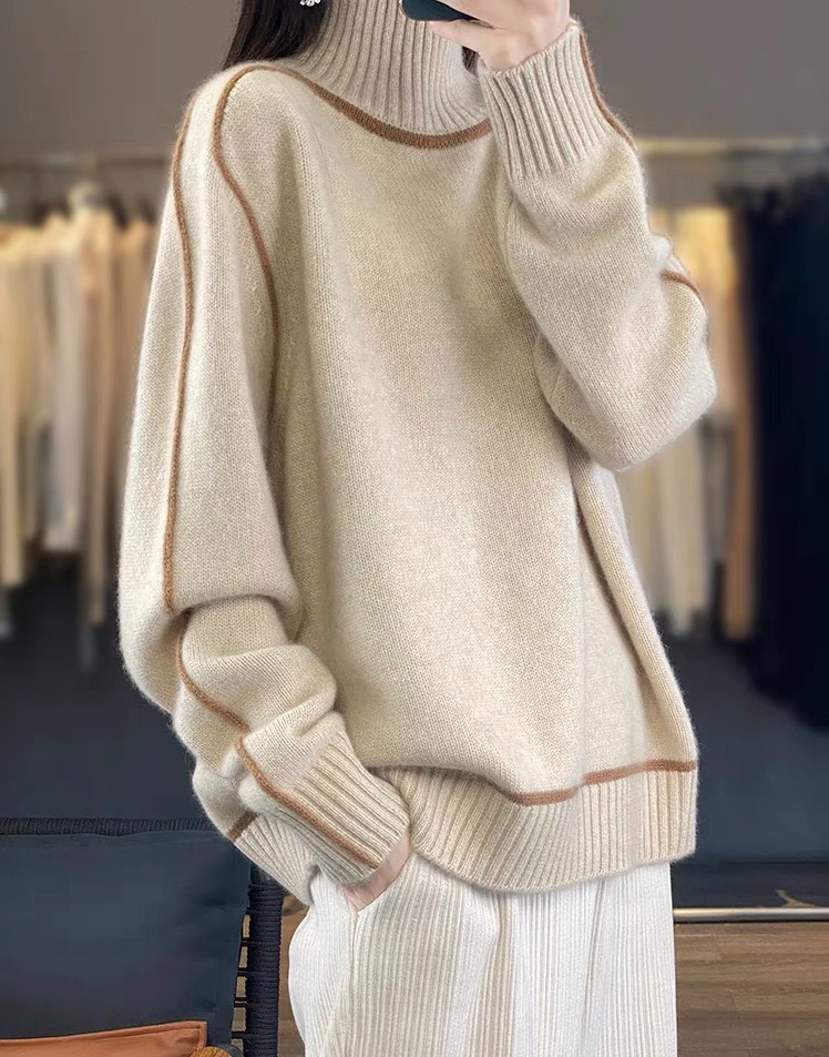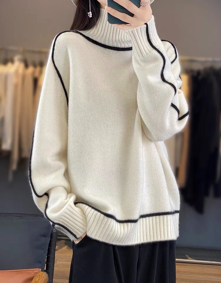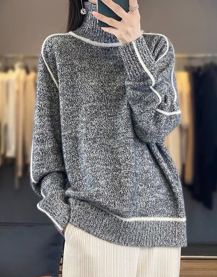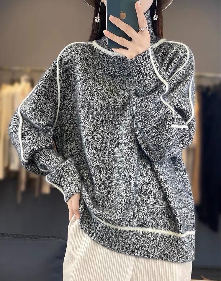 유럽 역 국경 간 게으른 스타일 터틀넥 스웨터 여성의 가을과 겨울 새로운 느슨한 캐주얼 풀오버 스웨터 톱 여성