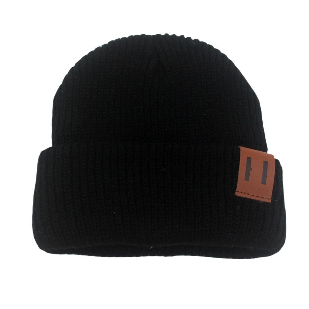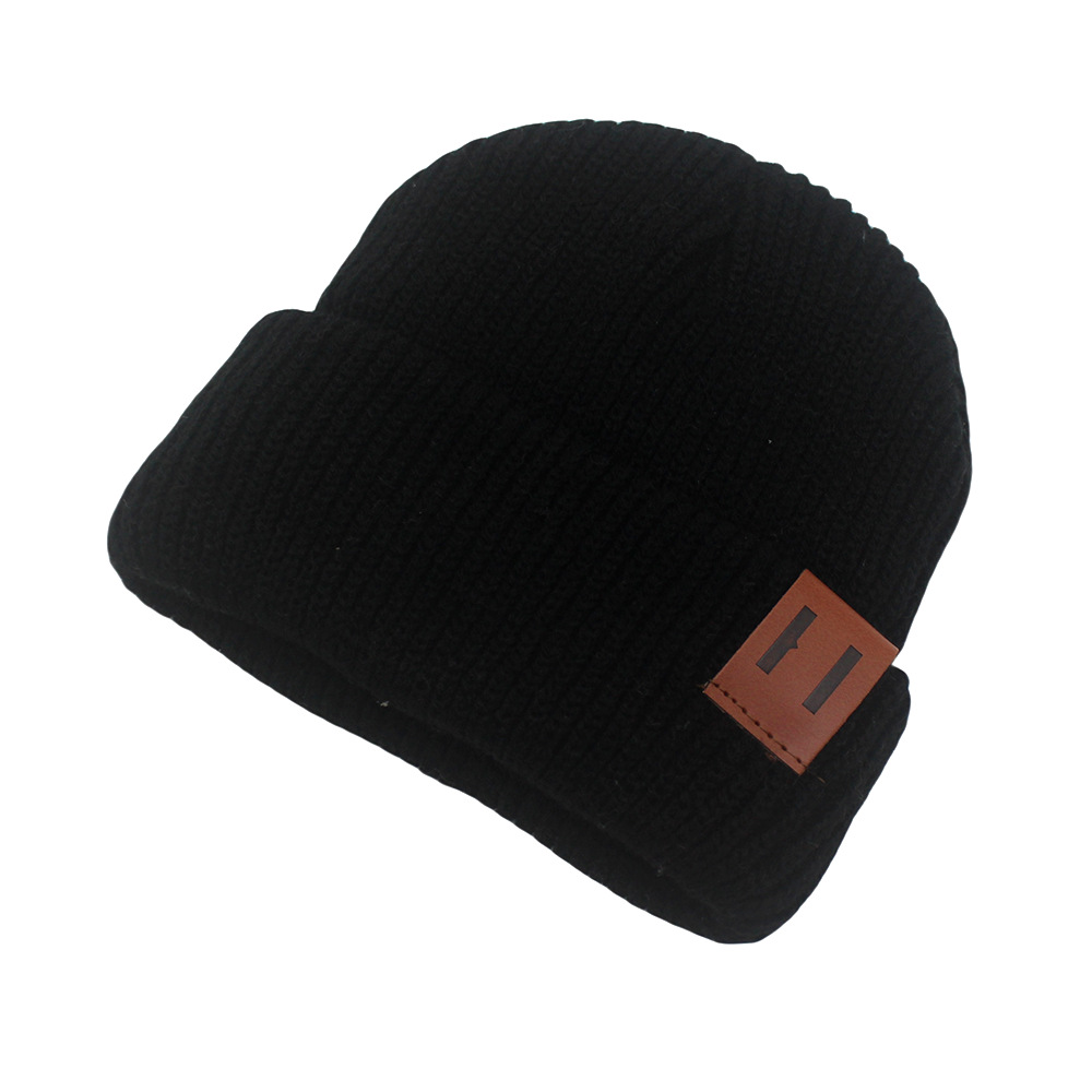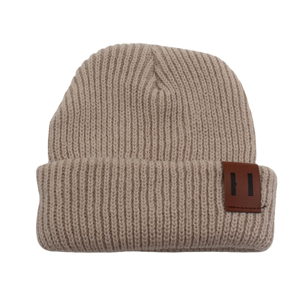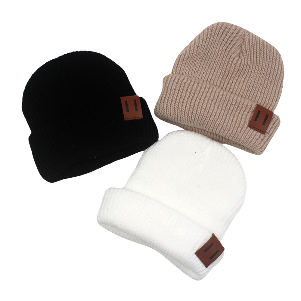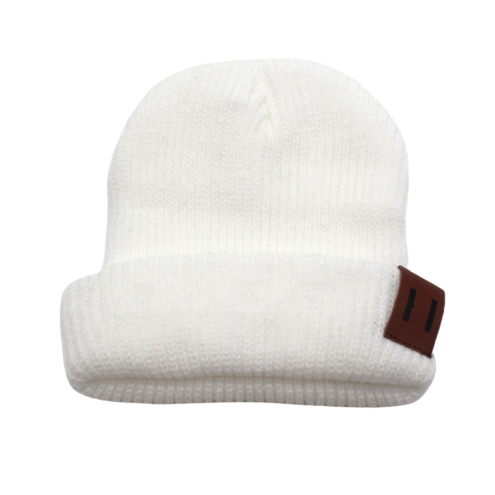 국경 간 뜨거운 판매 맞춤형 어린이 니트 모자 가을과 겨울 아기 따뜻한 가죽 표준 솔리드 컬러 울 모자 아기 풀오버 캡