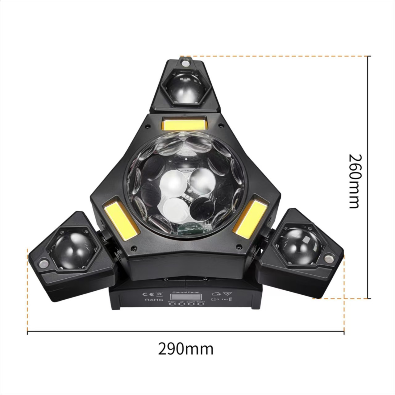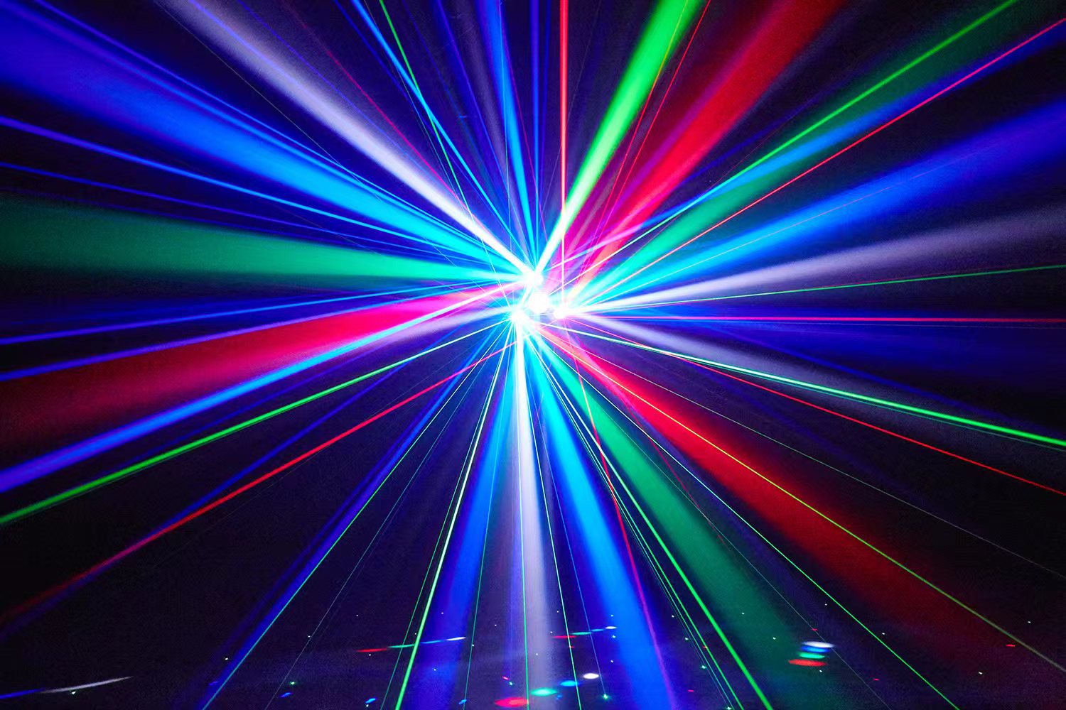 50mW红激光,50mW绿激光,50mW蓝激光,3颗10W金黄光频闪,