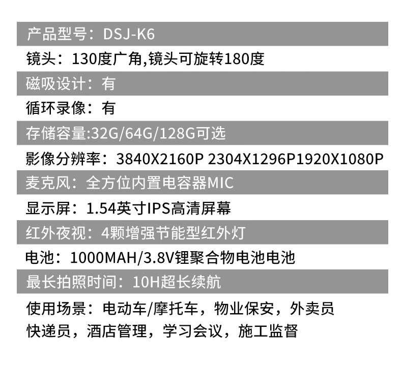• [4K 울트라 클리어-마이크로 법 집행 기록 펜] DSJ-K6-128G