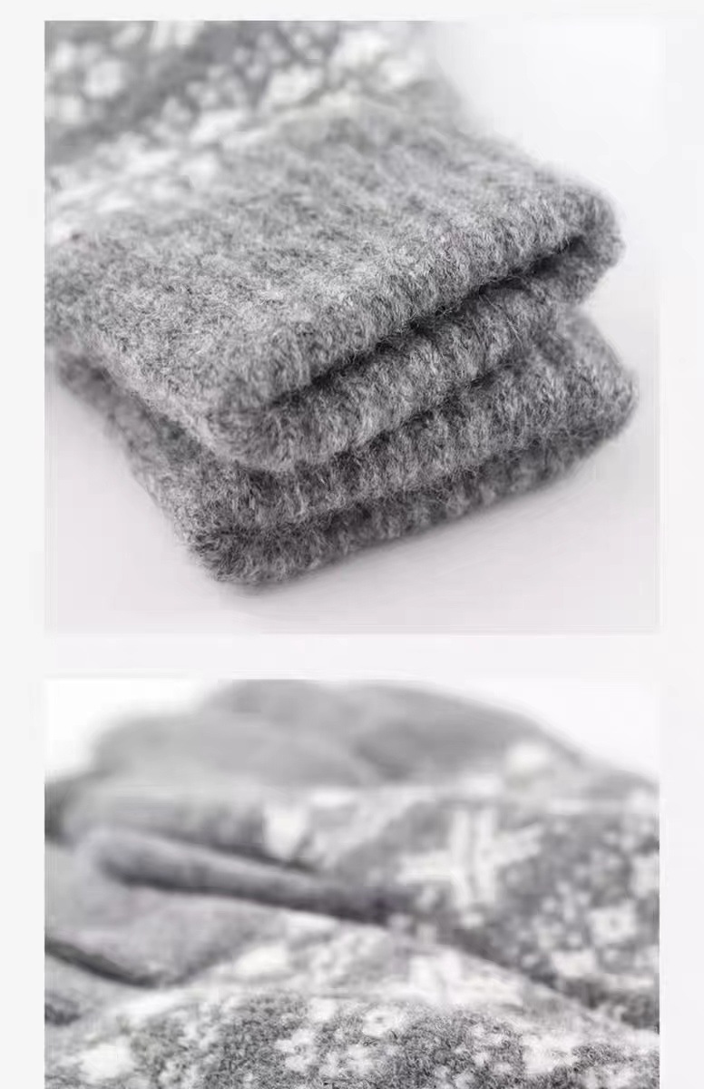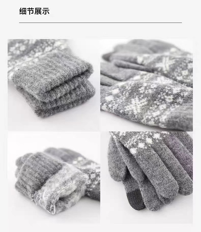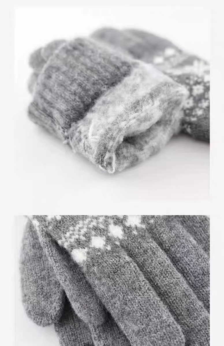 MUJ 남성과 여성의 따뜻한 장갑 눈송이 자카드 터치 스크린 장갑 겨울 방한 라이딩 니트 핑거 장갑