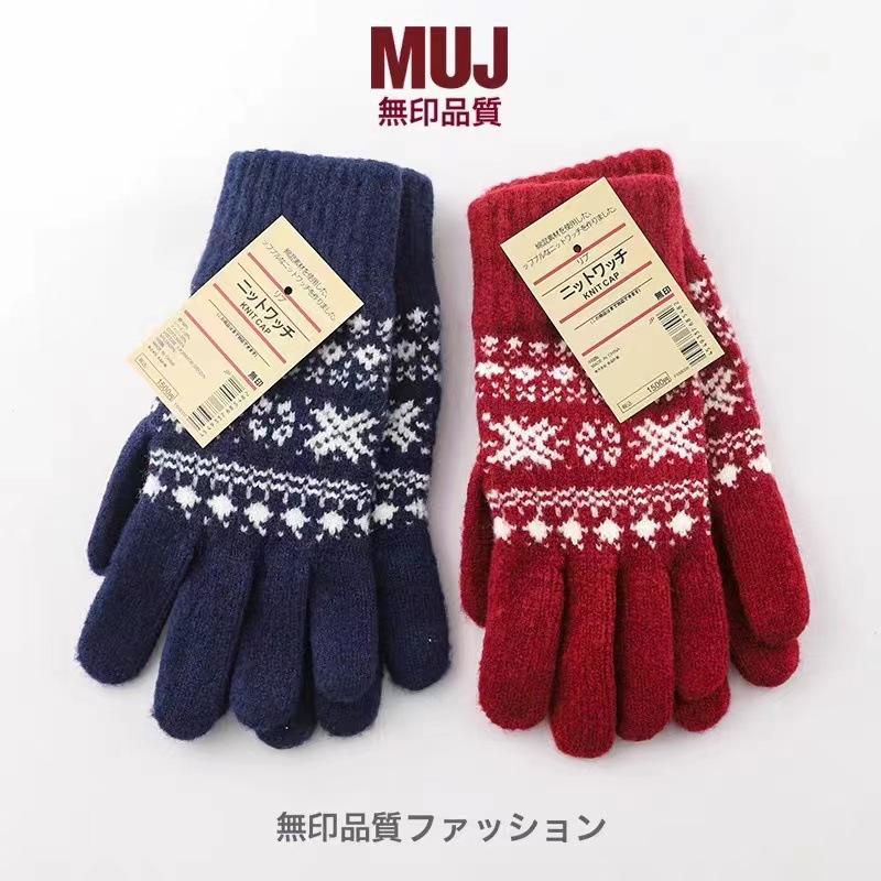 MUJ 남성과 여성의 따뜻한 장갑 눈송이 자카드 터치 스크린 장갑 겨울 방한 라이딩 니트 핑거 장갑스토어 가기