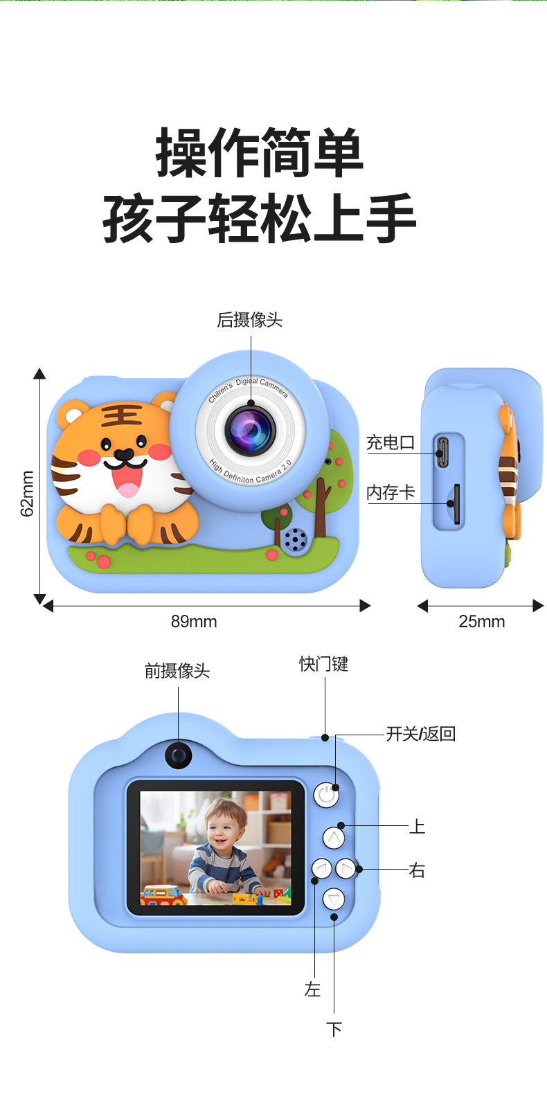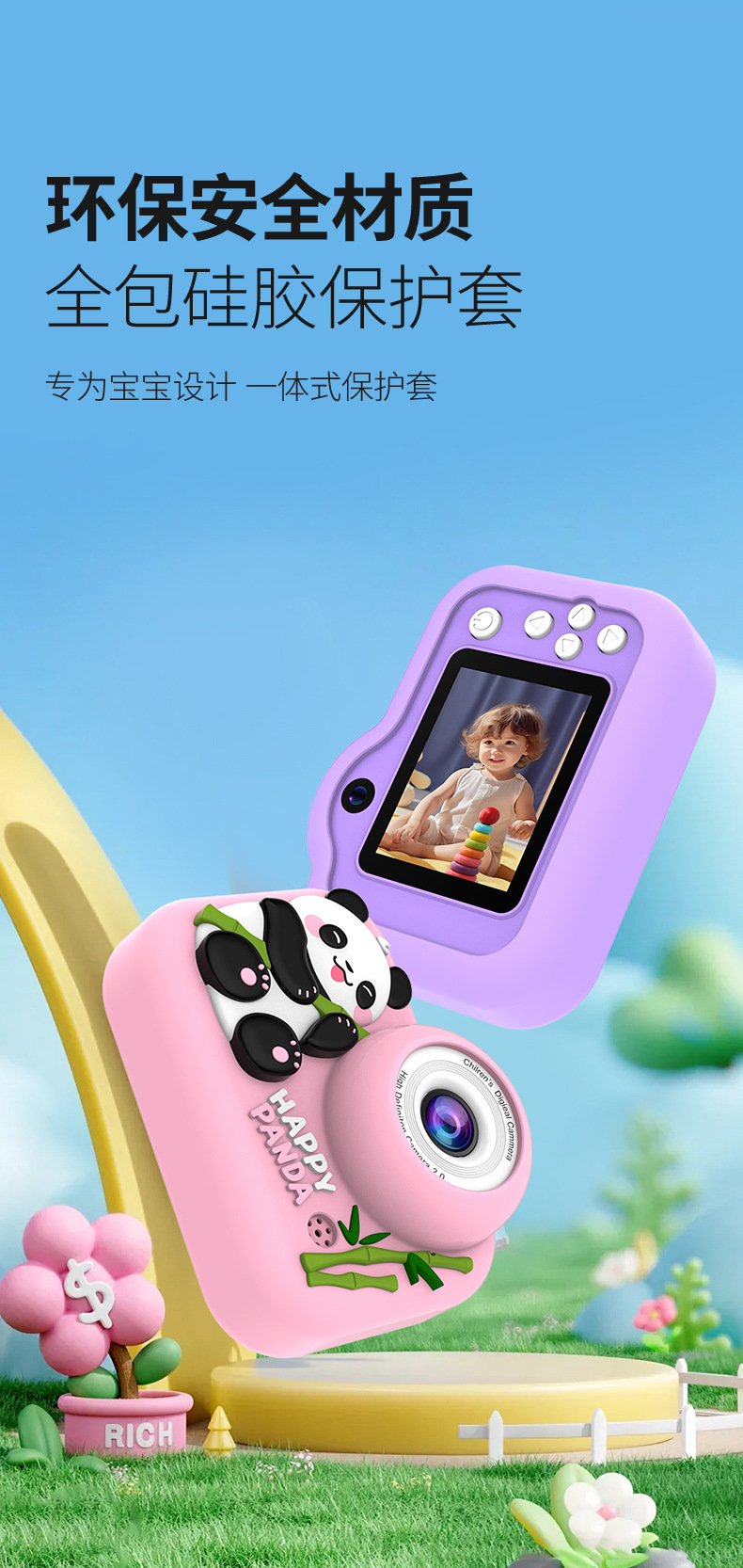 어린이용 카메라 전후면 듀얼 카메라 고화질 미니 카메라 실리콘 보호 케이스 어린이 선물용 카메라스토어 가기