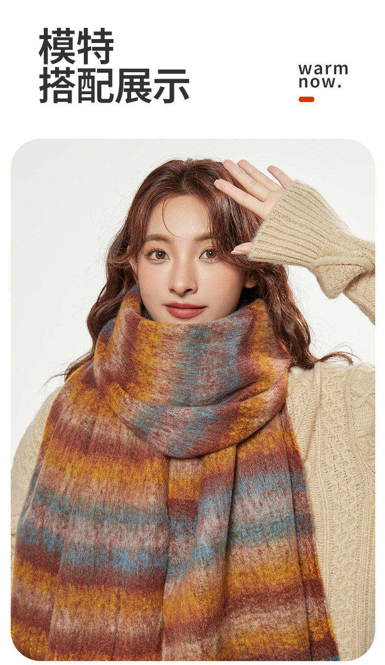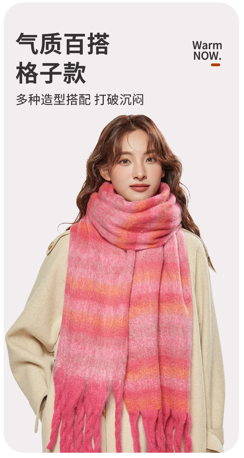 빈티지 그린 격자 무늬 스카프 여자 가을과 겨울 올매치 하이 엔드 성격 따뜻한 목도리 스카프 한국식 새로운스토어 가기
