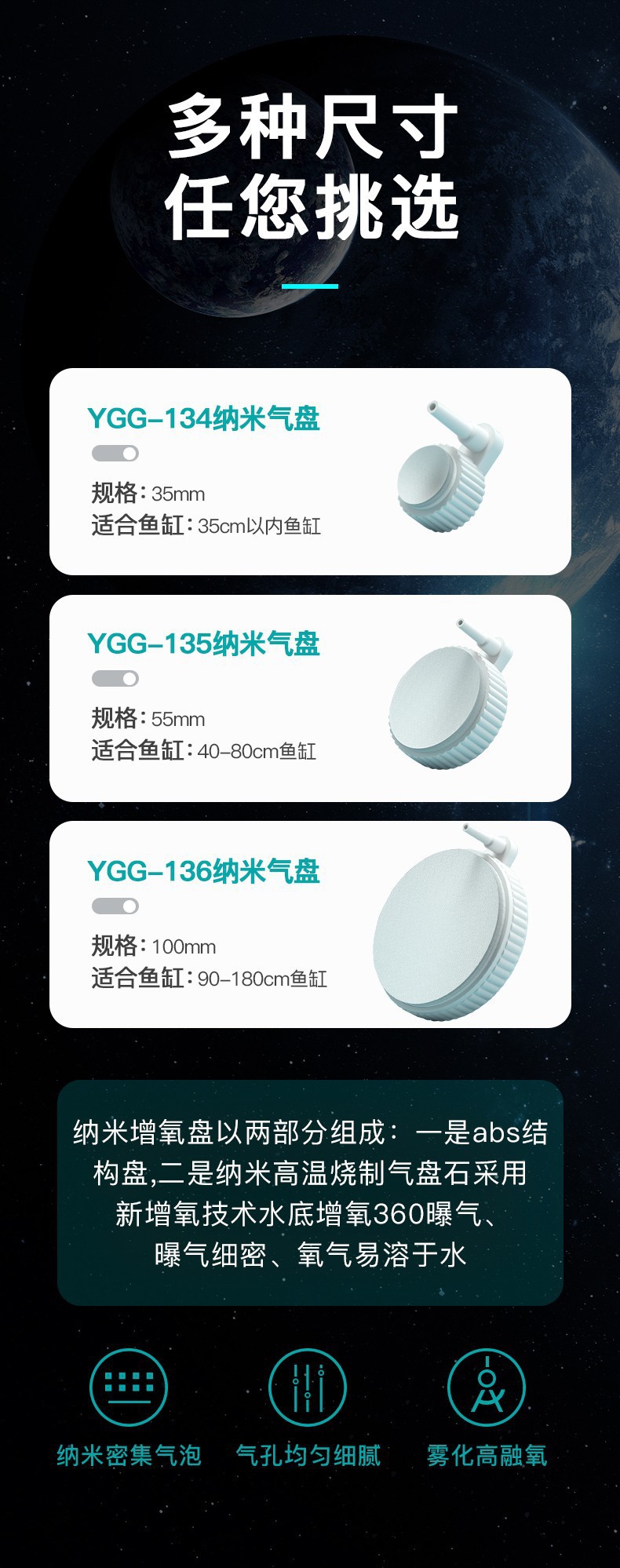 • 50mm 나노미터 공기 디스크 + 액세서리 + 산소 튜브 3m