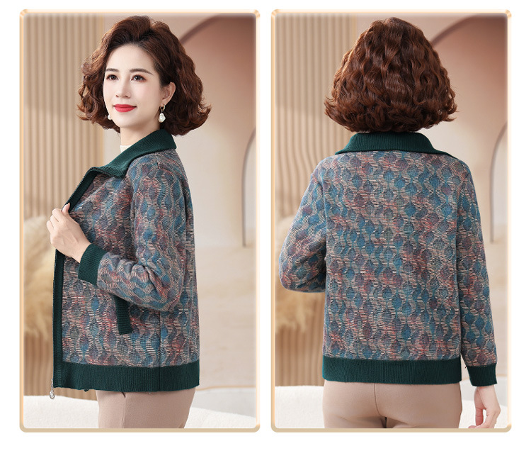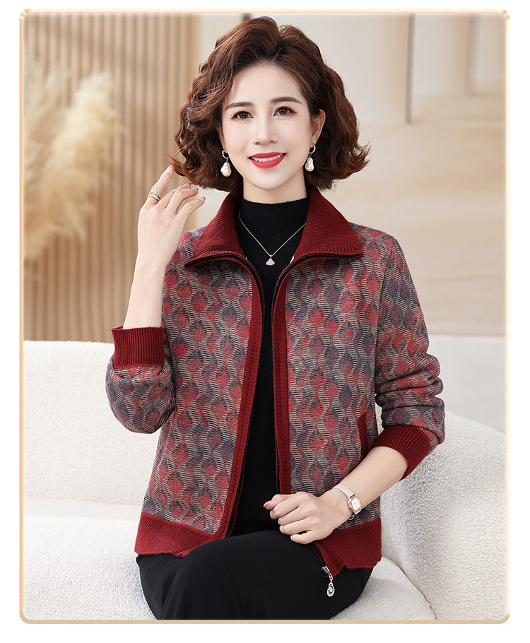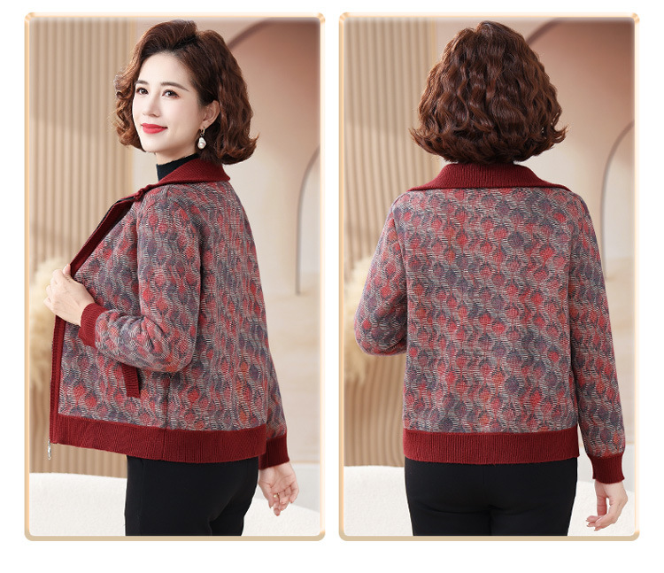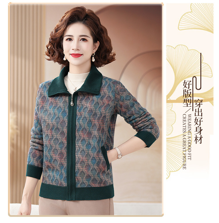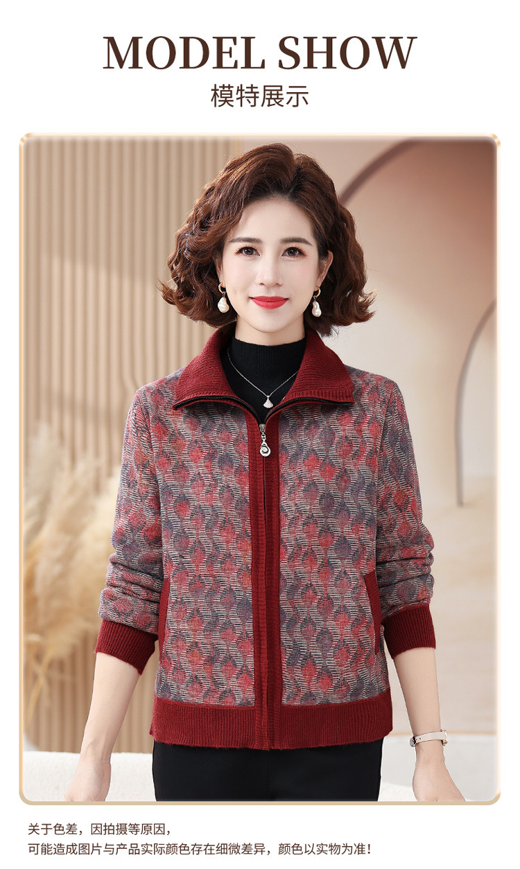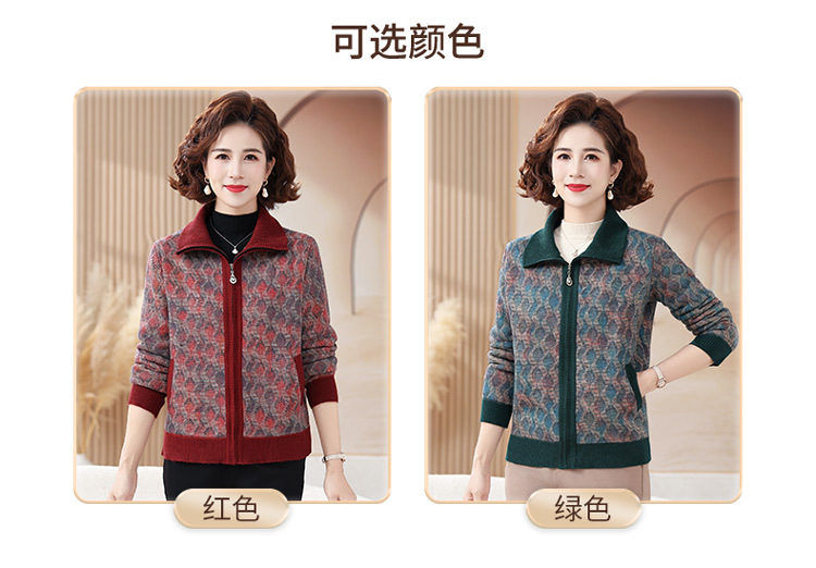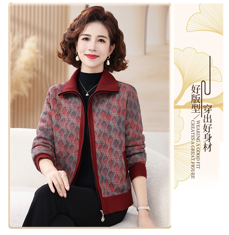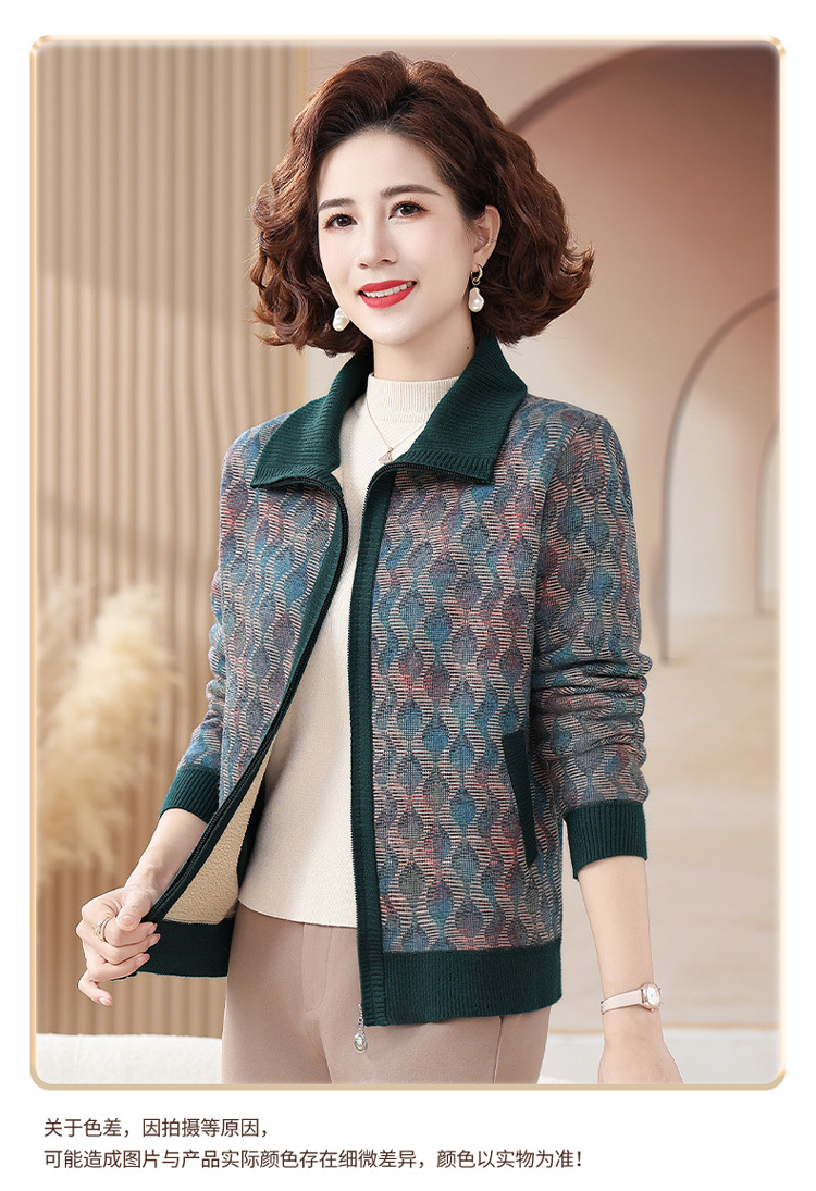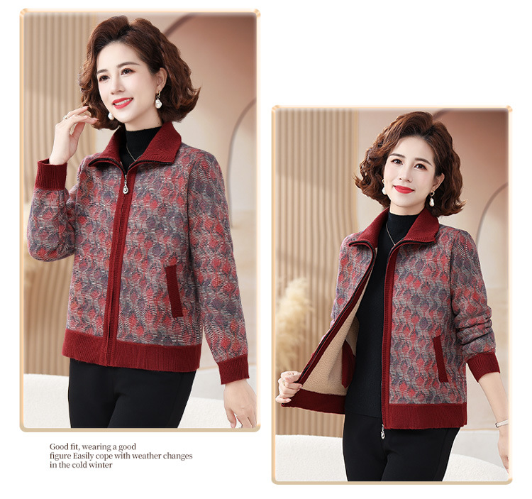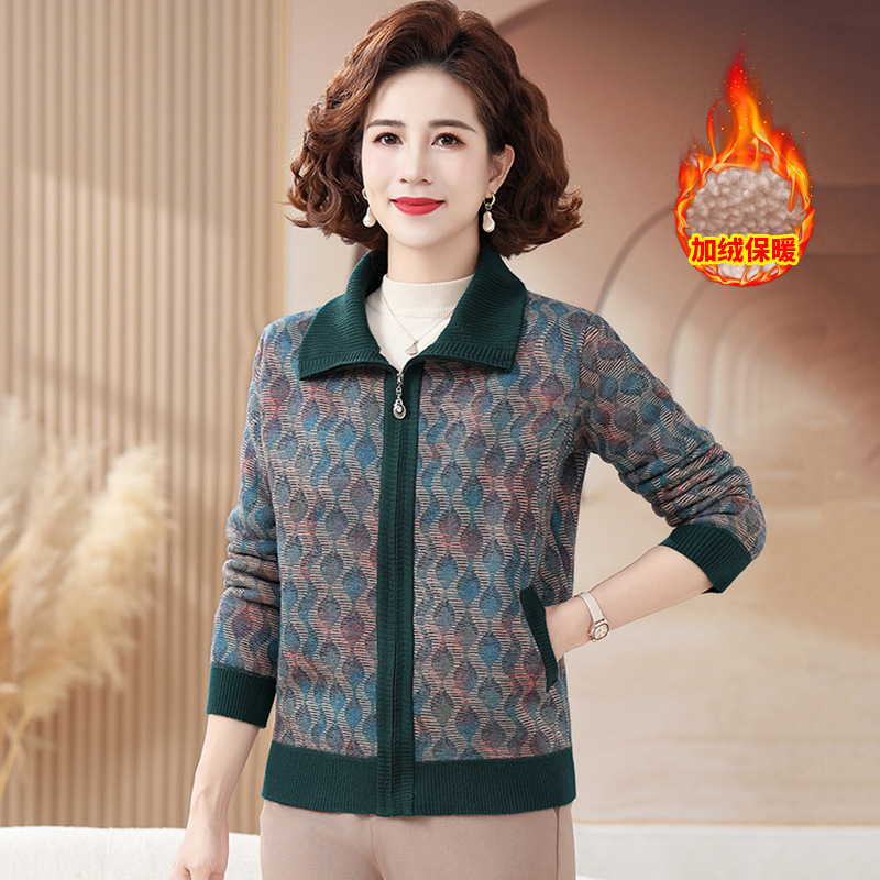 어머니의 겨울 서양식 코트 중년 및 노인 여성 기모 두꺼운 카디건 시어머니의 가을과 겨울 니트 자켓 플라워 탑