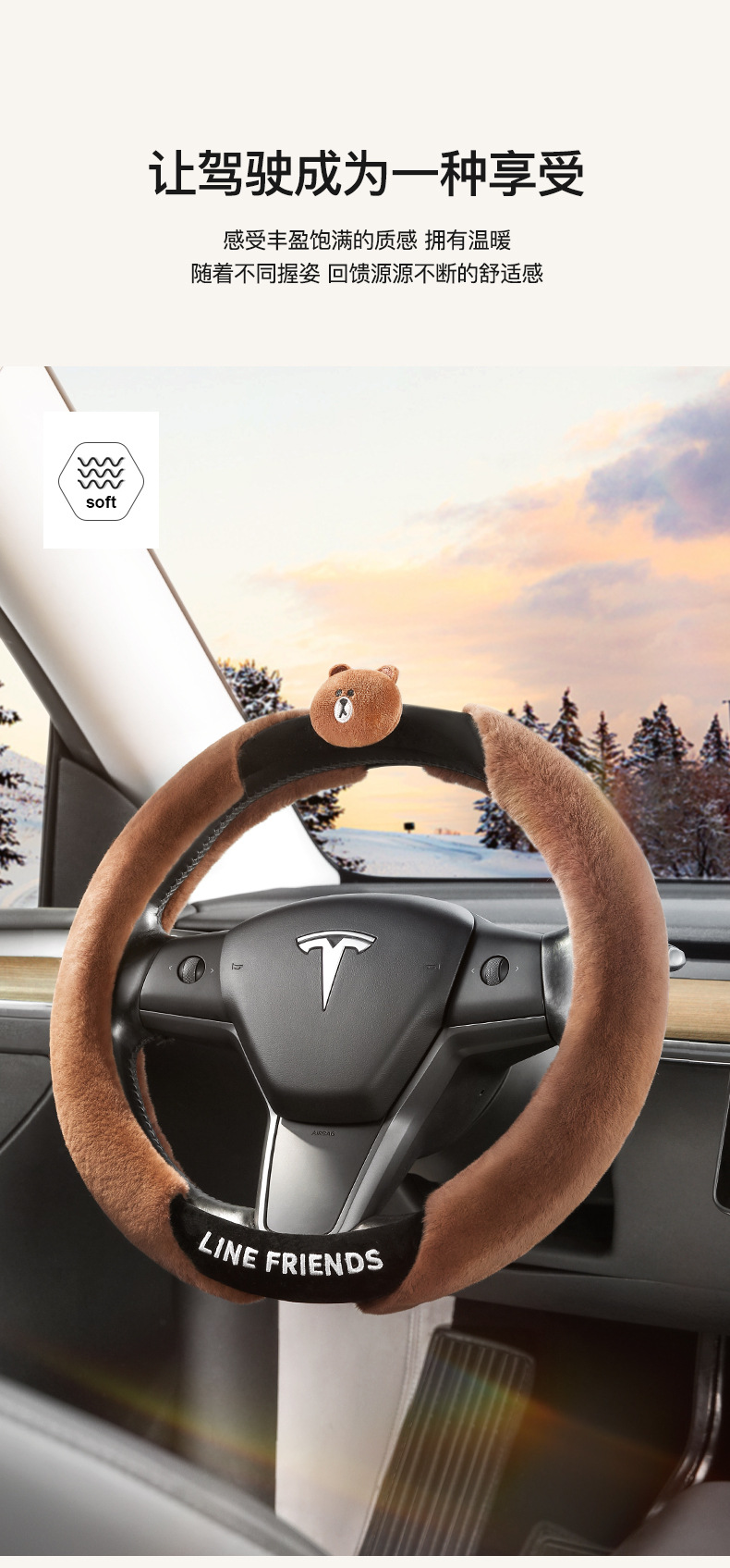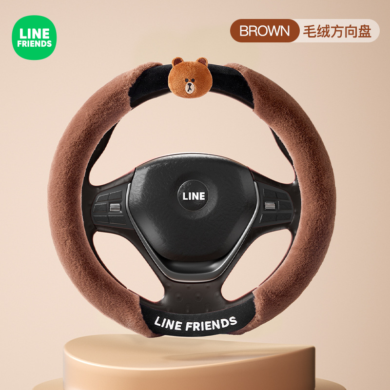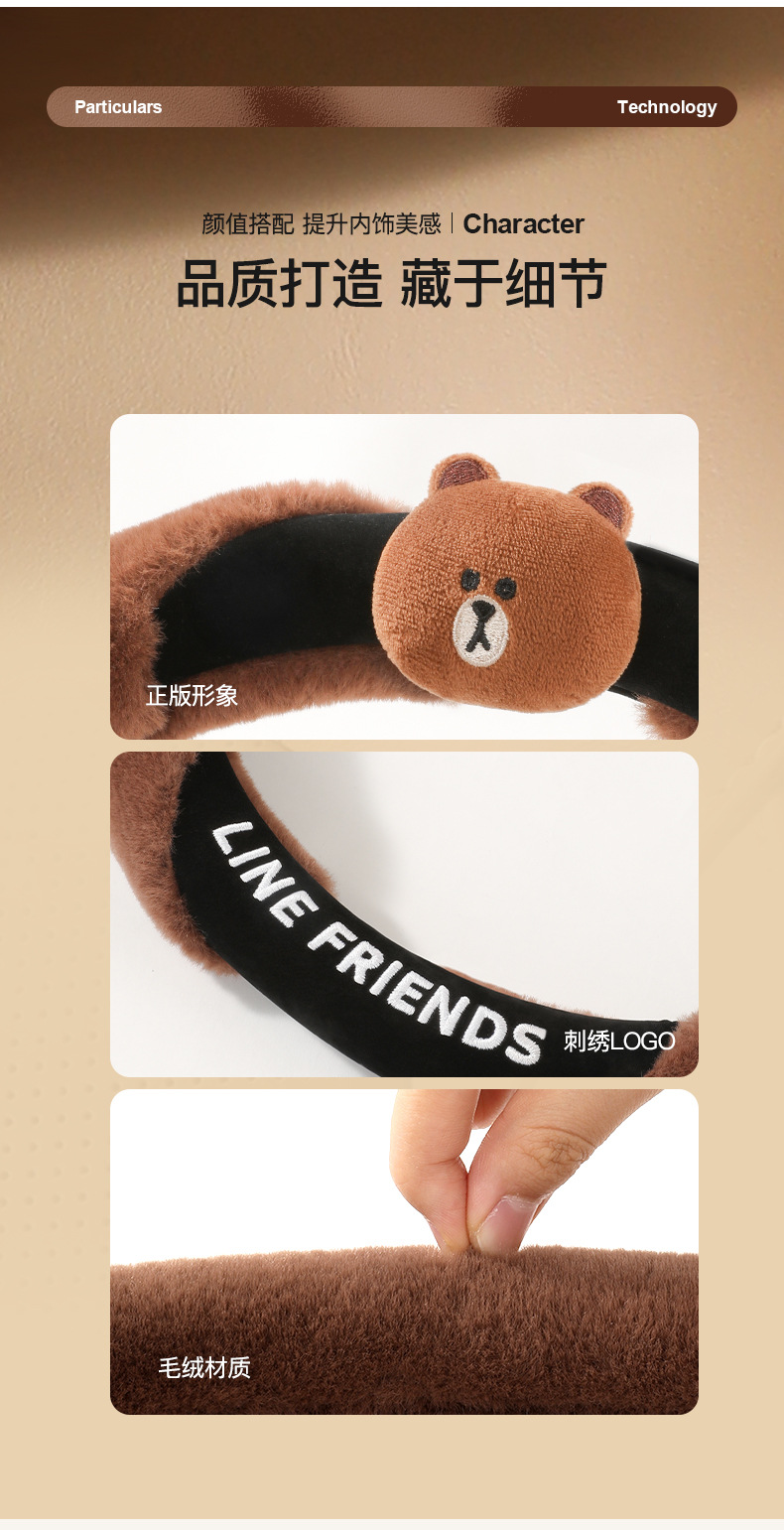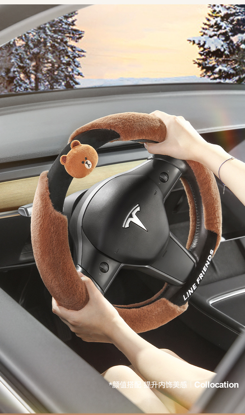 자동차 스티어링 휠 커버 겨울 봉제 다크 브라운 곰 귀여운 만화 겨울 여성 스티어링 휠 유니버설 보호 핸들 커버스토어 가기
