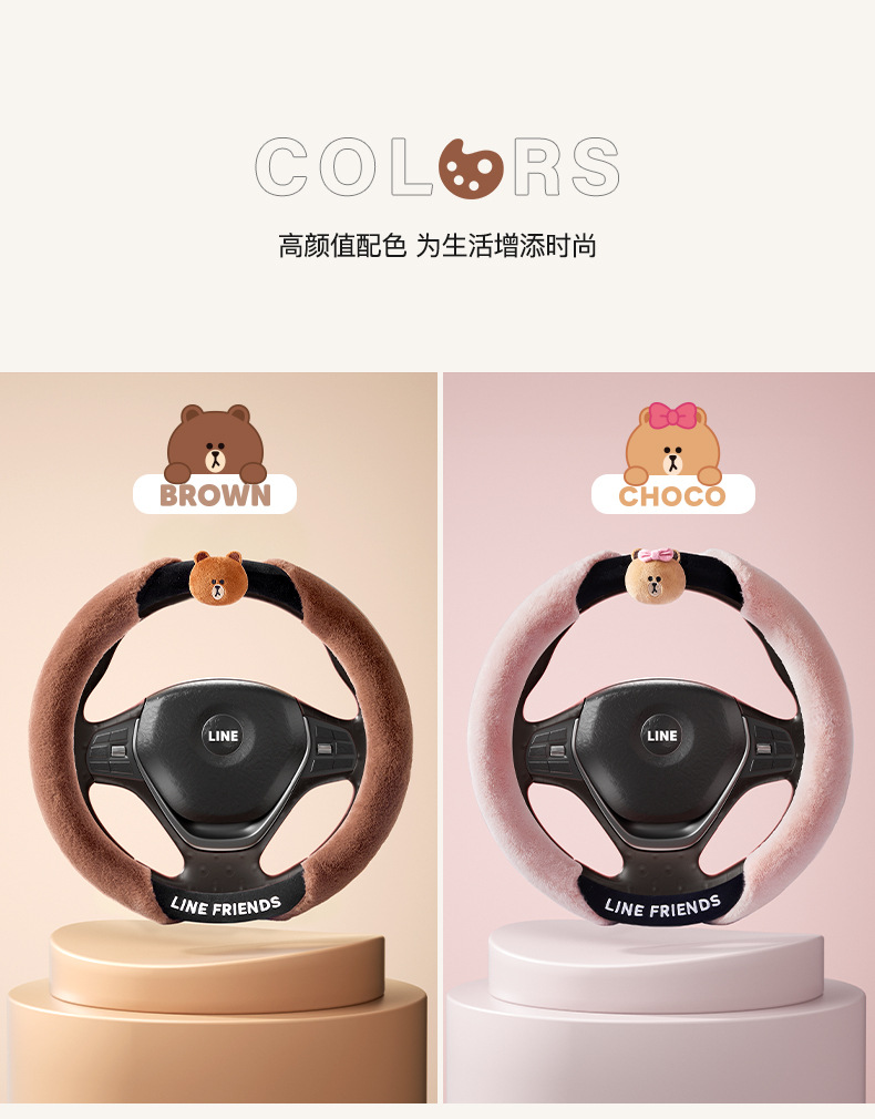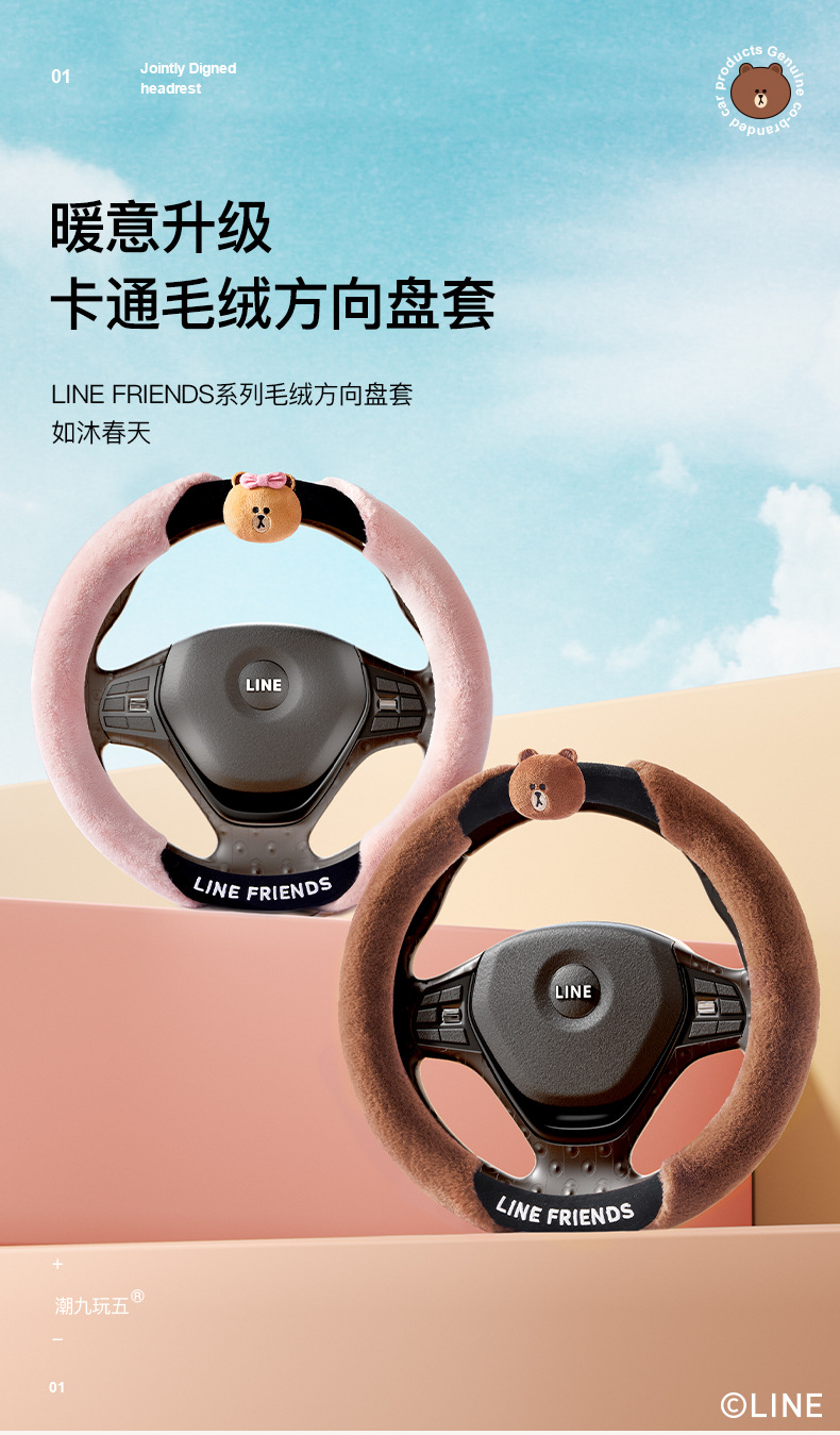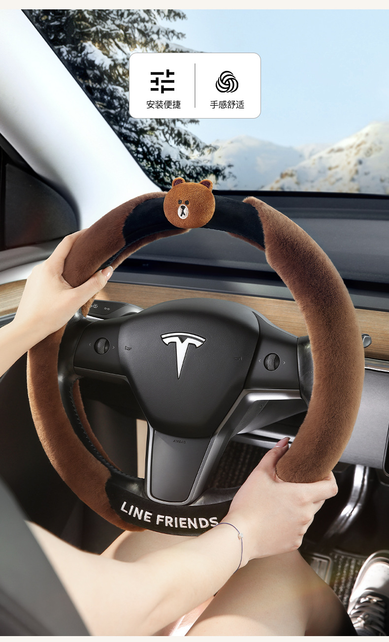 자동차 스티어링 휠 커버 겨울 봉제 다크 브라운 곰 귀여운 만화 겨울 여성 스티어링 휠 유니버설 보호 핸들 커버스토어 가기
