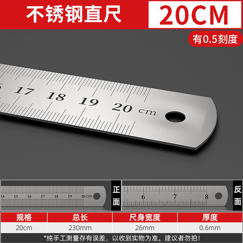• 프리미엄 스테인레스 스틸 두꺼운 자 20cm-한 쌍