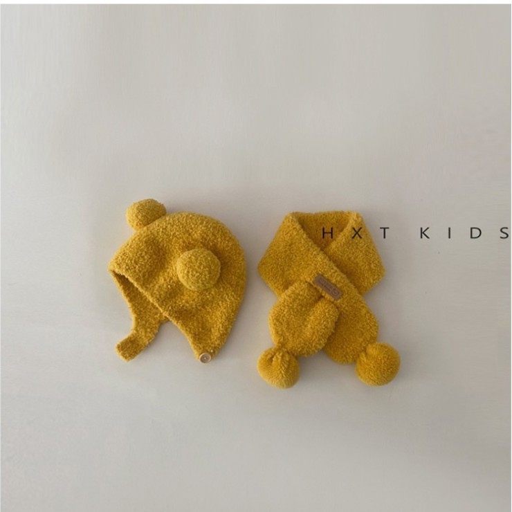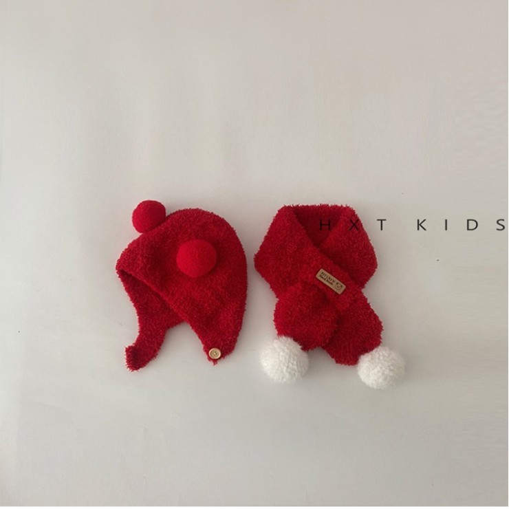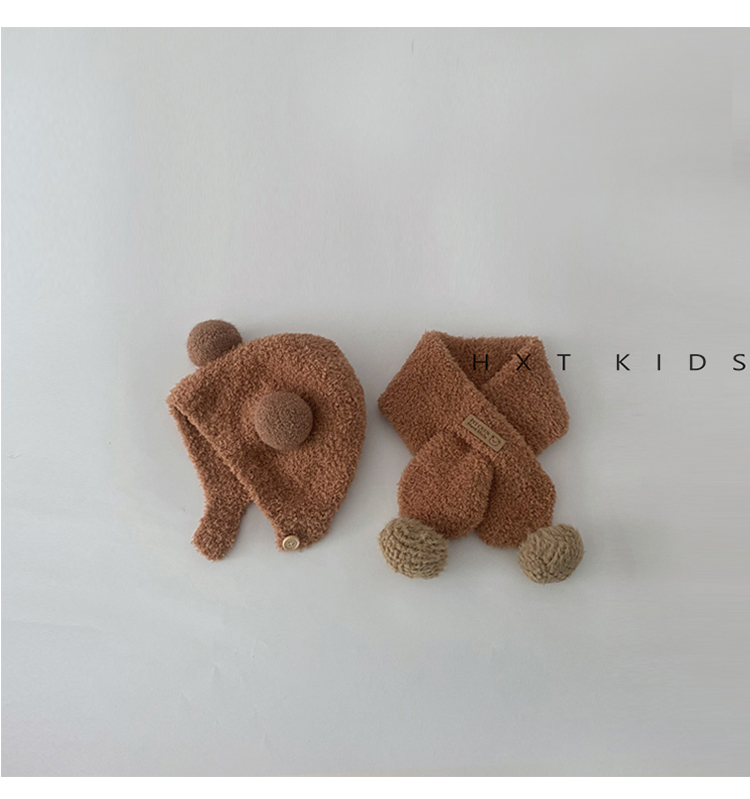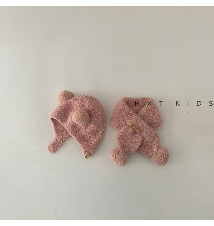 아기 모자 스카프 가을과 겨울 슈퍼 귀여운 플러시 더블 볼 귀 보호 캡 아기 세트 겨울