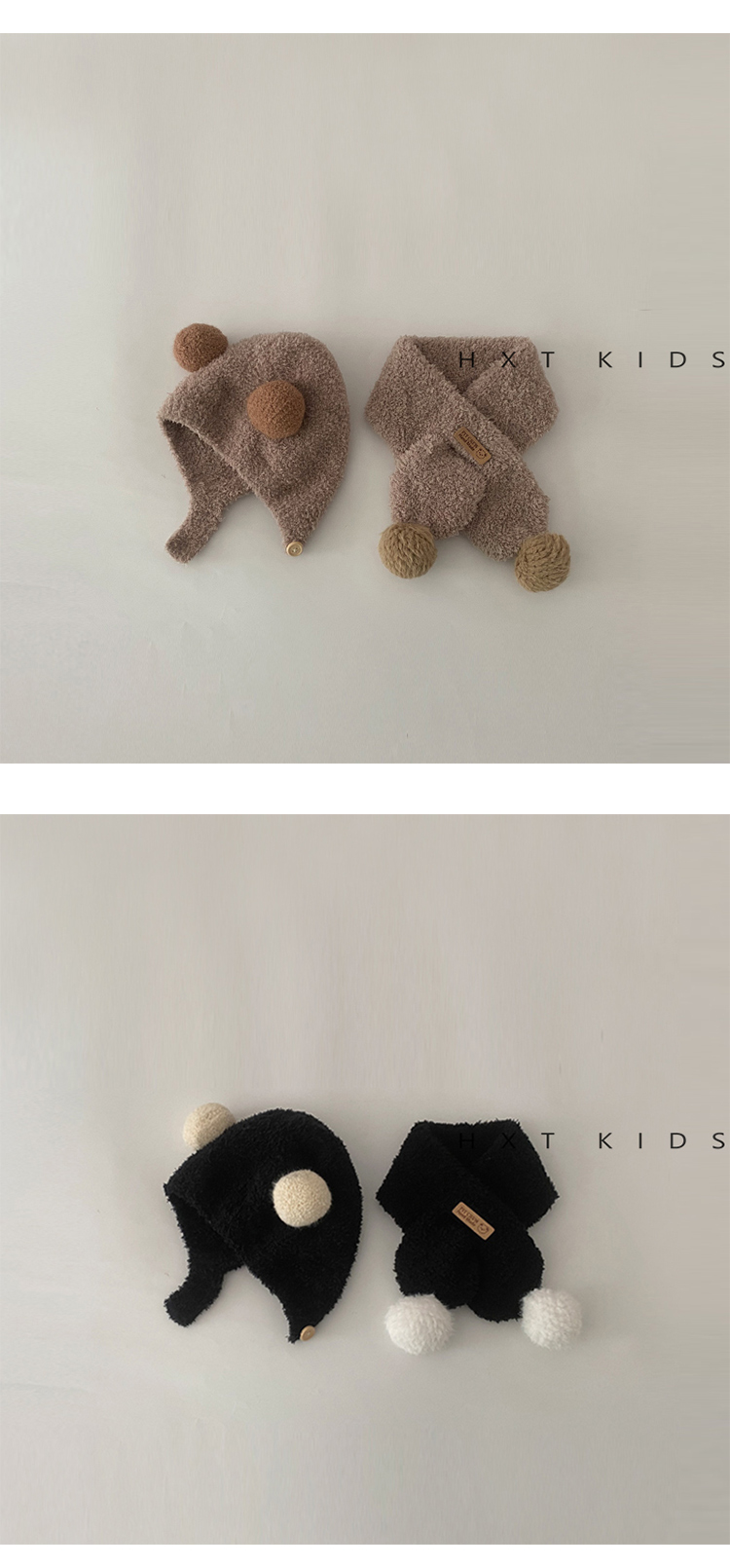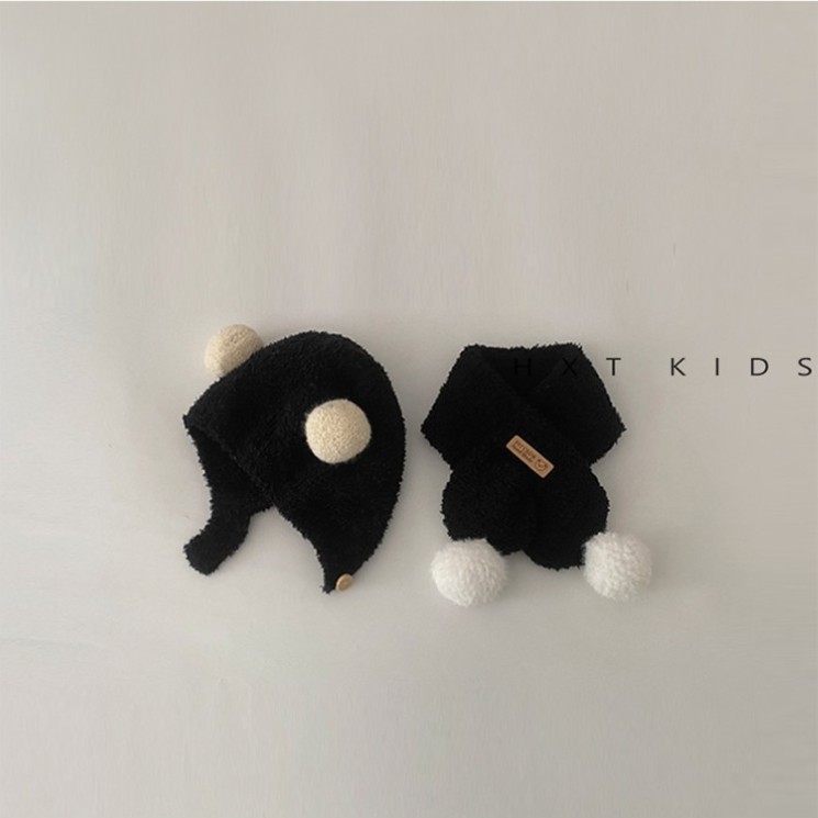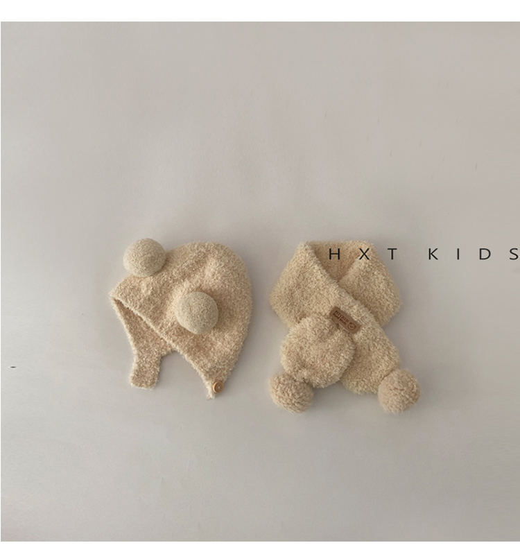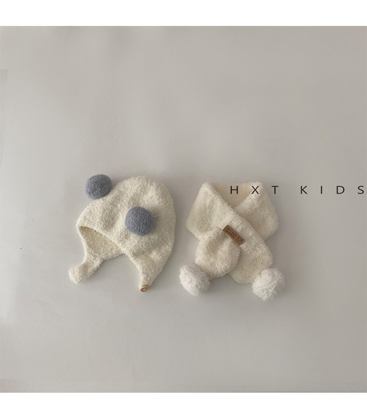 아기 모자 스카프 가을과 겨울 슈퍼 귀여운 플러시 더블 볼 귀 보호 캡 아기 세트 겨울스토어 가기
