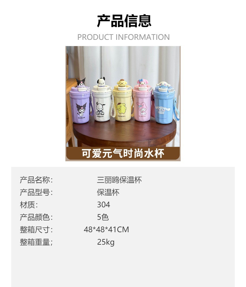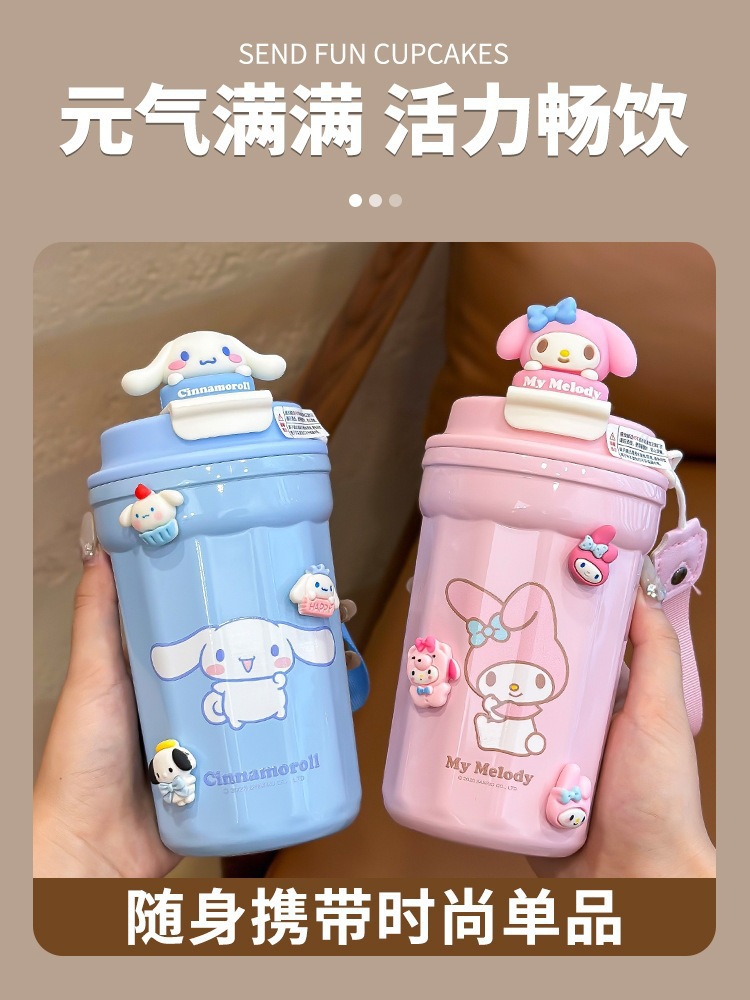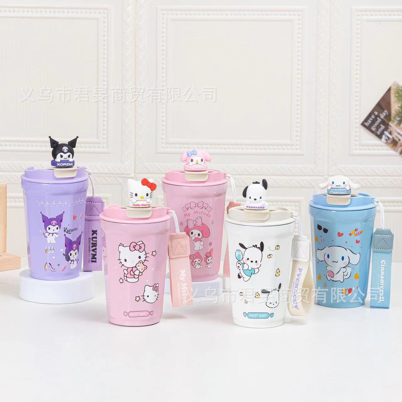 새로운 산리오 보온병 컵 높은 색상 가치 컵 304 스테인레스 스틸 컵 학생 어린이 컵 커피 컵