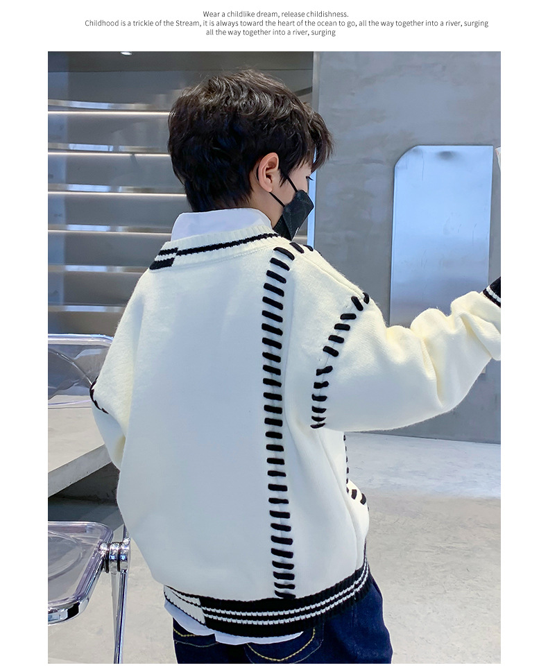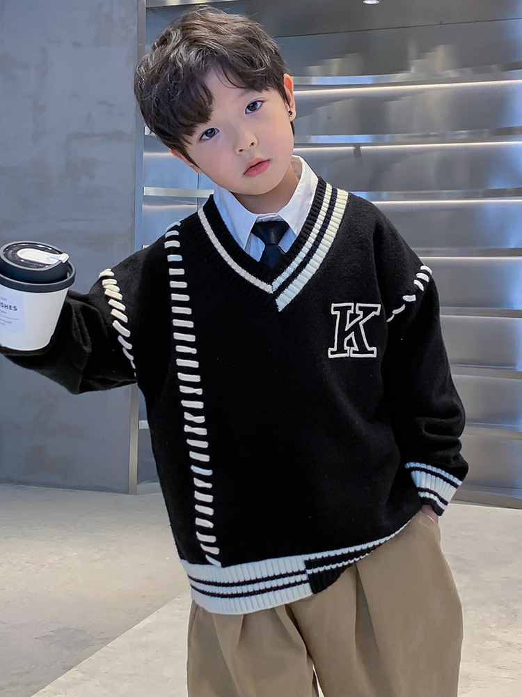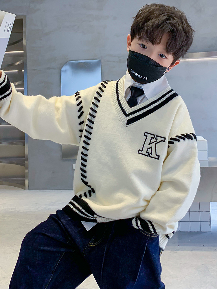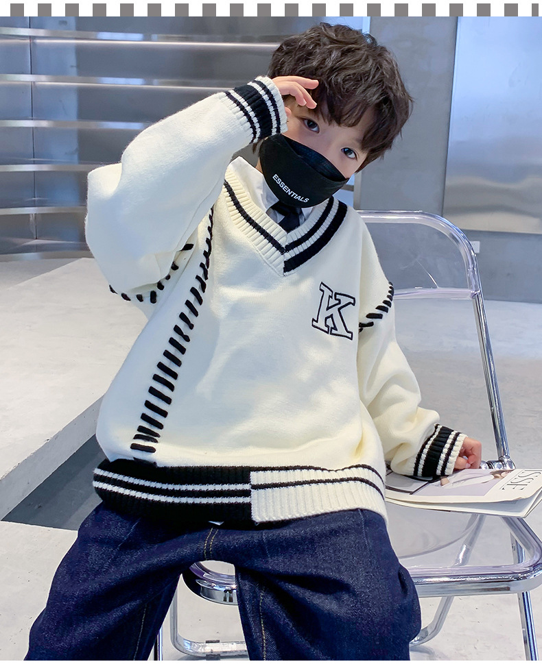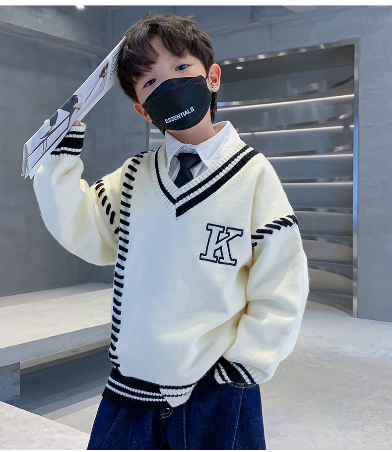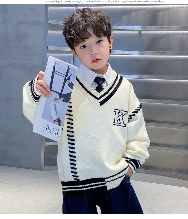 트렌디 한 소년 스웨터 어린이 니트웨어 2024 년 가을 겨울 겨울 화이트 스웨터 영국 스타일스토어 가기