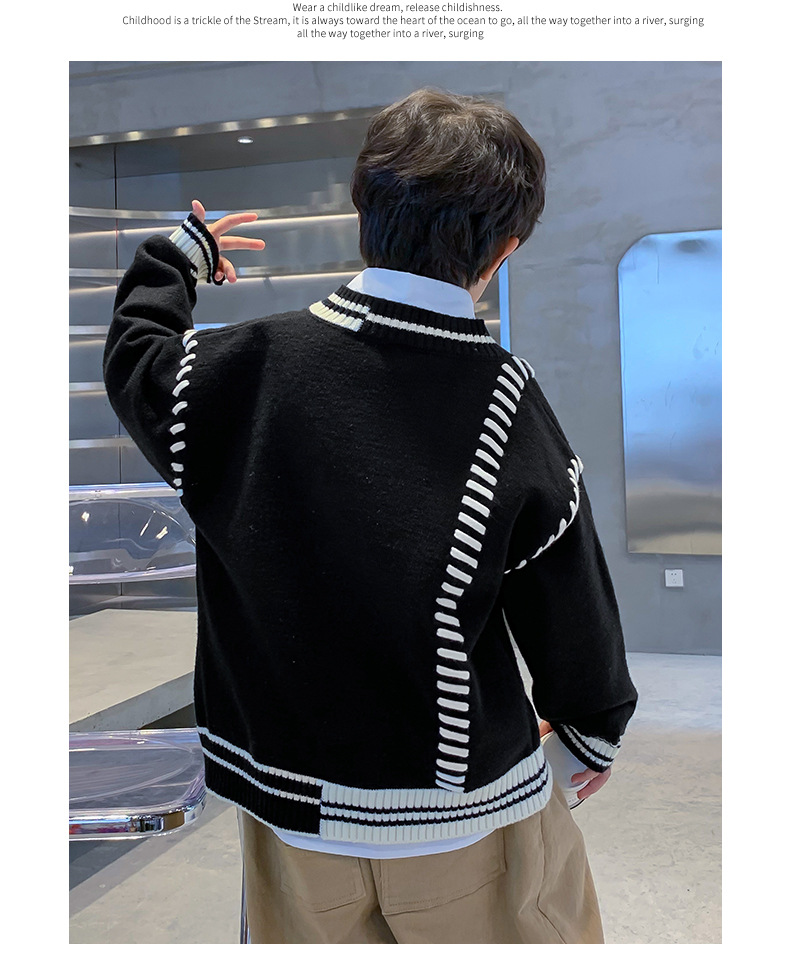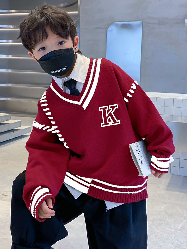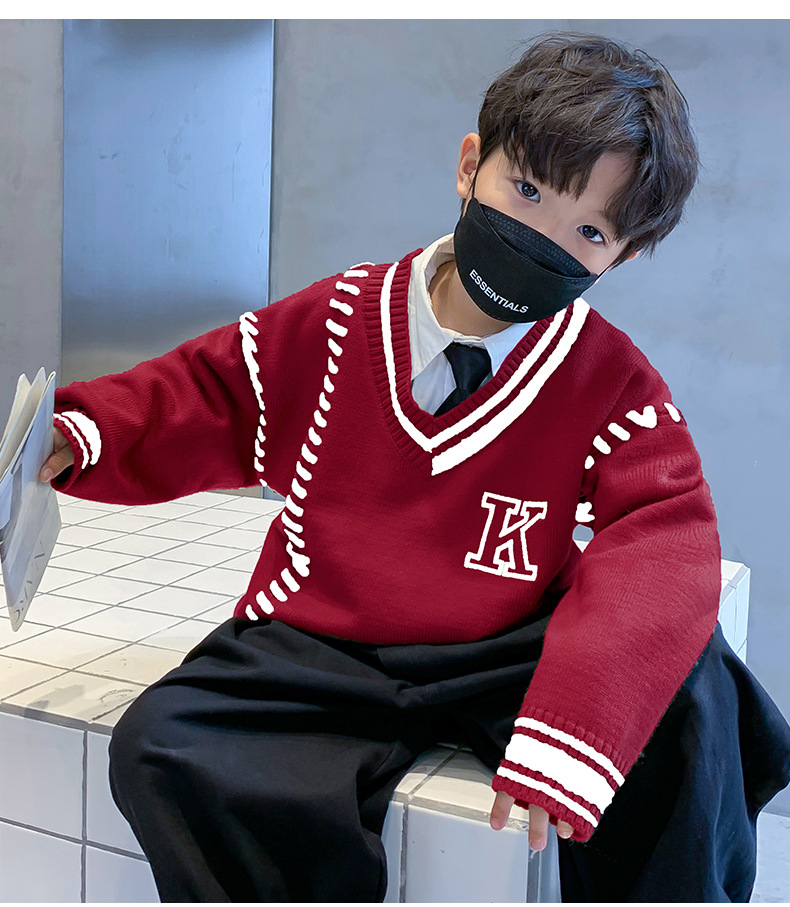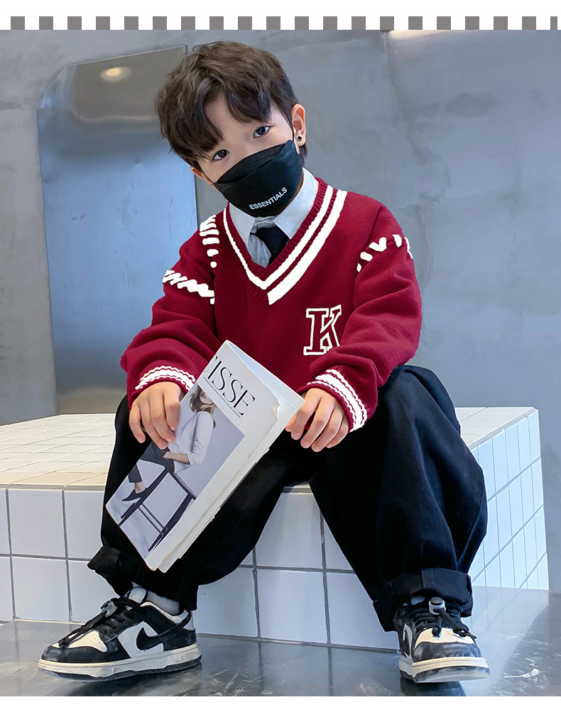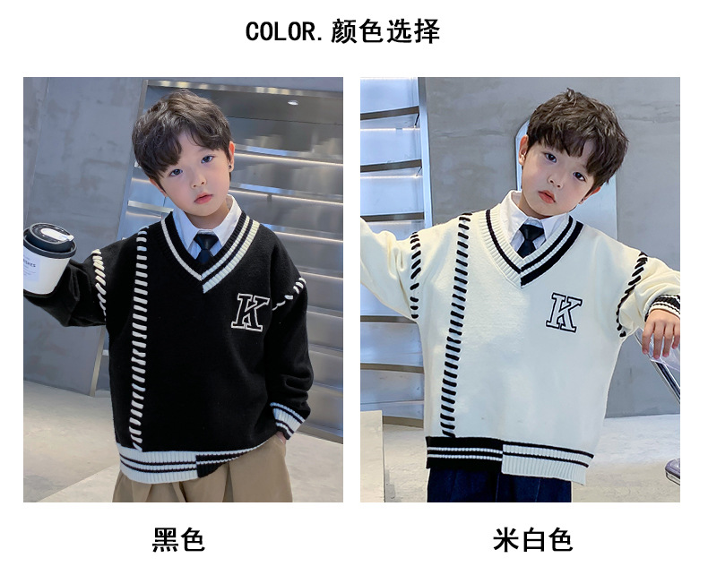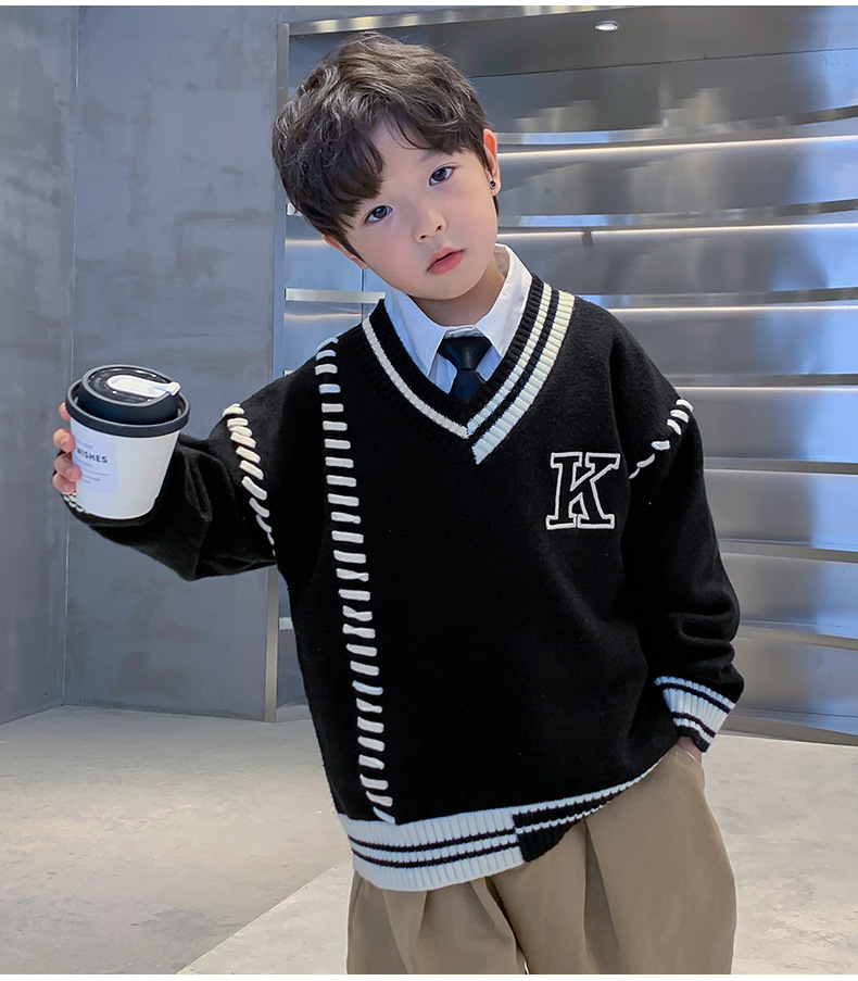 트렌디 한 소년 스웨터 어린이 니트웨어 2024 년 가을 겨울 겨울 화이트 스웨터 영국 스타일스토어 가기