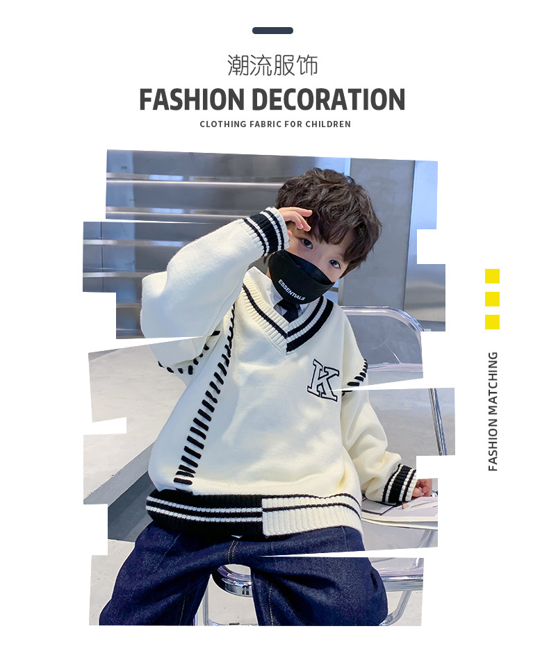 트렌디 한 소년 스웨터 어린이 니트웨어 2024 년 가을 겨울 겨울 화이트 스웨터 영국 스타일