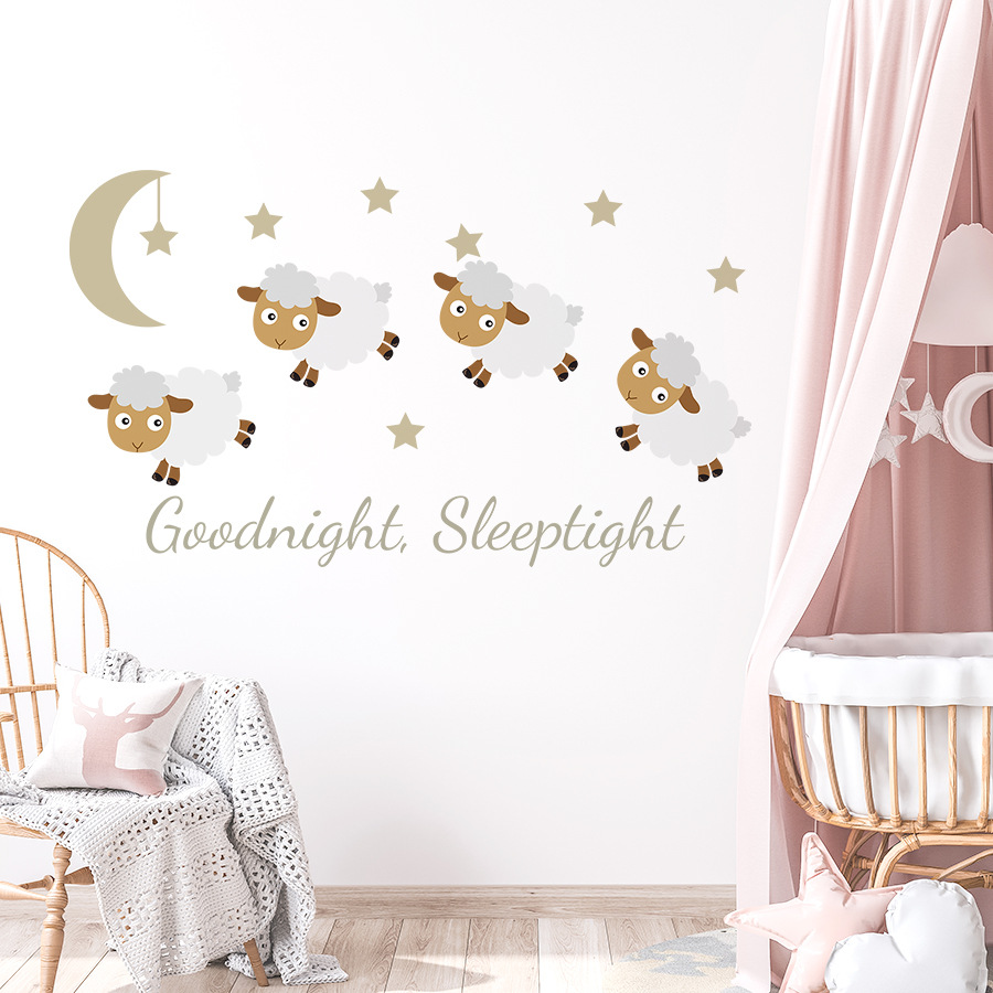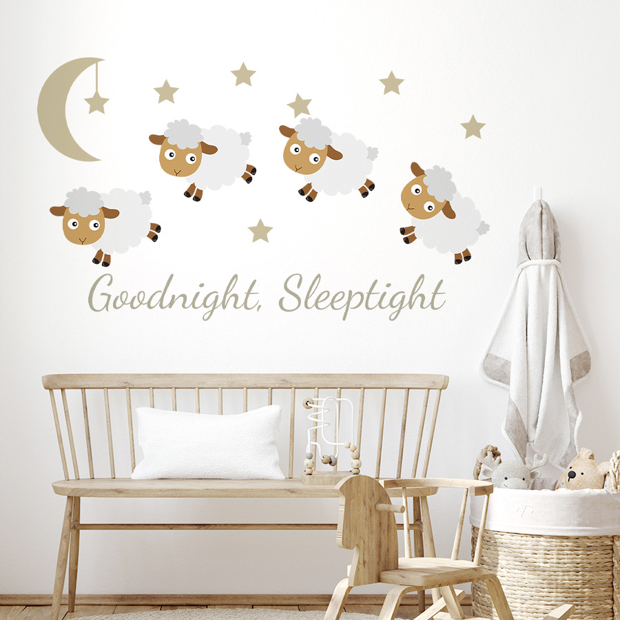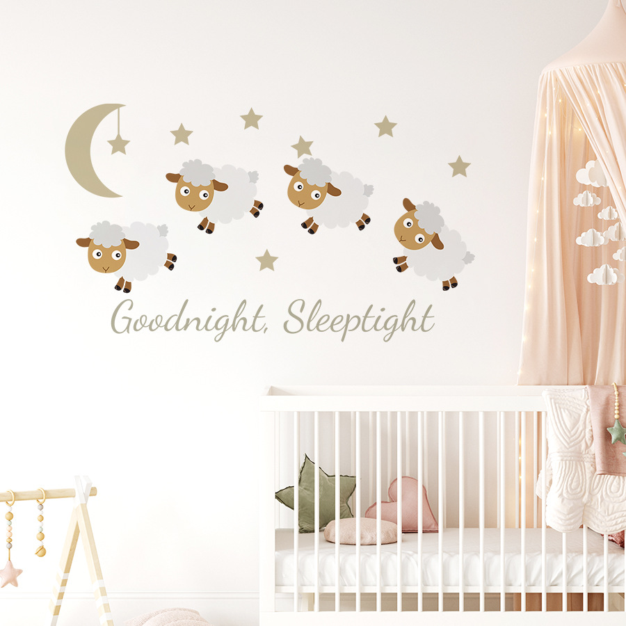 만화 좋은 밤 양고기 영어 문구 자체 접착 벽 스티커 Ins 어린이 방 배경 벽 장식 스티커 ZN3109E