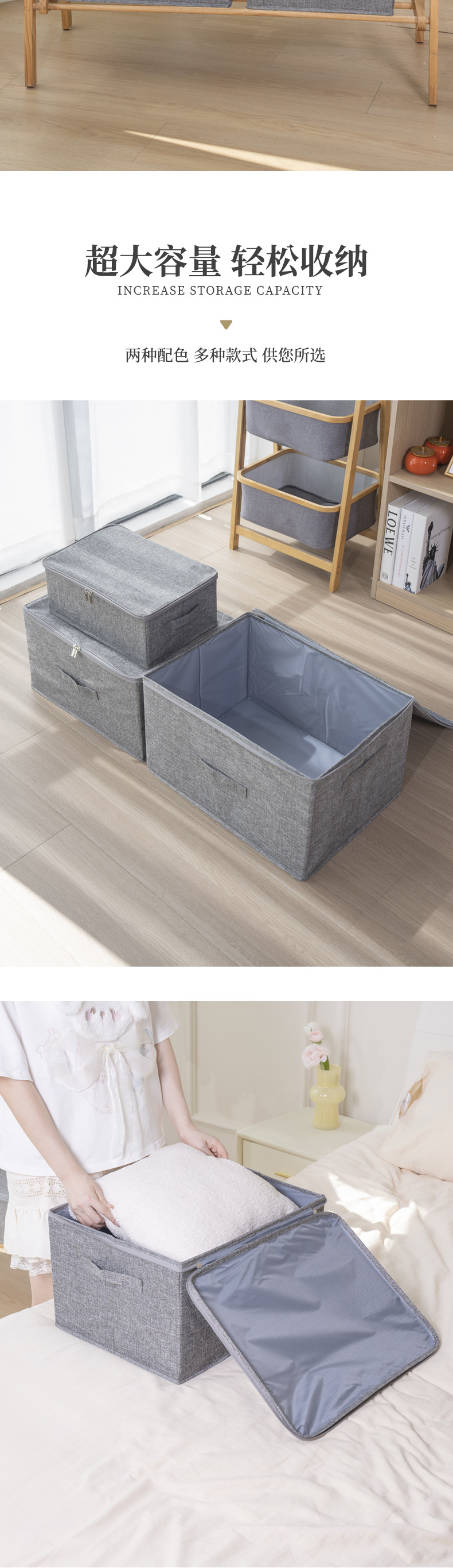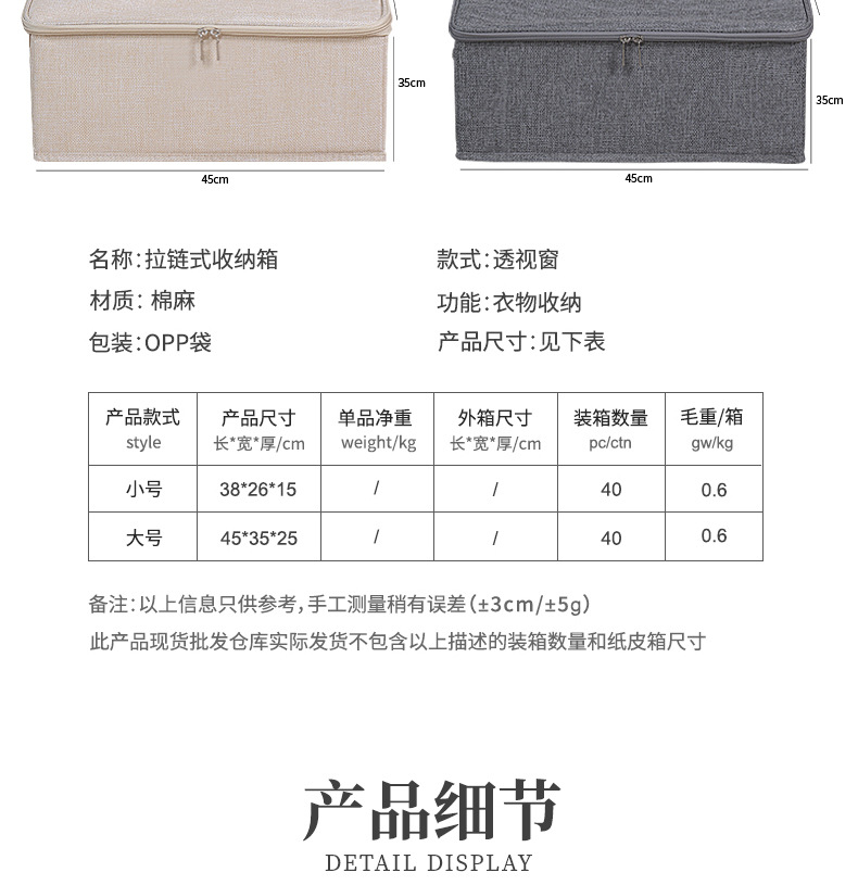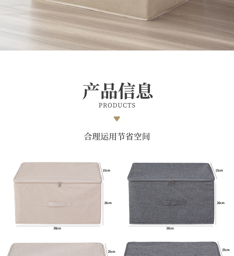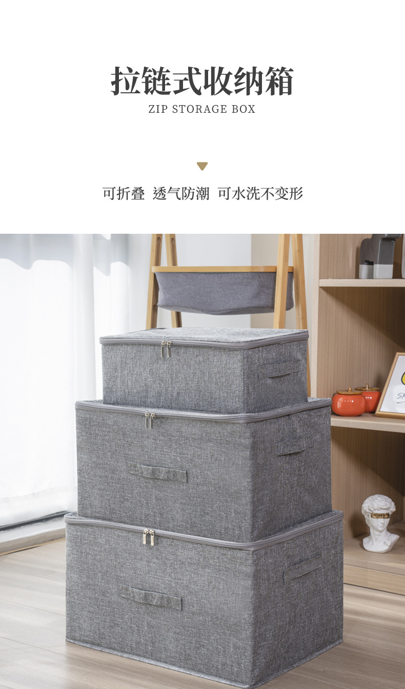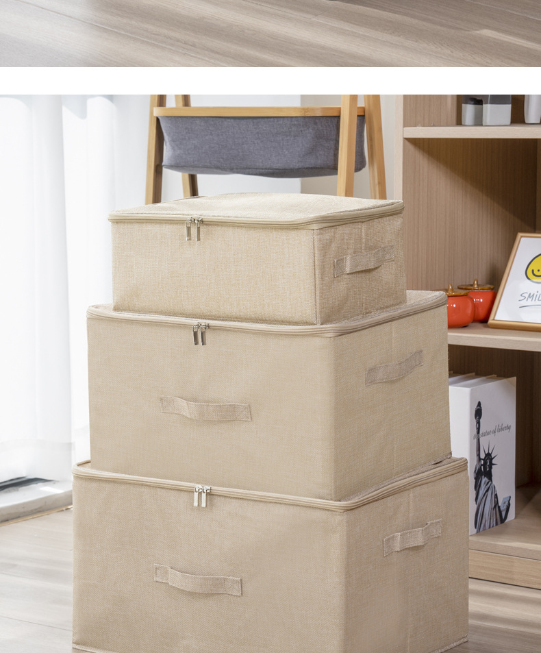 맞춤형 제조업체의 기성품 면 및 린넨 지퍼 수납 상자, 세탁 가능한 접이식 장난감 수납 상자, 이불 수납 상자스토어 가기