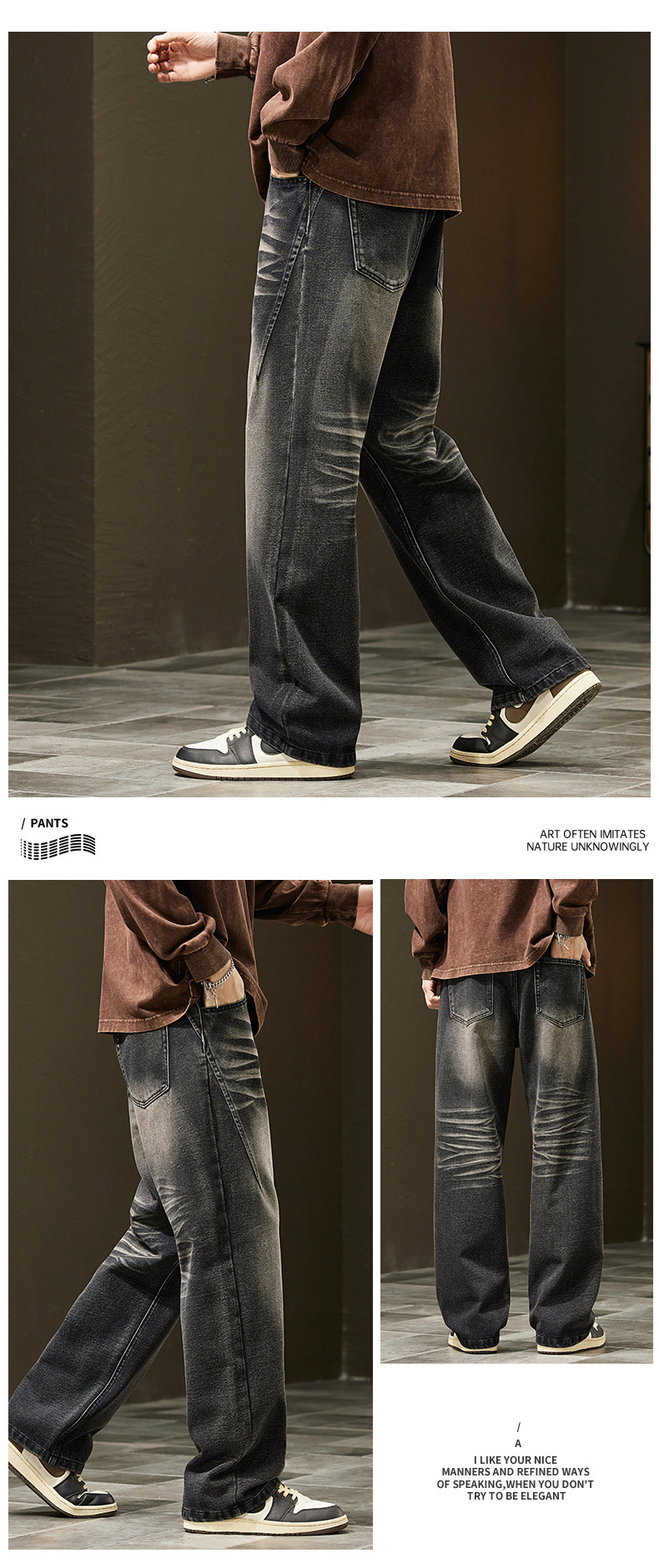 봄과 가을 레트로 트렌디 브랜드 청바지 넓은 다리 바지 남성 하이 엔드 새로운 느슨한 유럽과 미국 스타일 패션 캐주얼 스트레이트 바지스토어 가기