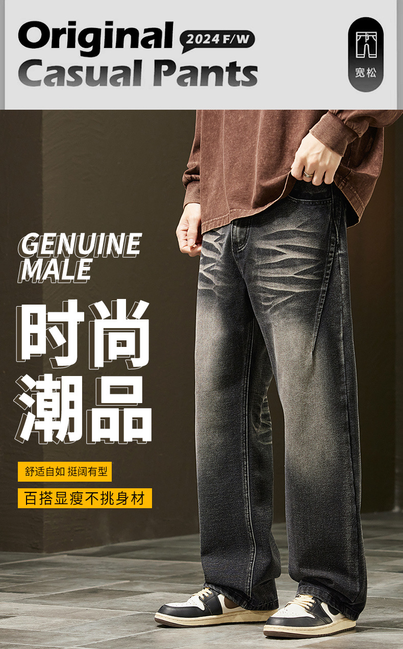 봄과 가을 레트로 트렌디 브랜드 청바지 넓은 다리 바지 남성 하이 엔드 새로운 느슨한 유럽과 미국 스타일 패션 캐주얼 스트레이트 바지