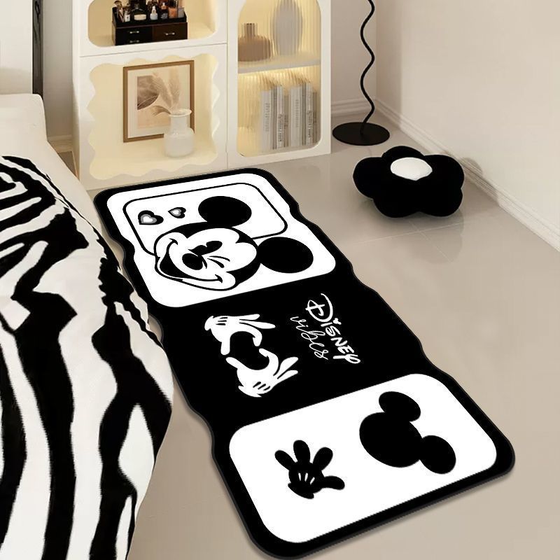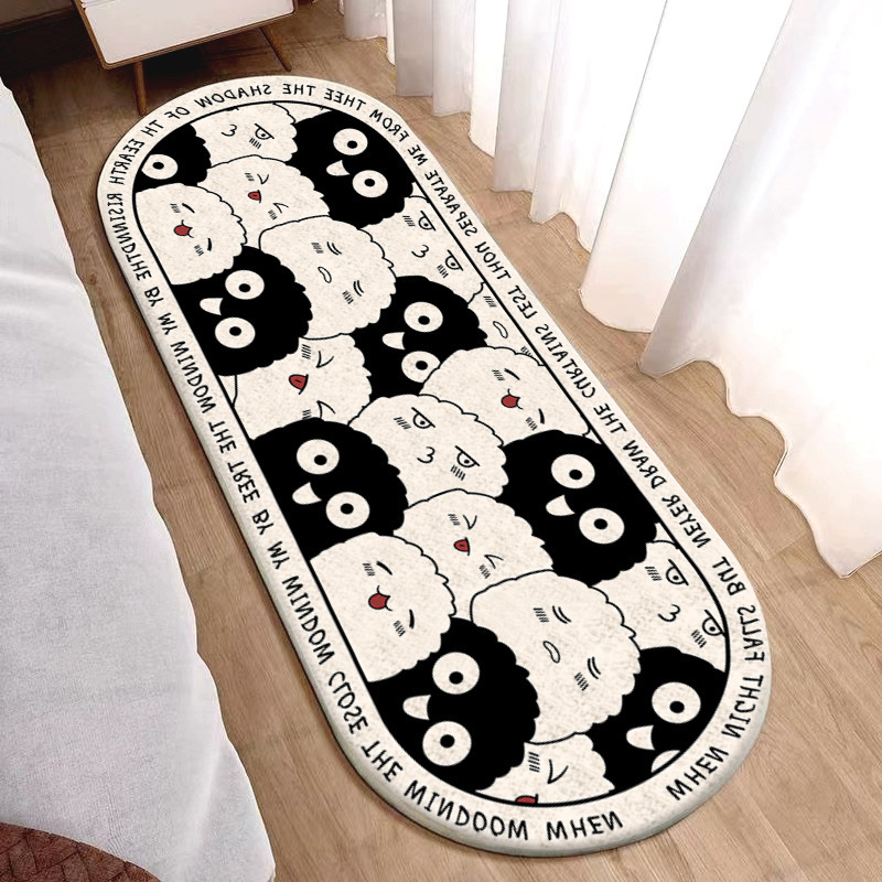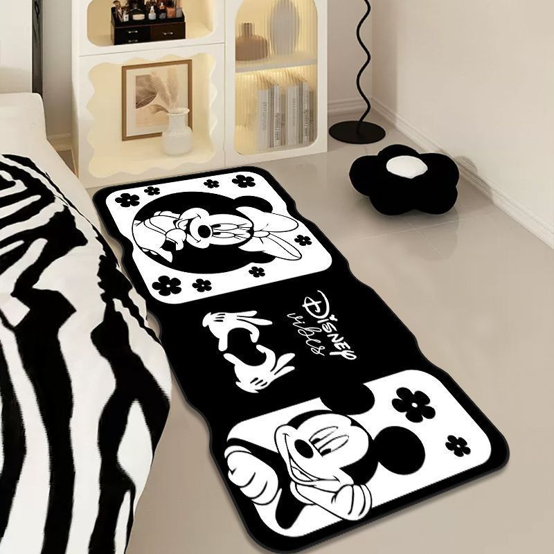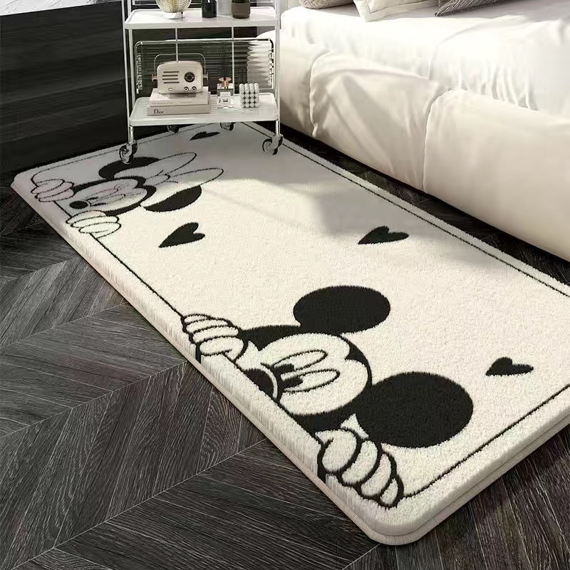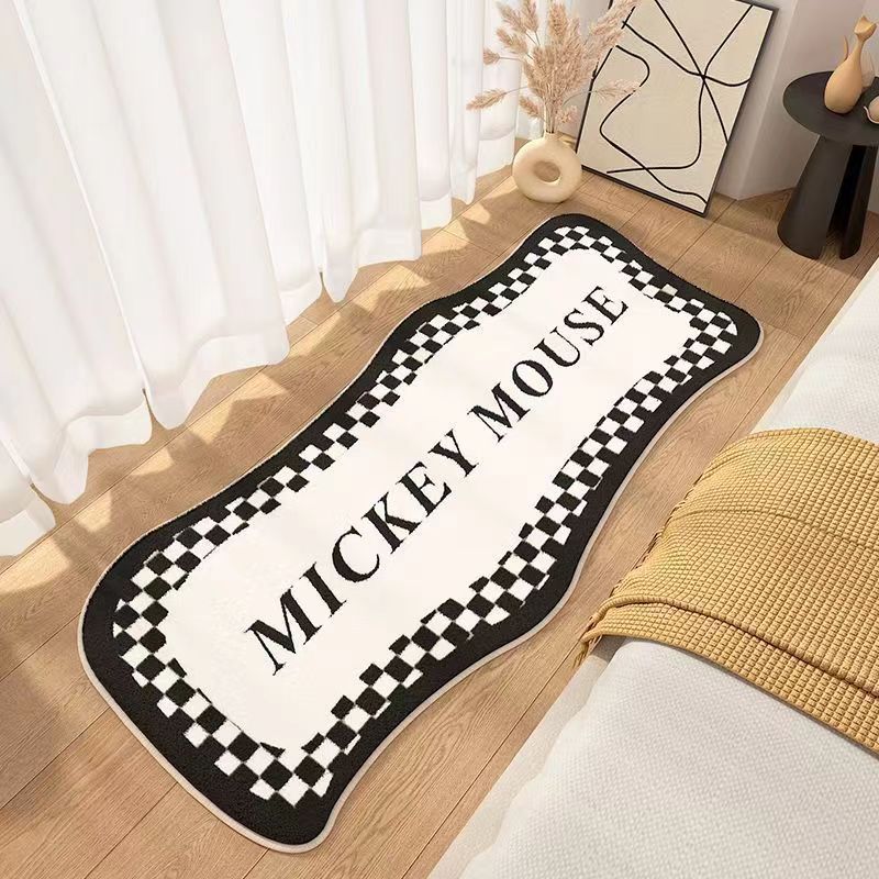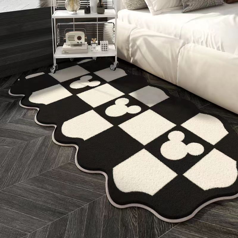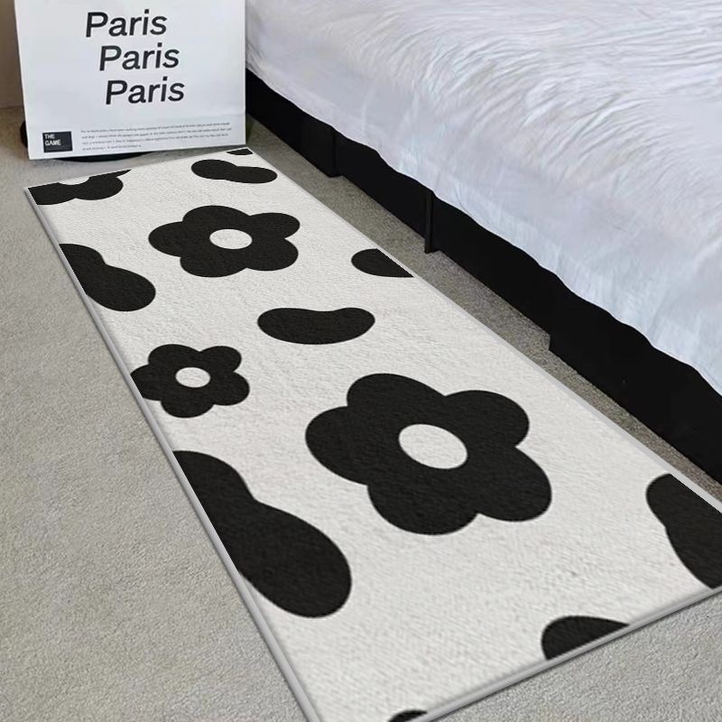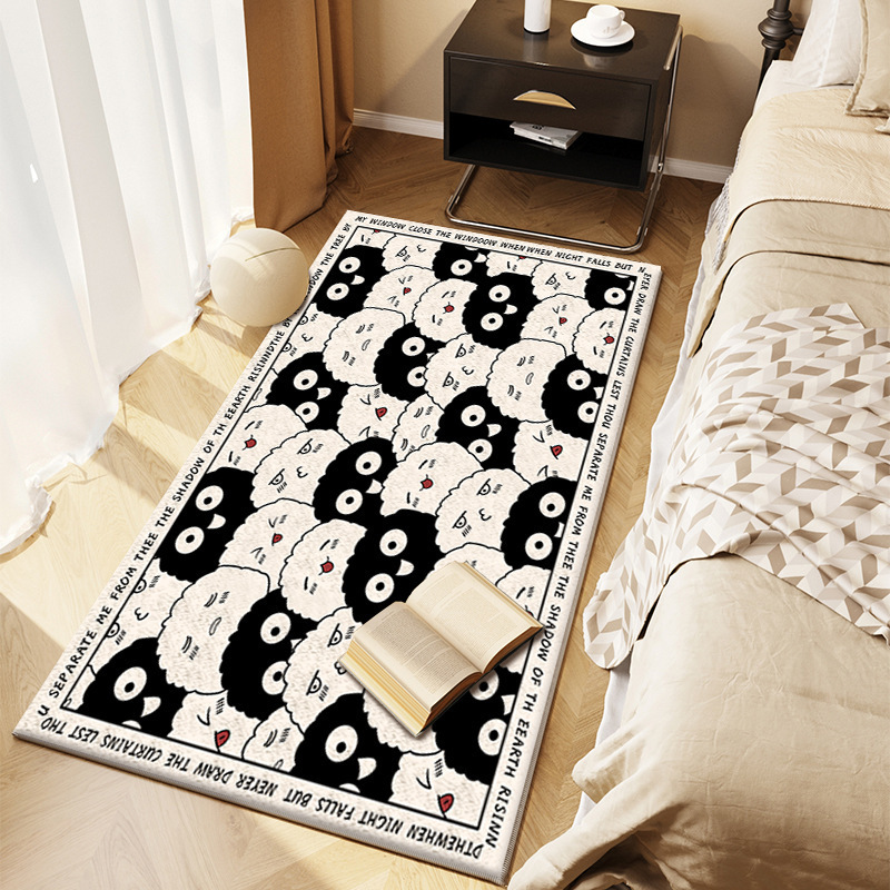 흑백 색상 매칭 캐시미어 카펫 홈 침실 귀여운 만화 침대 옆 카펫 미끄럼 방지 먼지 방지 손쉬운 카펫스토어 가기