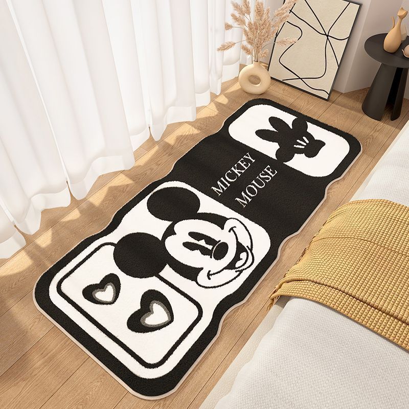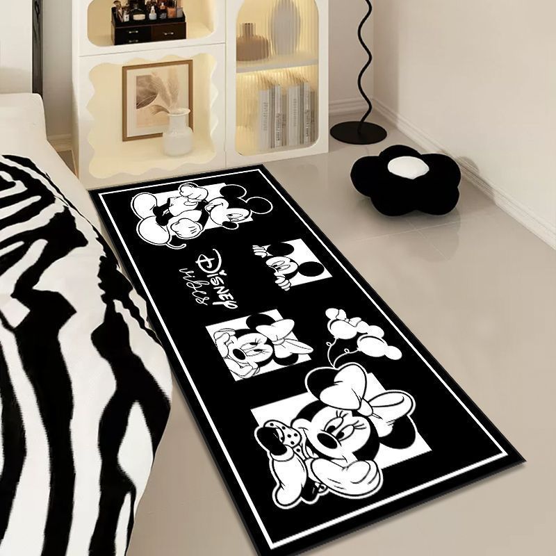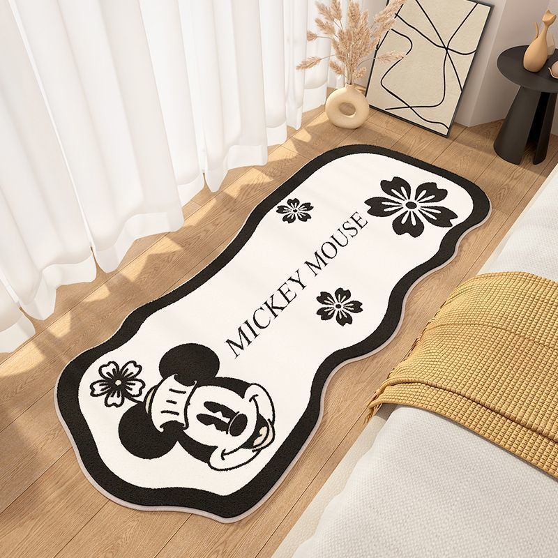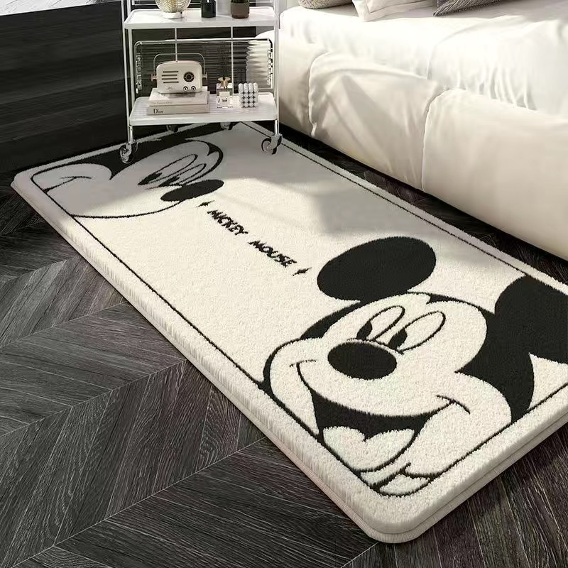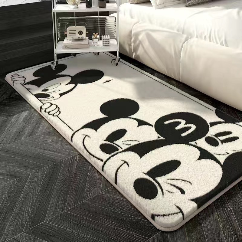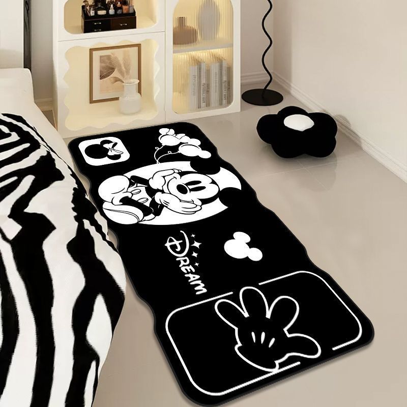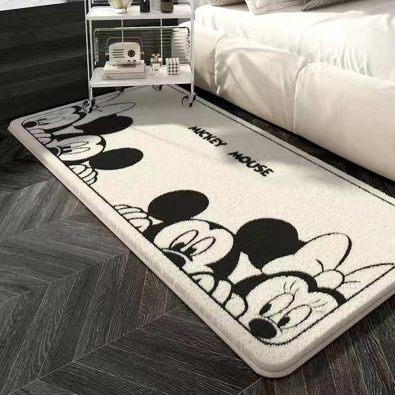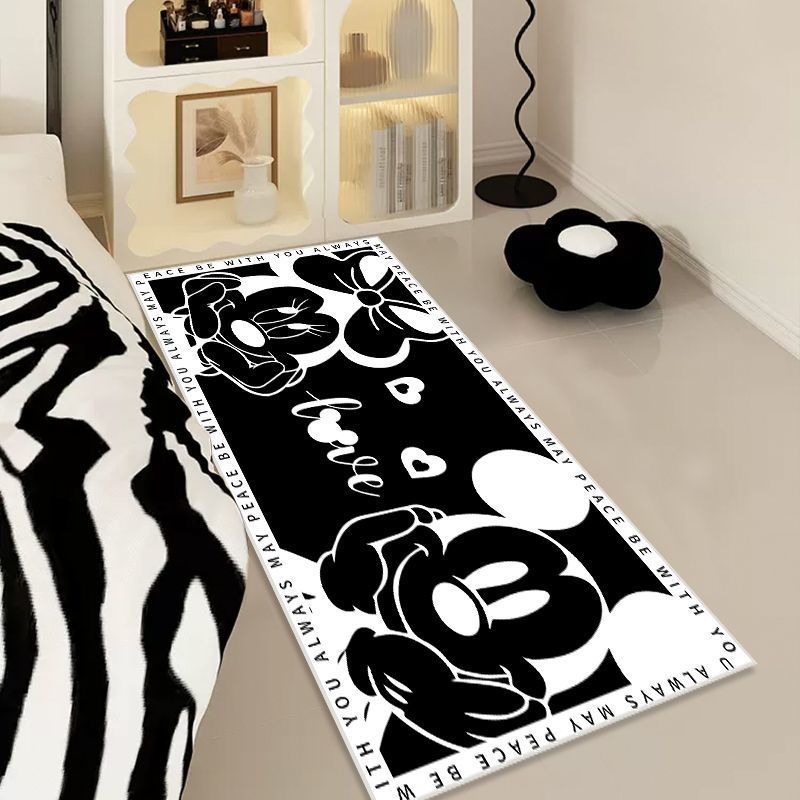 흑백 색상 매칭 캐시미어 카펫 홈 침실 귀여운 만화 침대 옆 카펫 미끄럼 방지 먼지 방지 손쉬운 카펫스토어 가기
