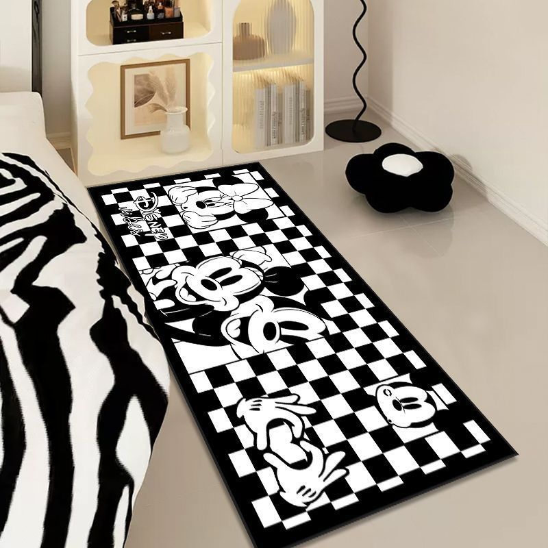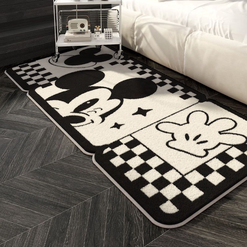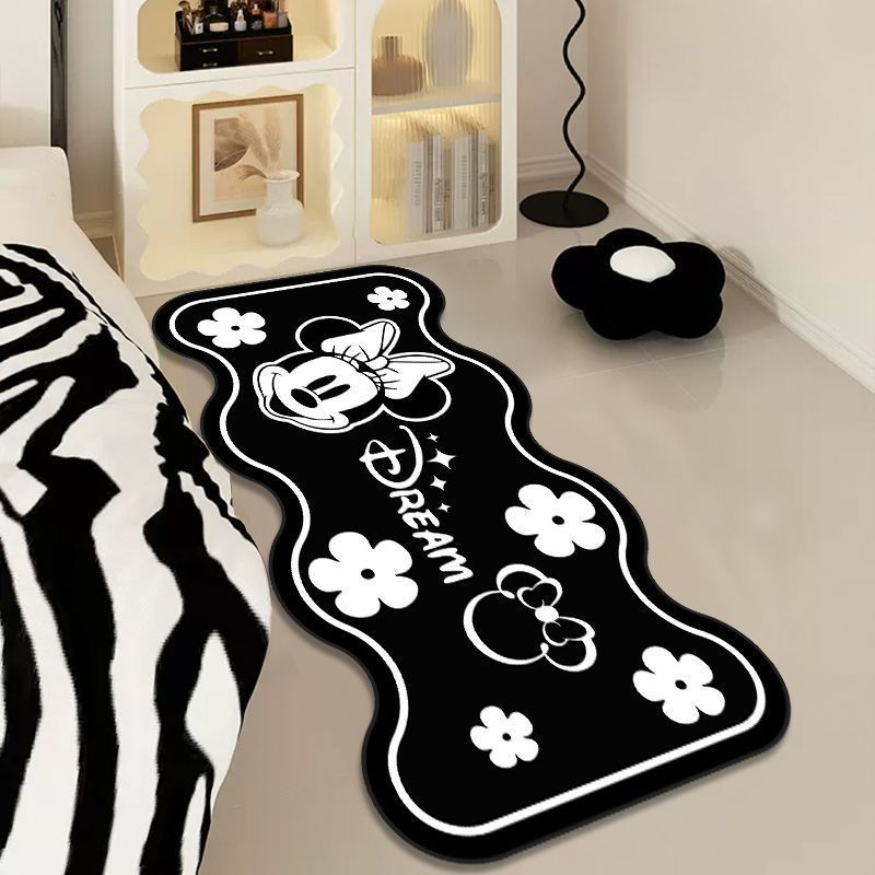 흑백 색상 매칭 캐시미어 카펫 홈 침실 귀여운 만화 침대 옆 카펫 미끄럼 방지 먼지 방지 손쉬운 카펫