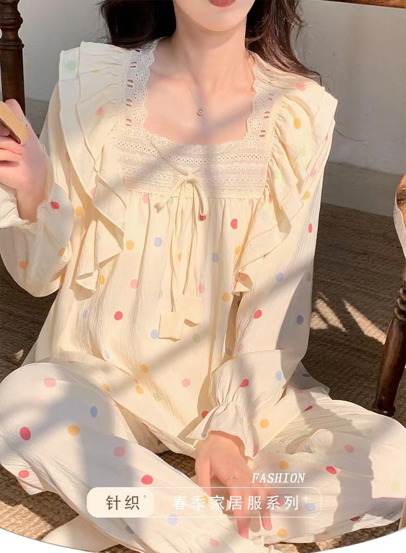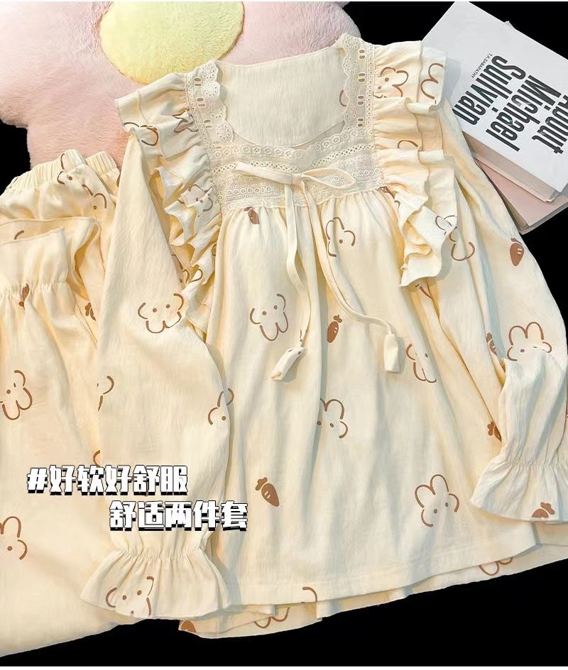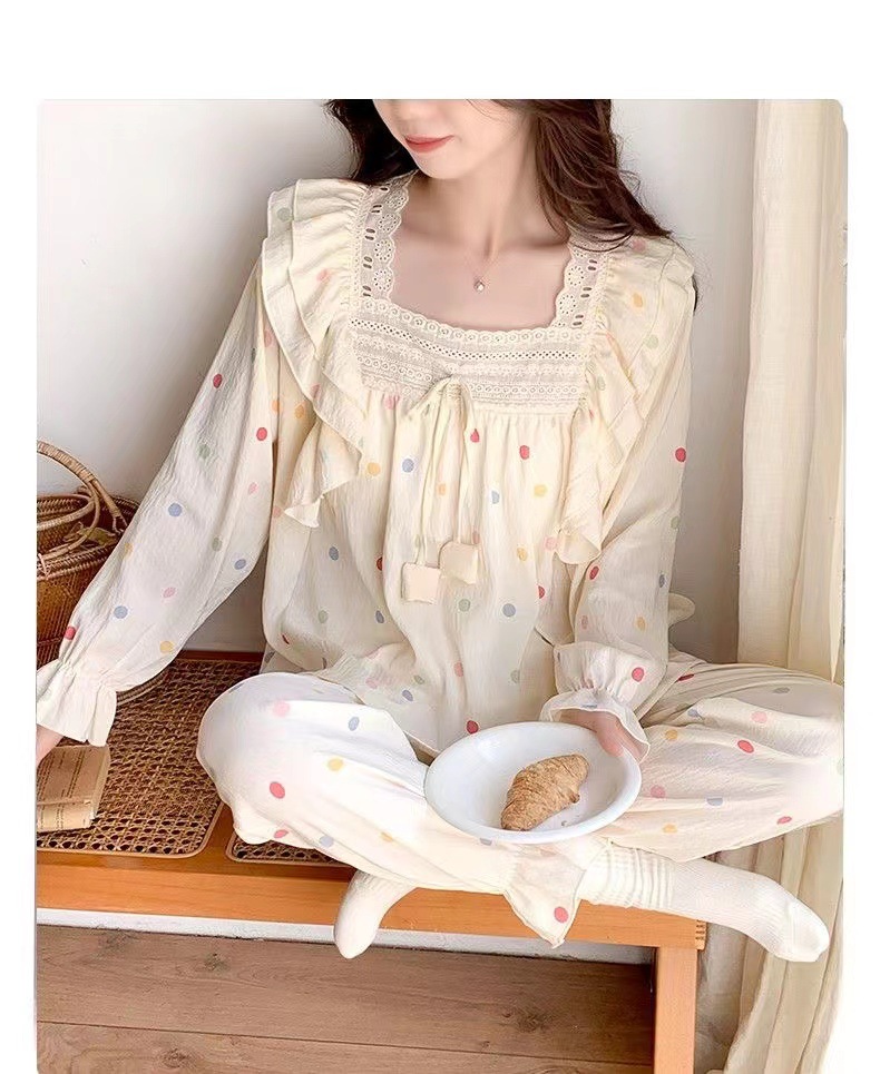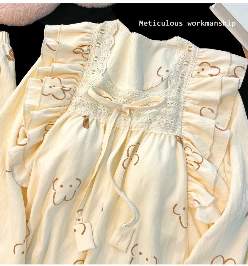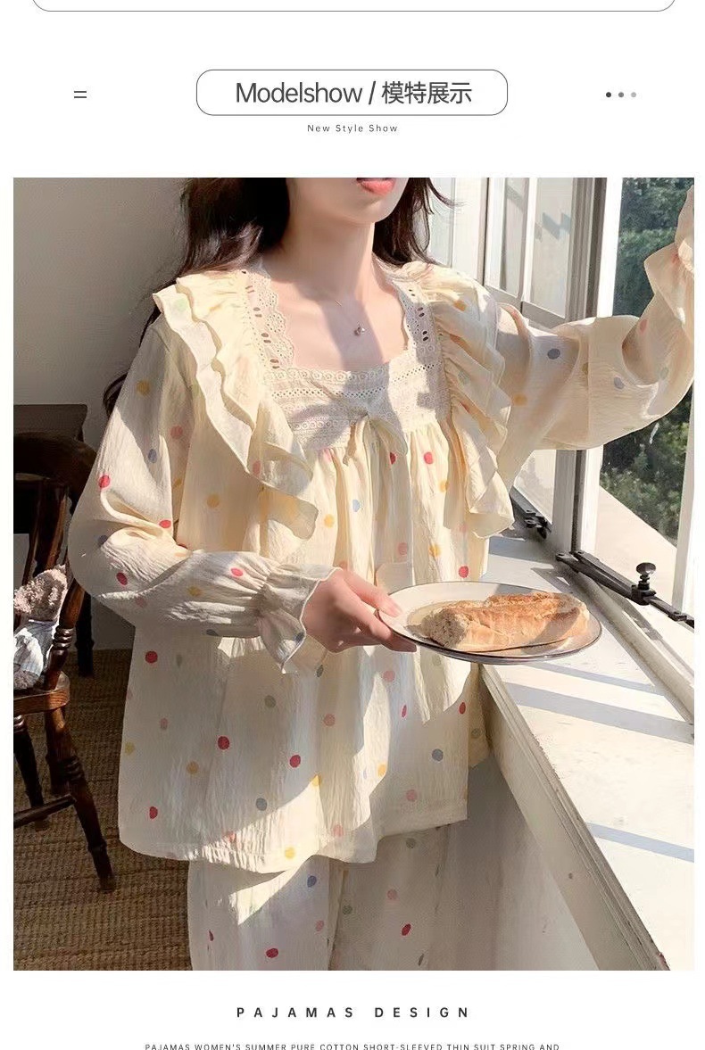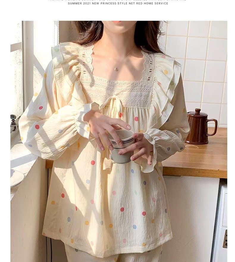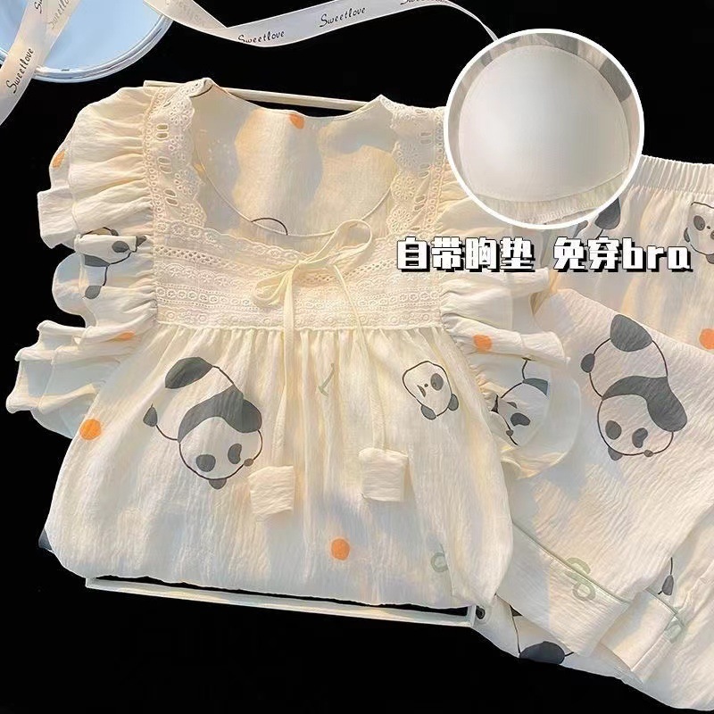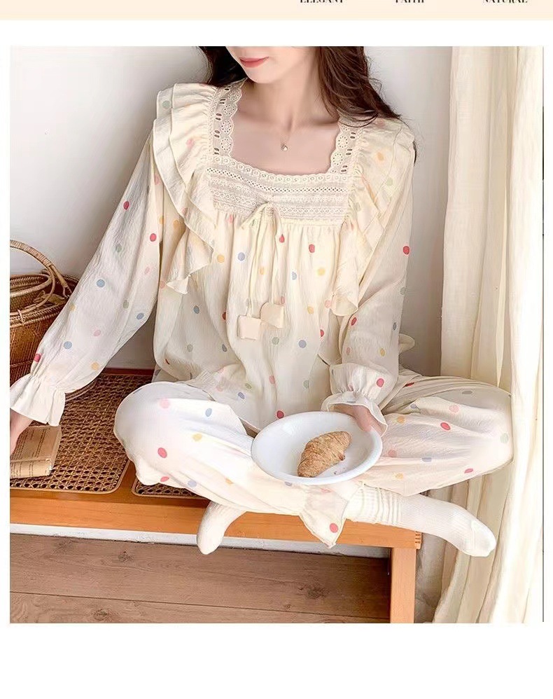잠옷 여성용 가슴 패드 봄과 가을 달콤한 귀여운 구름 코튼 세트 캐주얼 느슨한 외부 긴 소매 홈 옷을 입고