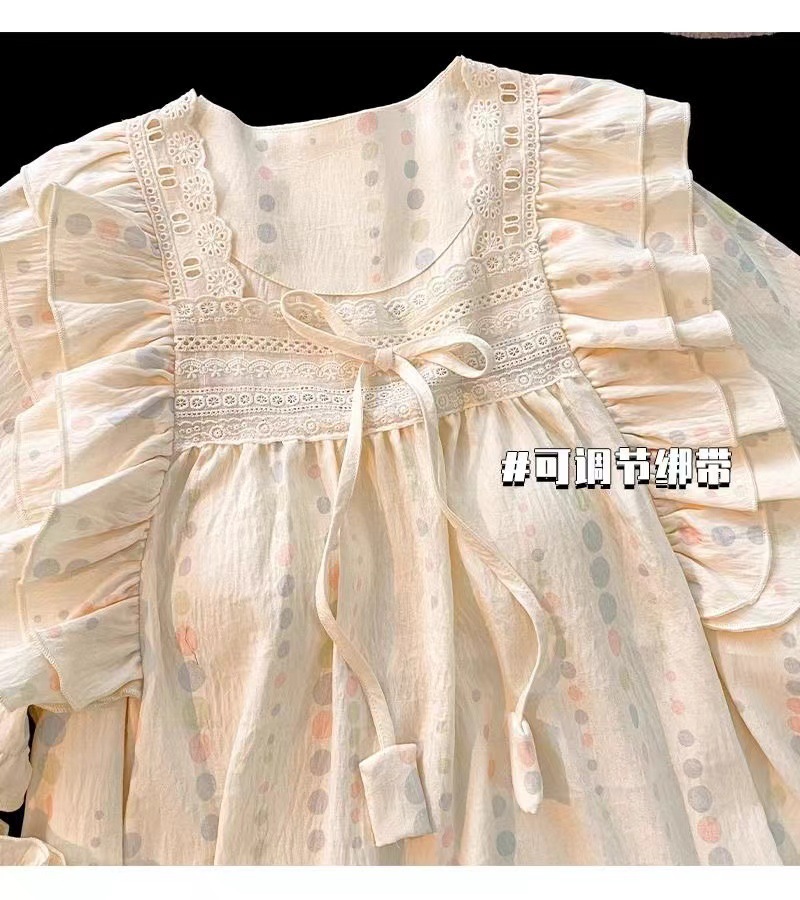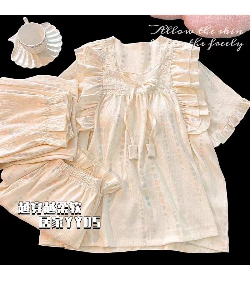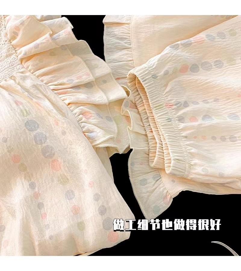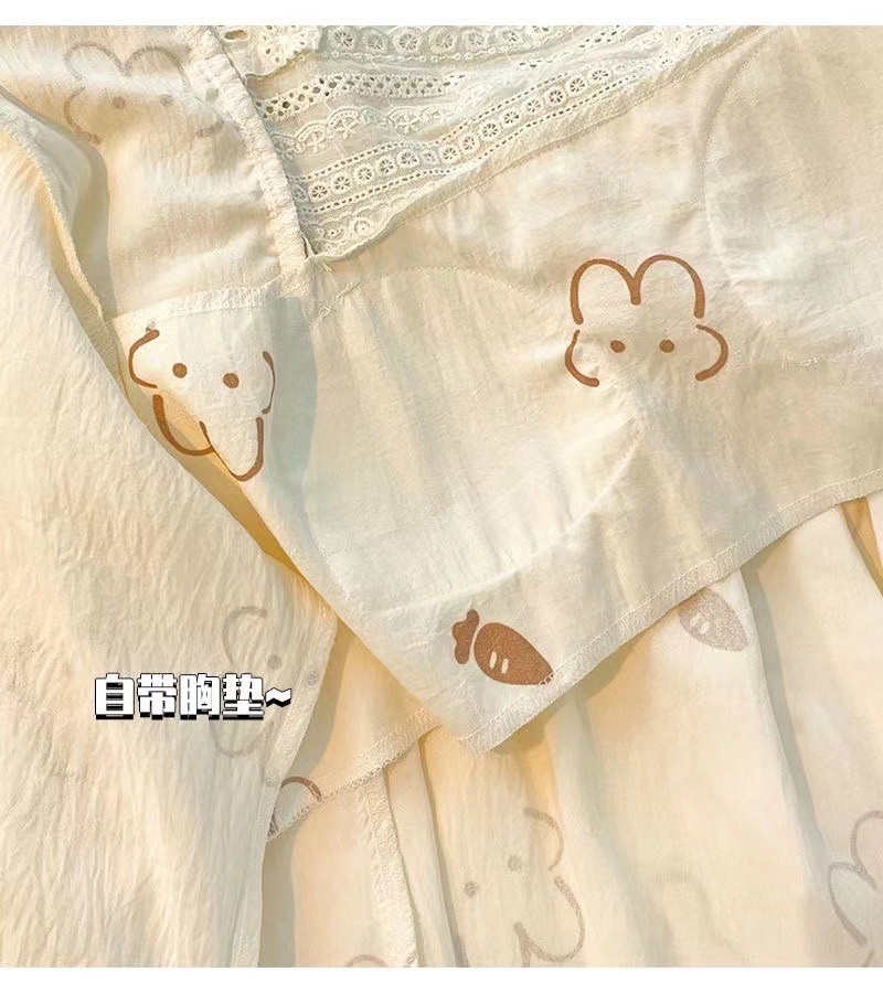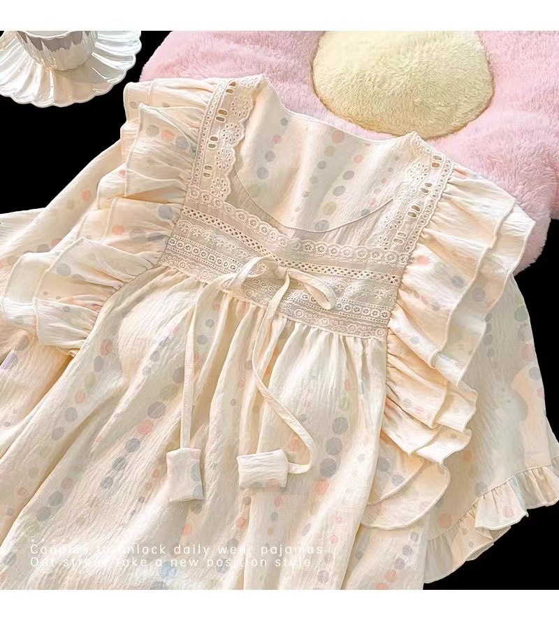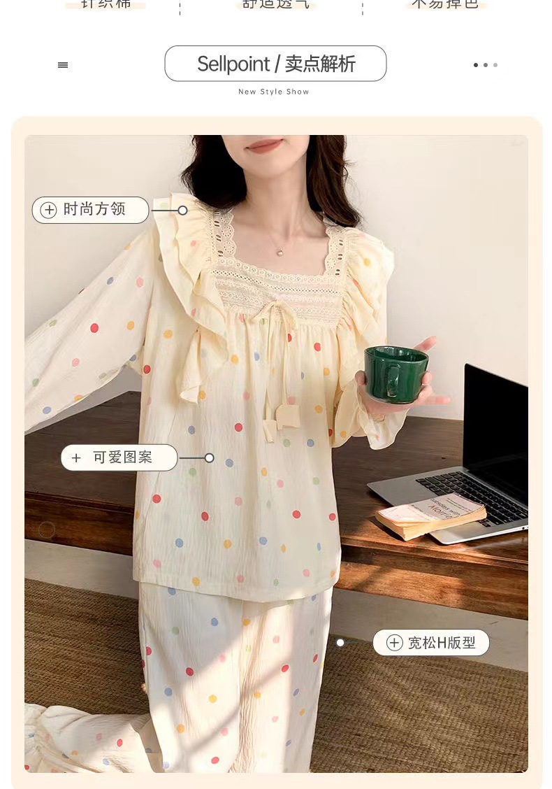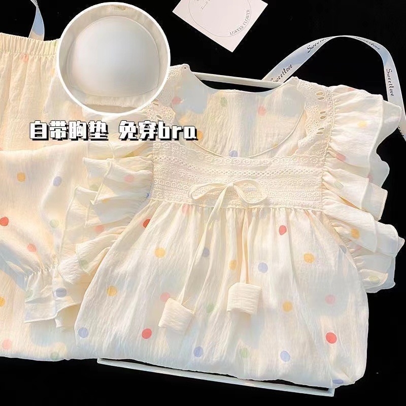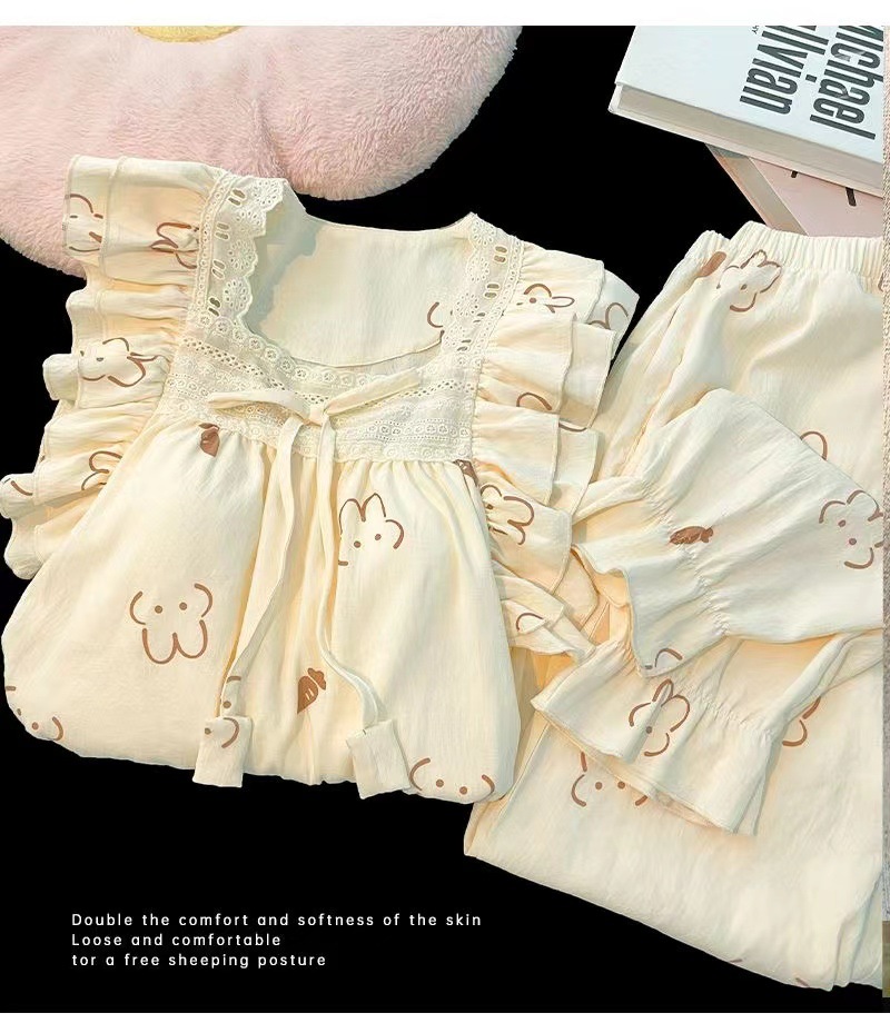 잠옷 여성용 가슴 패드 봄과 가을 달콤한 귀여운 구름 코튼 세트 캐주얼 느슨한 외부 긴 소매 홈 옷을 입고
