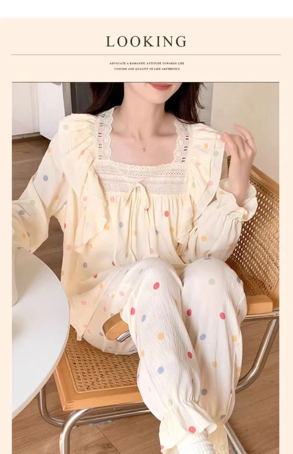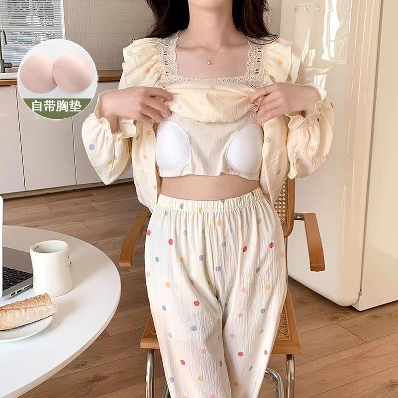 잠옷 여성용 가슴 패드 봄과 가을 달콤한 귀여운 구름 코튼 세트 캐주얼 느슨한 외부 긴 소매 홈 옷을 입고스토어 가기