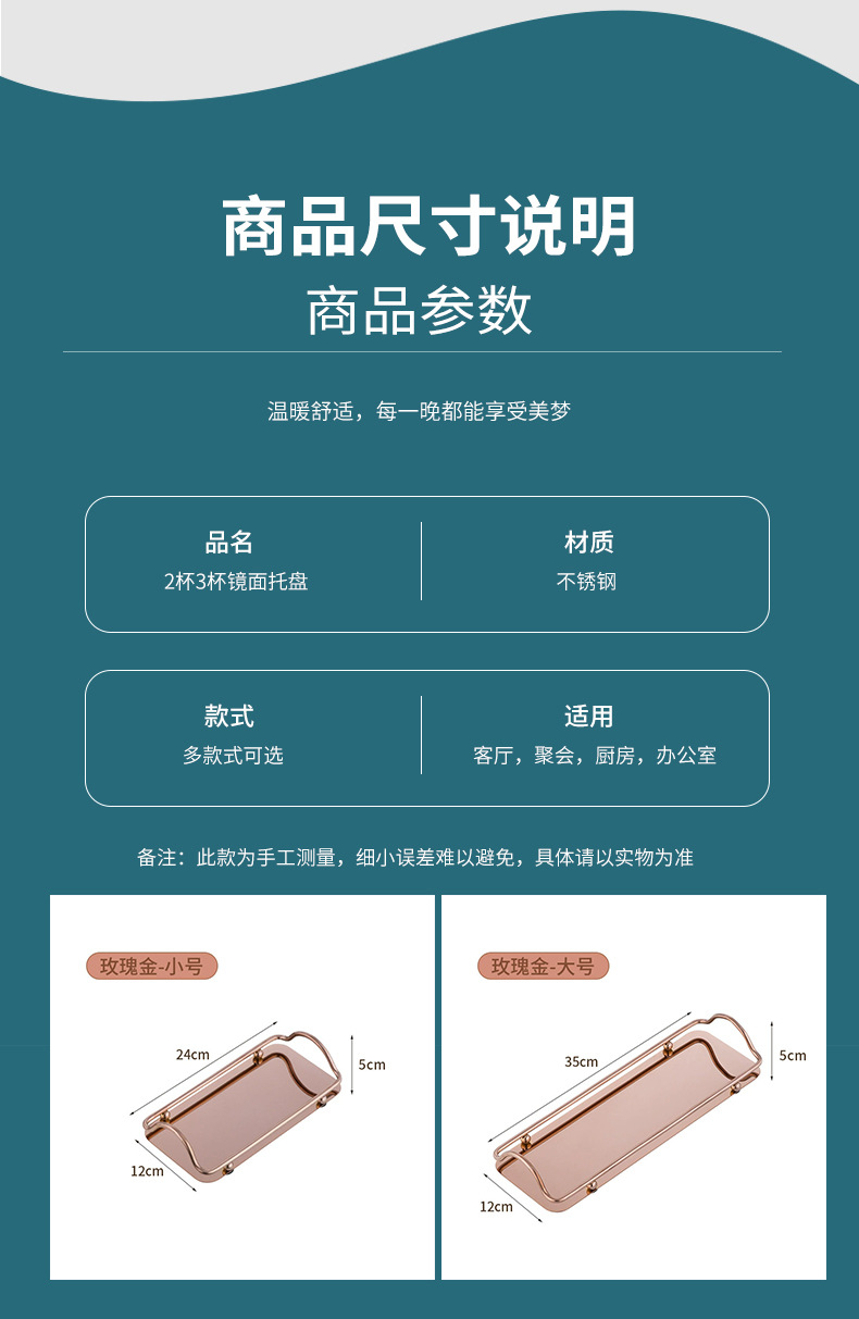 • 로즈골드 2컵 사각트레이 (12*24*5)