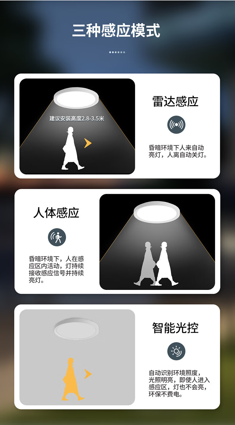 • 마이크로파 레이더 센서 라이트 Yuyan 18W 백색광