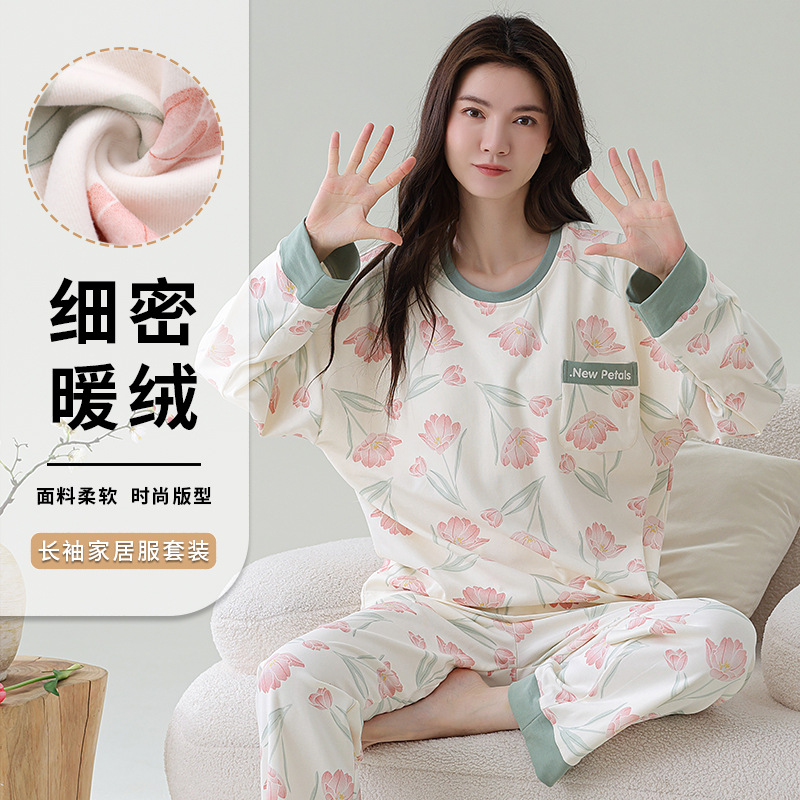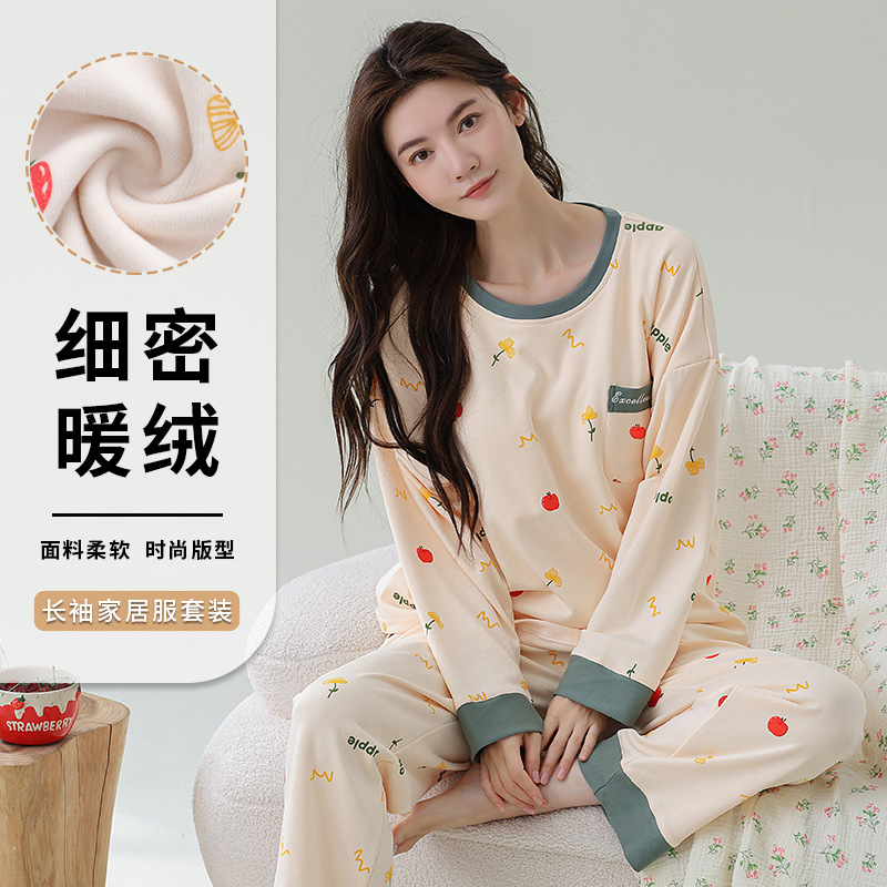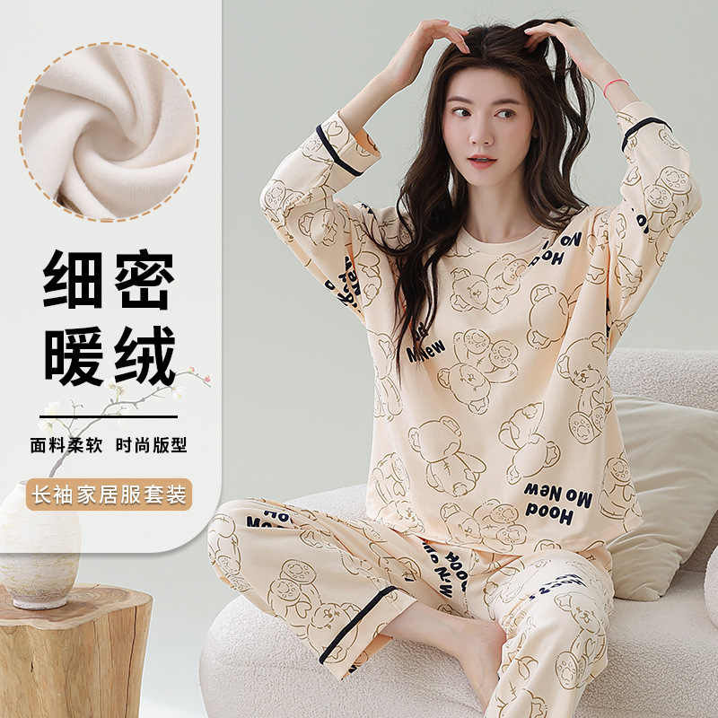 가을과 겨울 잠옷 여성용 벨벳 따뜻한 긴팔 크루 넥 풀오버 만화 달콤한 학생 소녀의 겉옷 홈 옷스토어 가기