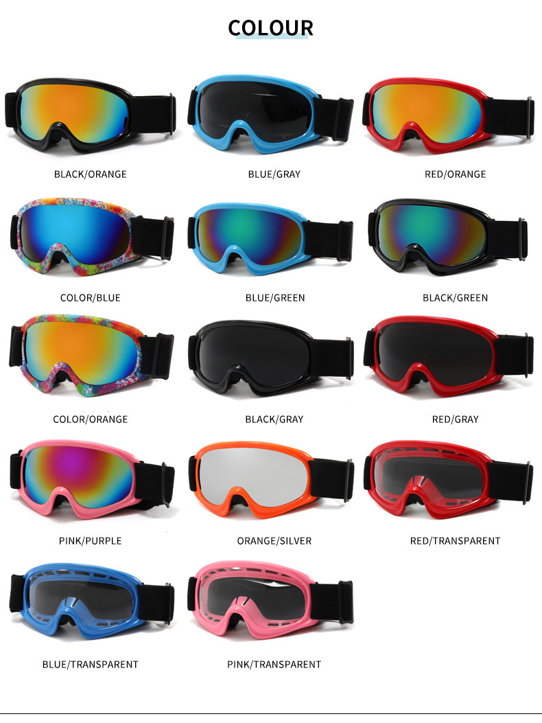 국경 간 새로운 야외 스포츠 선글라스 어린이 방풍 눈 보호 안경 패션 다채로운 어린이 스키 안경 도매
