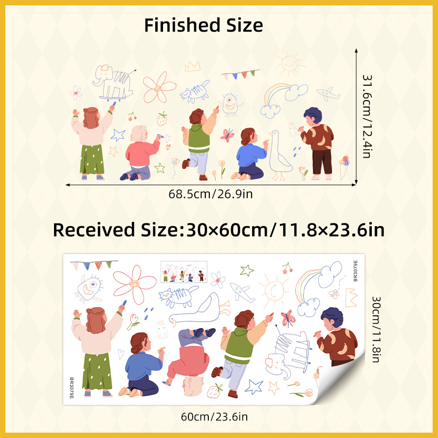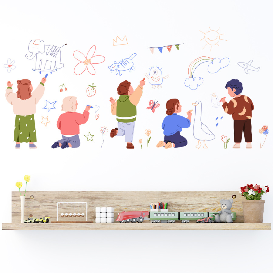 어린이 방 배경 벽 유치원 장식 스티커 BR3079E 만화 아이 같은 낙서 벽 자체 접착 벽 스티커