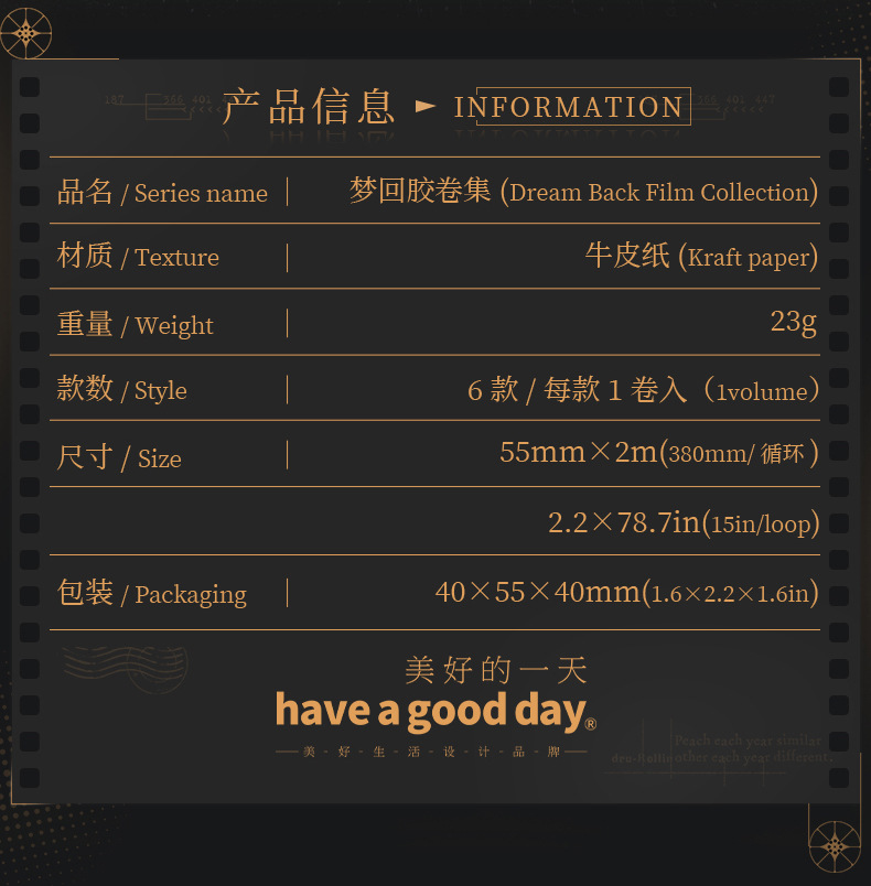 좋은 하루, 드림 백 필름 컬렉션 시리즈 필름 테마 다이컷 테이프, 심플한 흑백 필름, 다용도