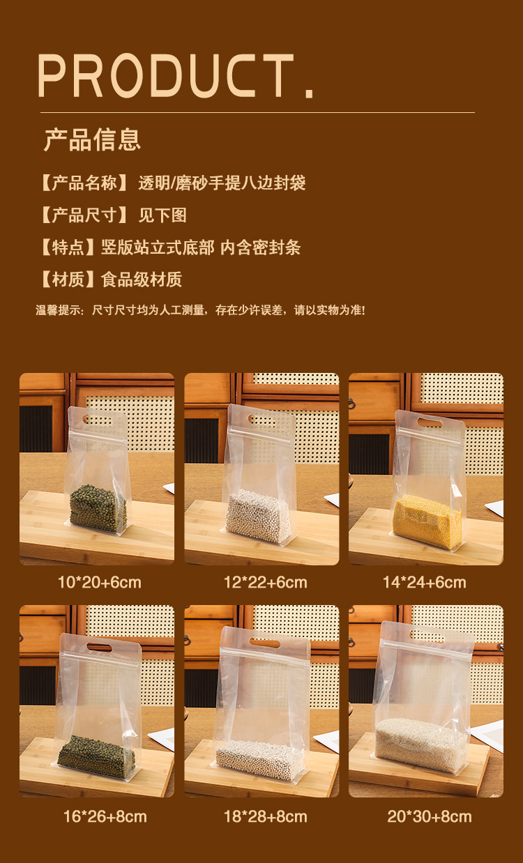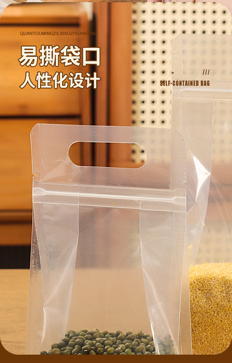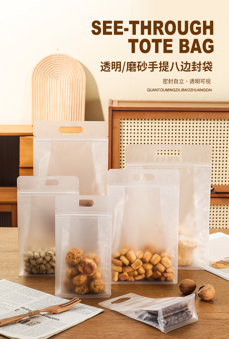 식품 포장 백 투명 자가 밀봉 쌀 꽃차 건과일 간식 밀봉 백 손잡이형 반투명 8면 밀봉 자립형 백스토어 가기