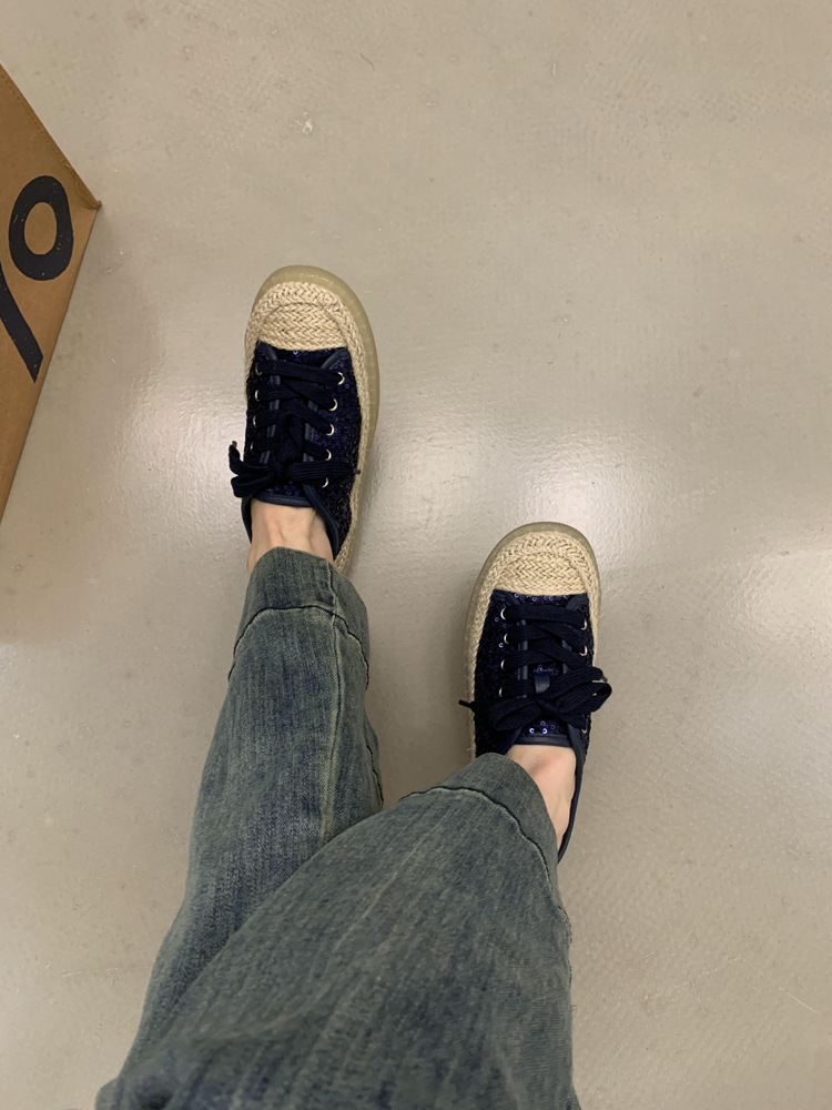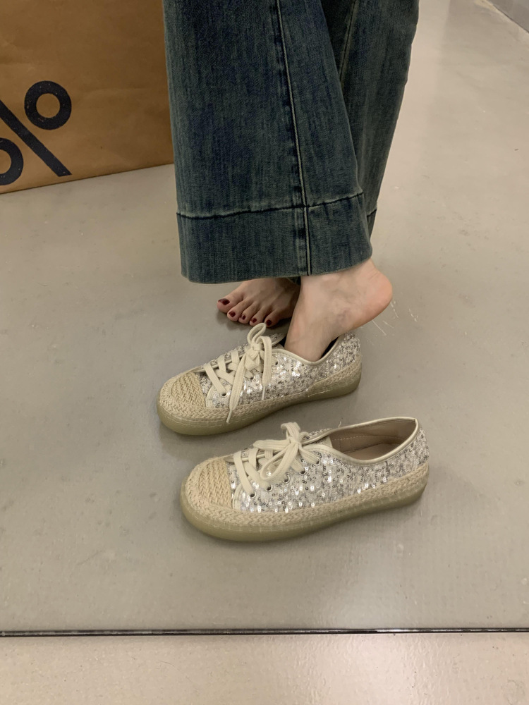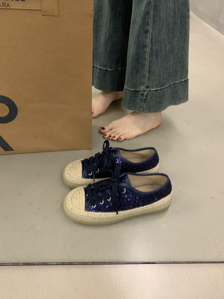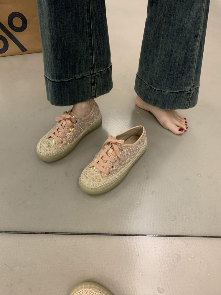 프랑스 고급 밀짚 플랫폼 레이스 업 속편 어부 신발 여성 신발 게으른 로퍼 패션 캐주얼 신발스토어 가기