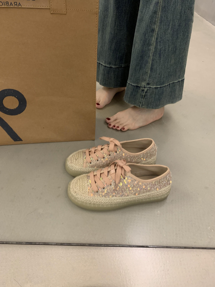 프랑스 고급 밀짚 플랫폼 레이스 업 속편 어부 신발 여성 신발 게으른 로퍼 패션 캐주얼 신발