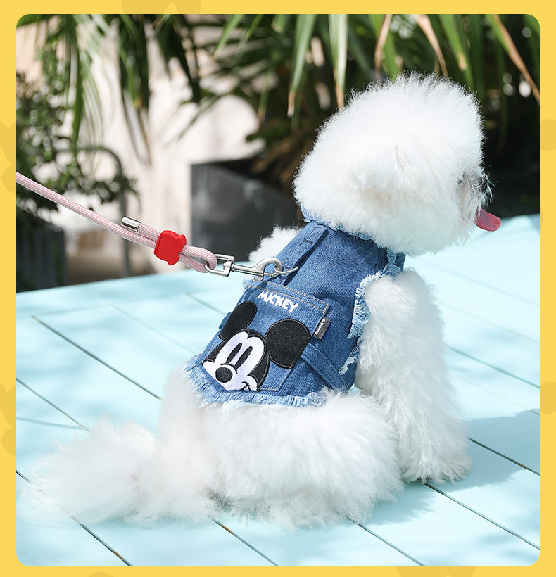 미키 시리즈 개 견인 로프 조정 가능한 가슴과 뒤 세트 고양이 안티 브레이크 프리 개 걷는 밧줄 애완 동물스토어 가기
