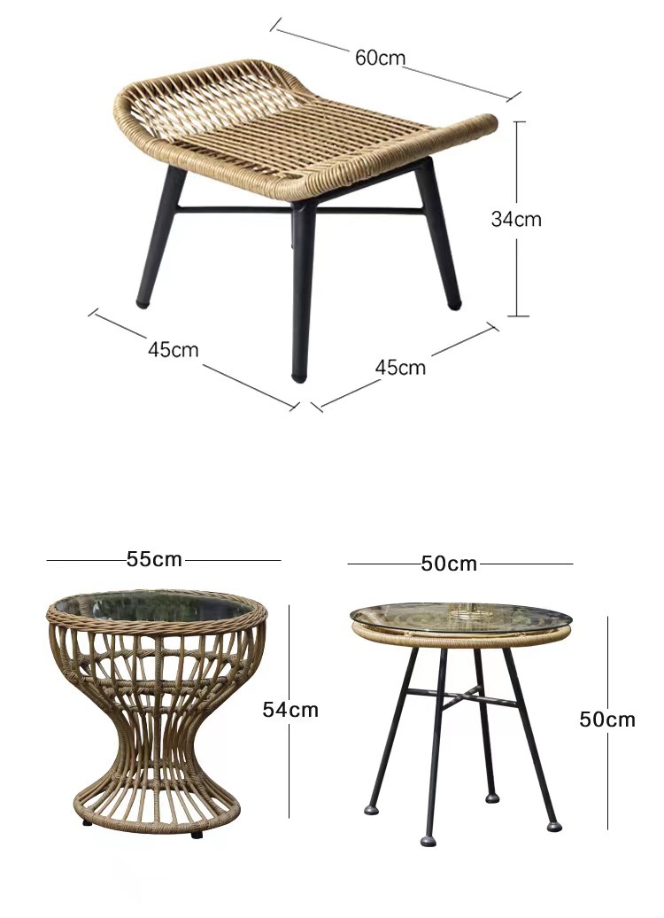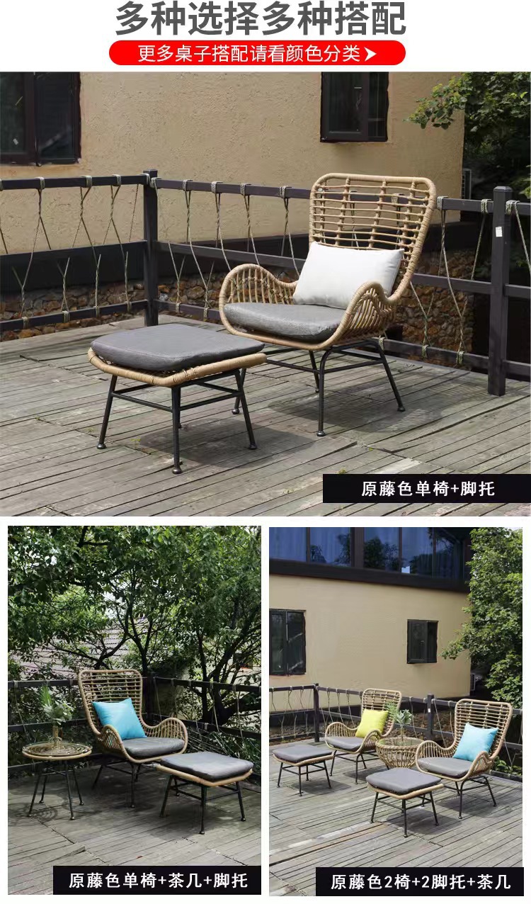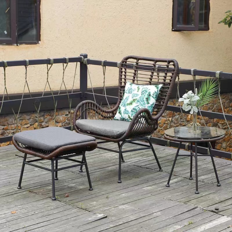발코니 등나무 의자 싱글 등받이 의자 게으른 레저 소파 레코더 등나무 야외 테라스 테이블과 의자 작은 커피 테이블 조합스토어 가기