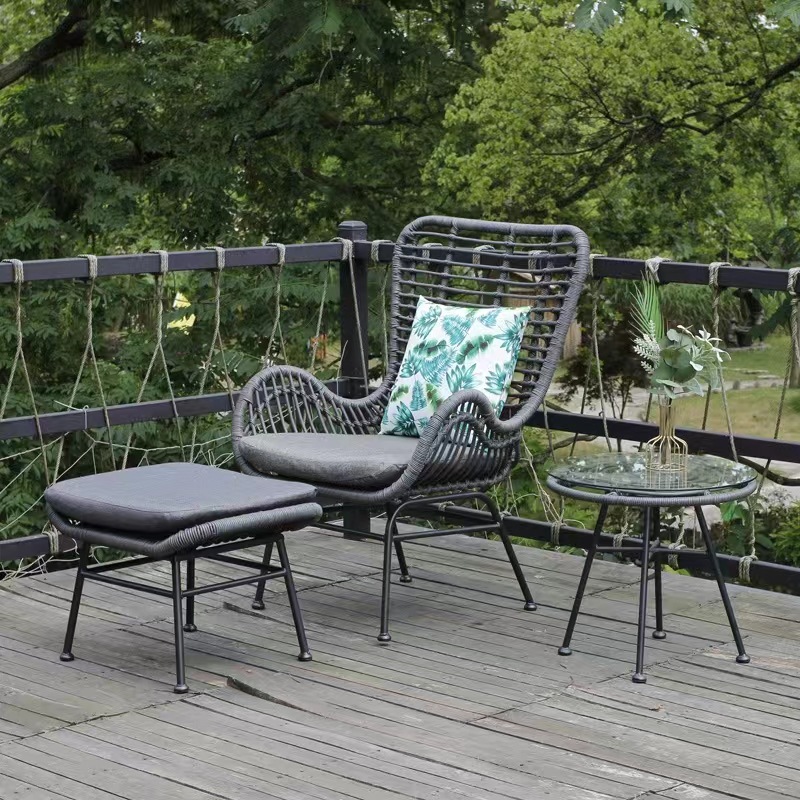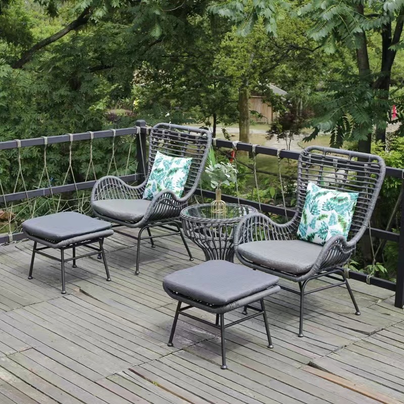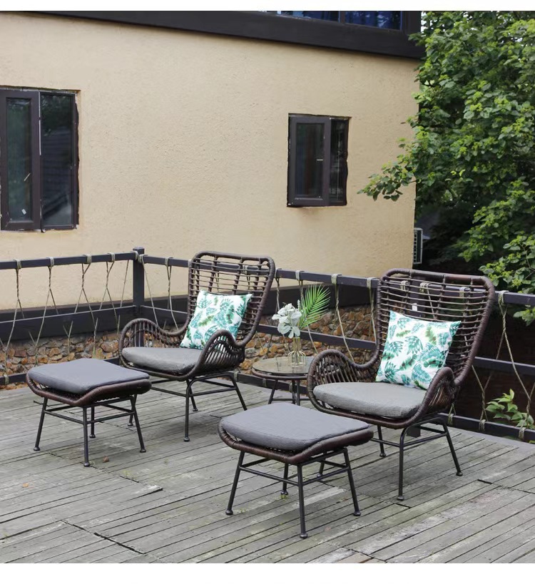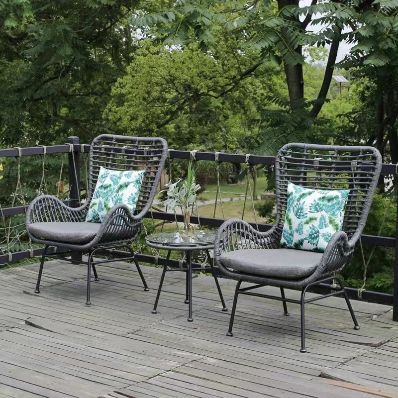 발코니 등나무 의자 싱글 등받이 의자 게으른 레저 소파 레코더 등나무 야외 테라스 테이블과 의자 작은 커피 테이블 조합