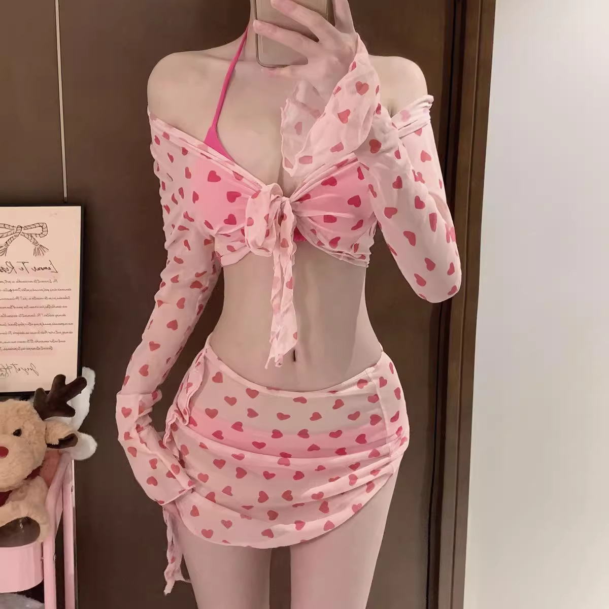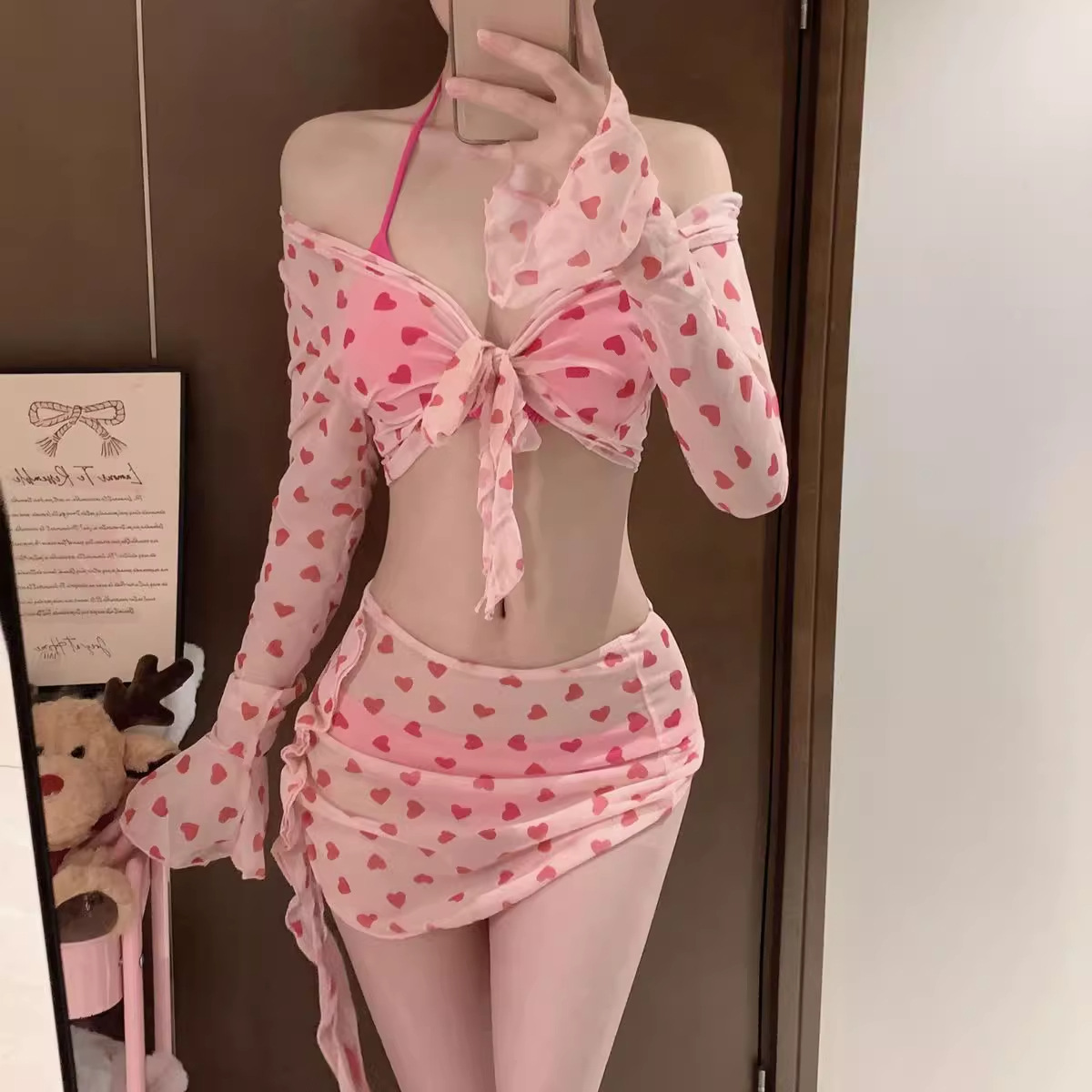 수영복 여성 2024 새로운 분할 섹시 퓨어 비키니 4 피스 세트 아름다운 여성 분위기 워터 파크스토어 가기