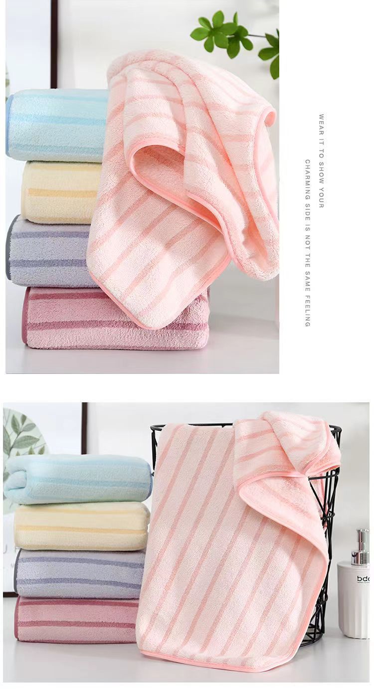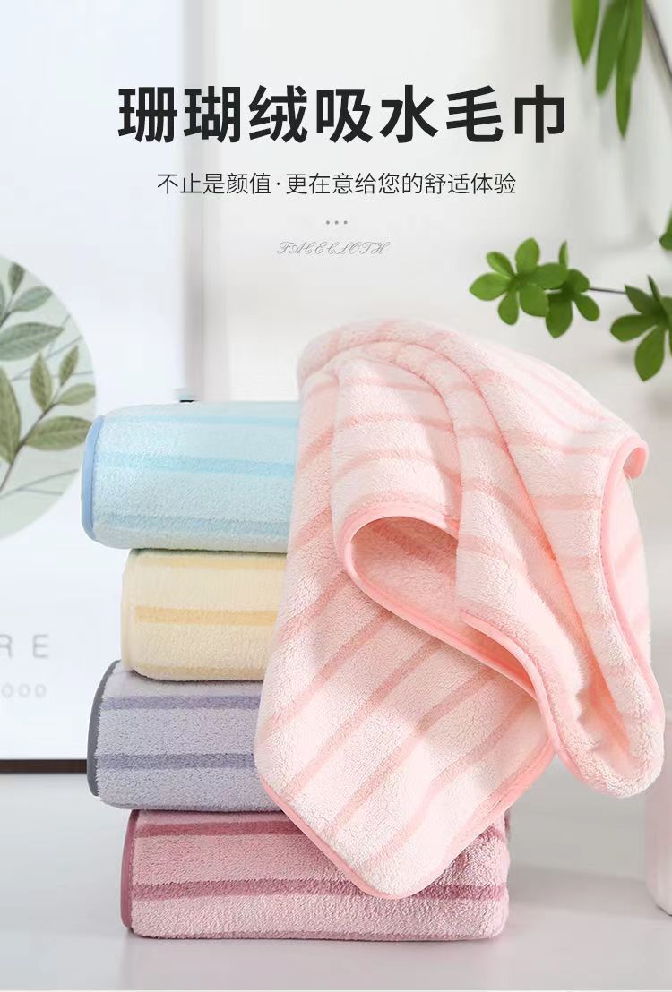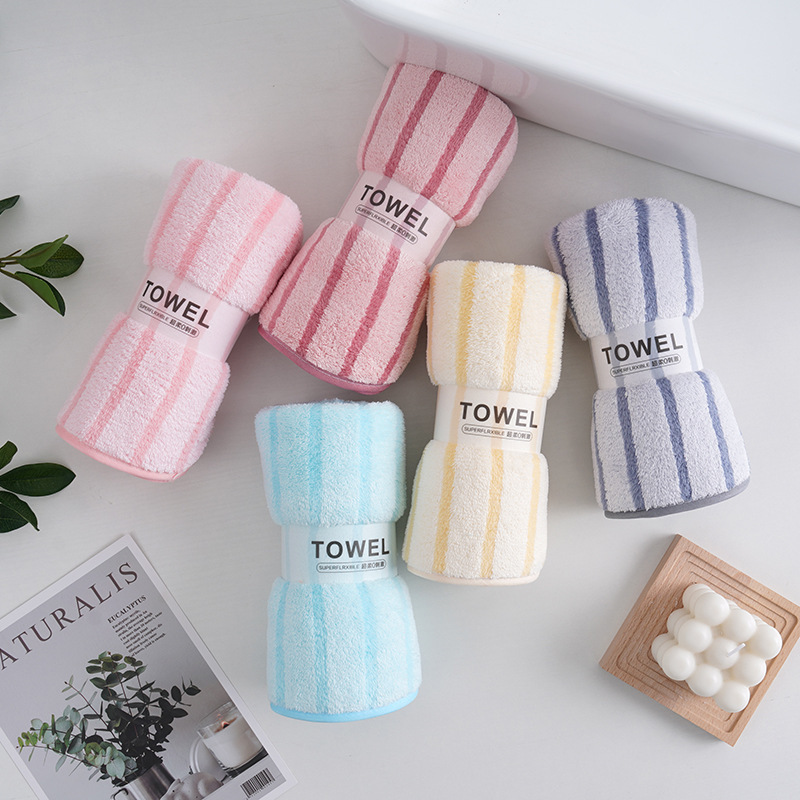 산호 양털 수건 가정용 흡수제는 머리카락을 흘리기 쉽지 않음 수건 마른 헤어 스트라이프 타월 5 개 제조 업체 도매스토어 가기
