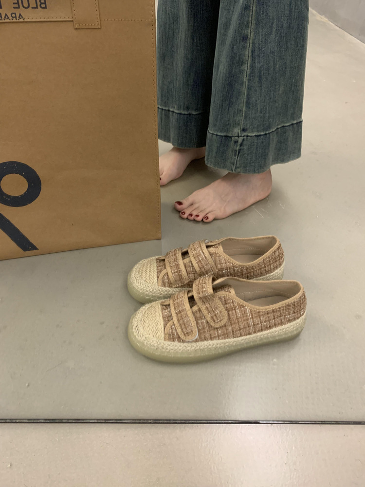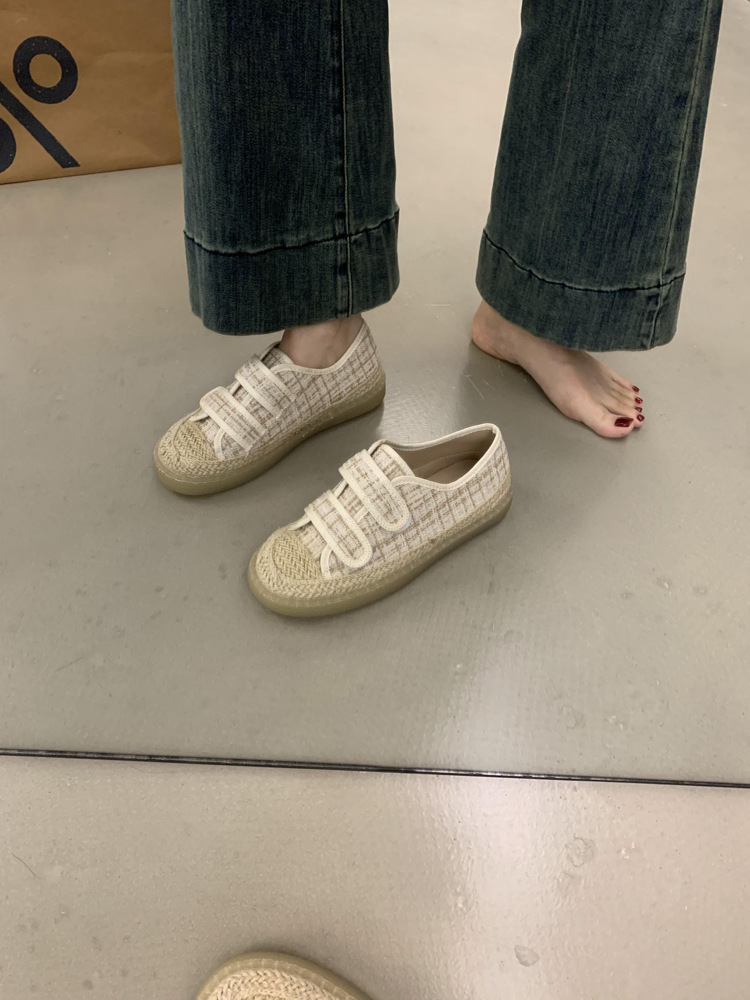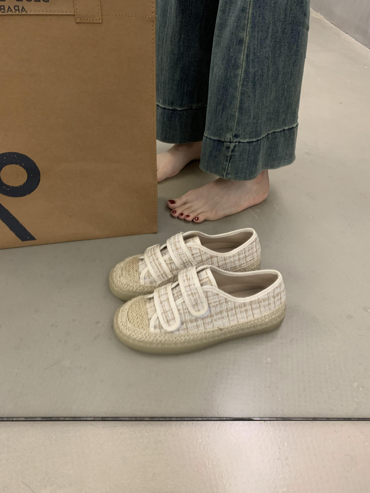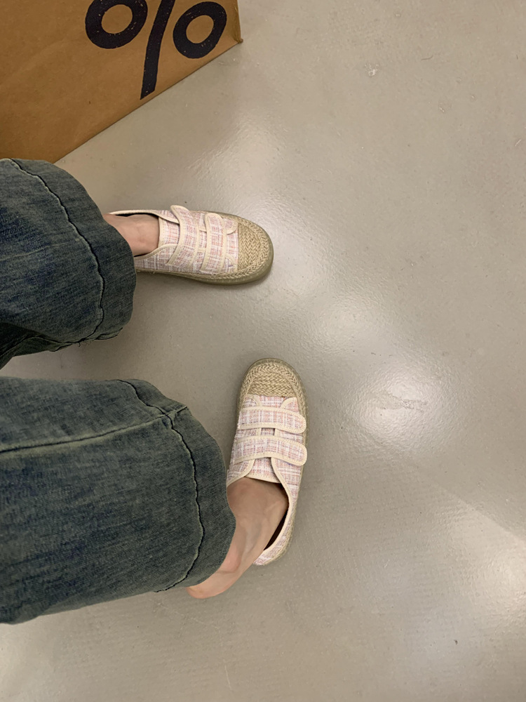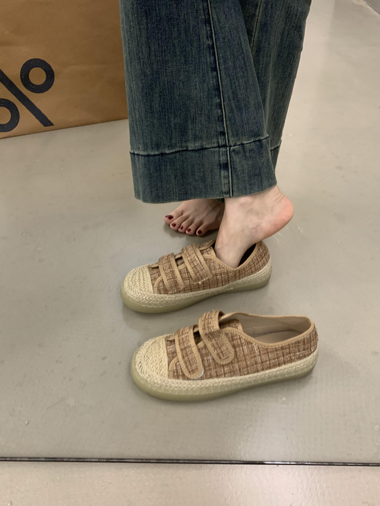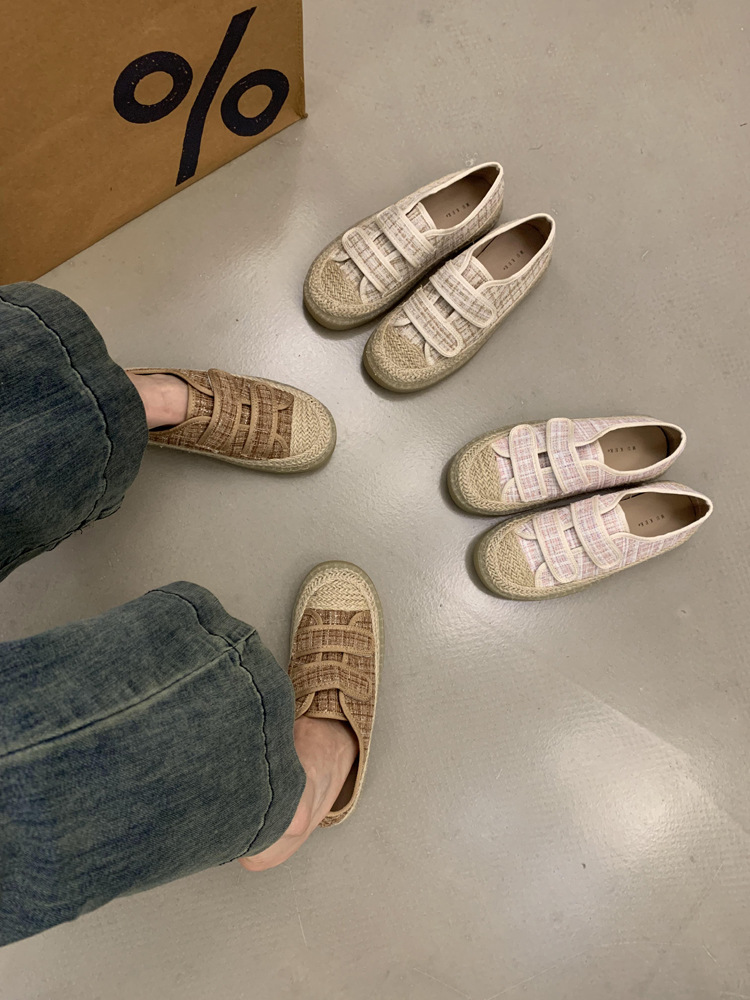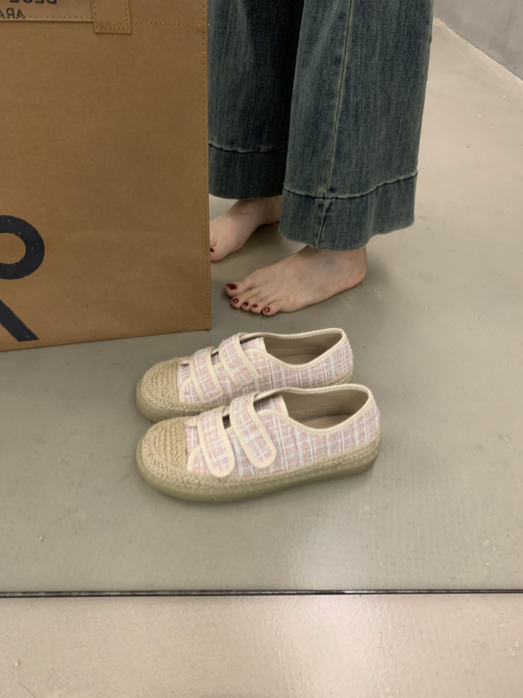 프랑스 스타일 향기로운 스타일 격자 무늬 벨크로 원-밀짚 플랫폼이있는 신발 어부 신발 게으른 한 단계 로퍼 신발 여성용스토어 가기
