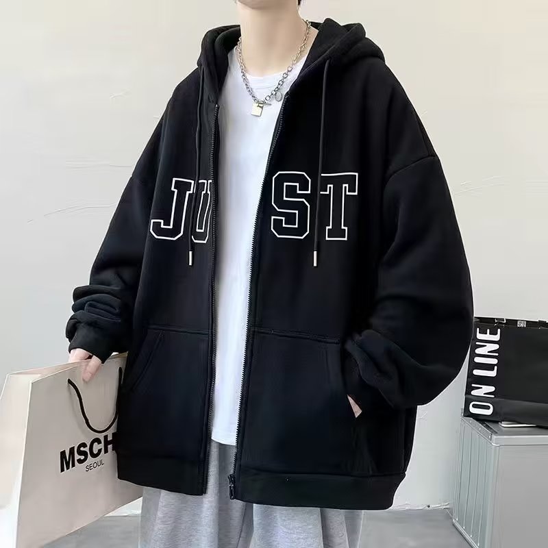남자 2024 새로운 도착 스웨터 홍콩 스타일 루즈 간단한 후드 스웨터 카디건 남자 트렌디 올 매치 재킷 남자 트렌디스토어 가기