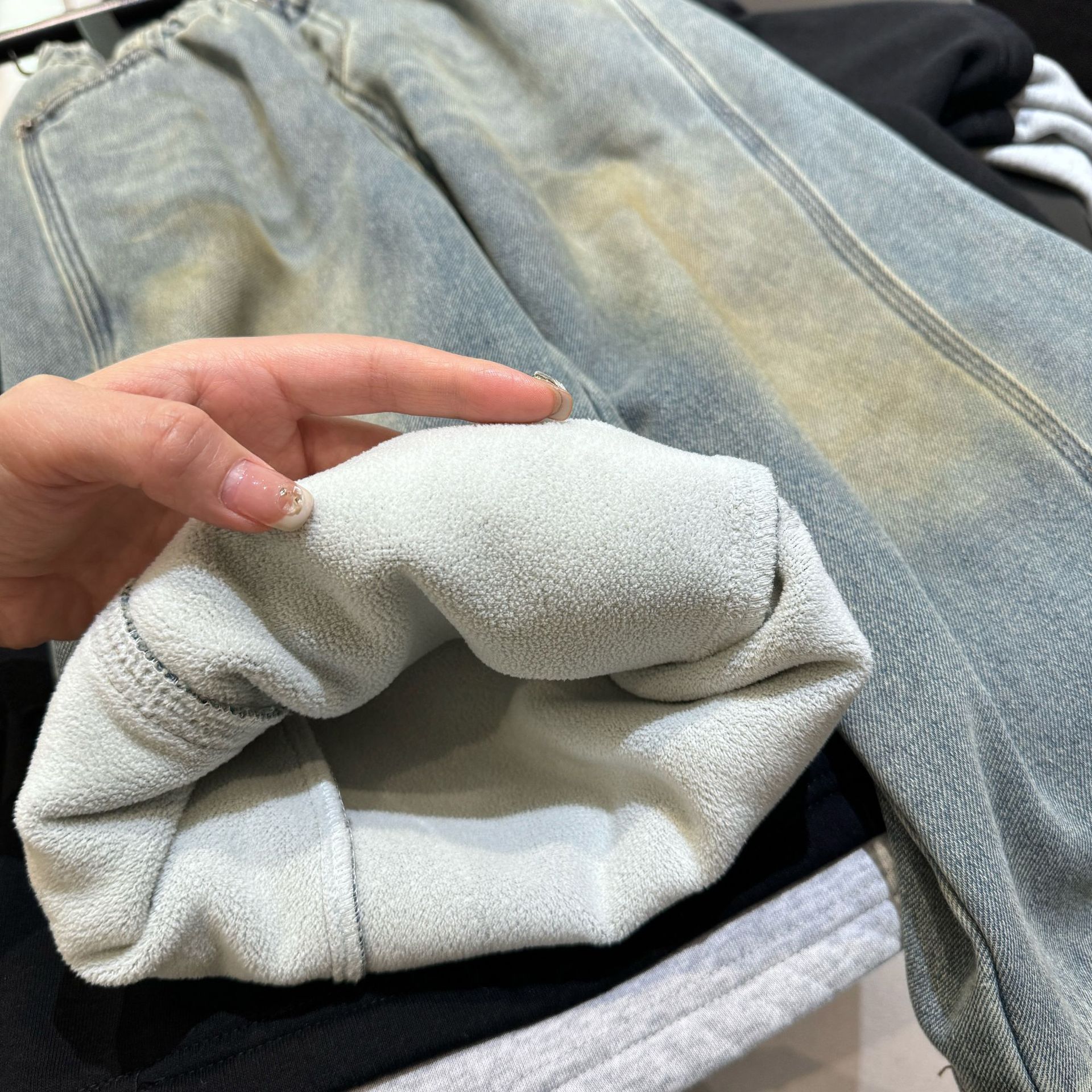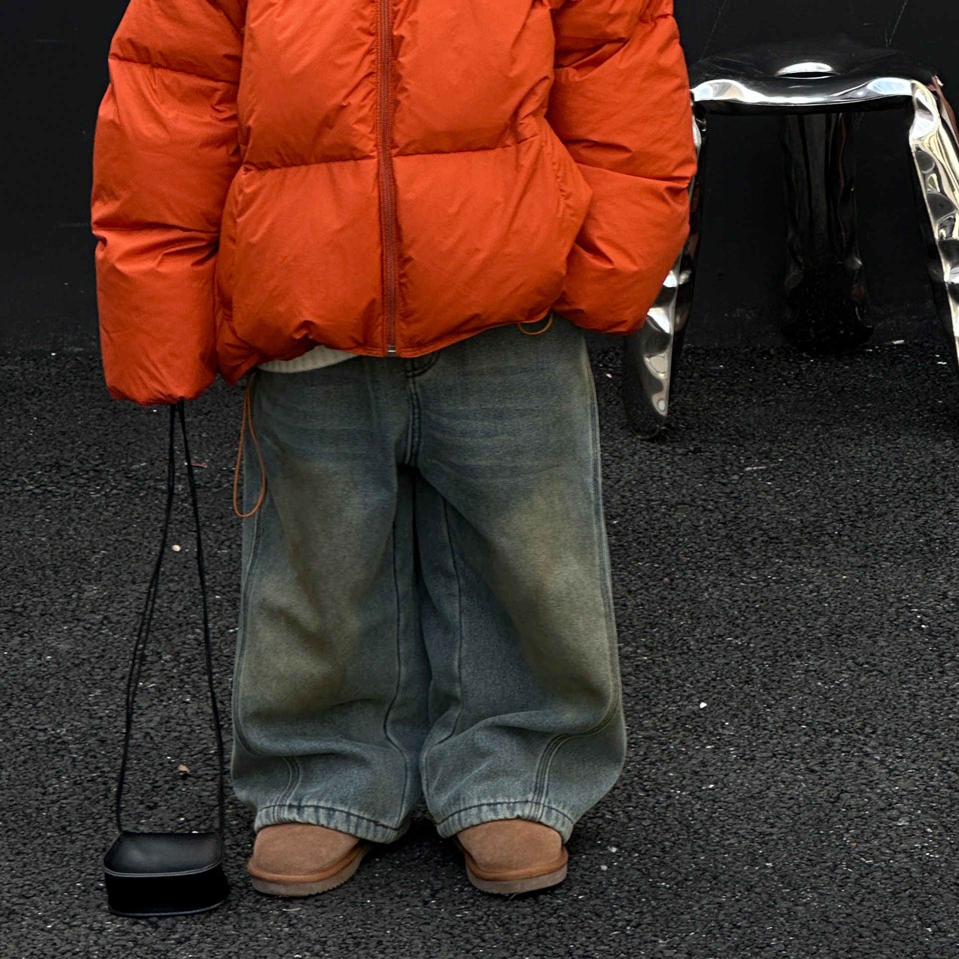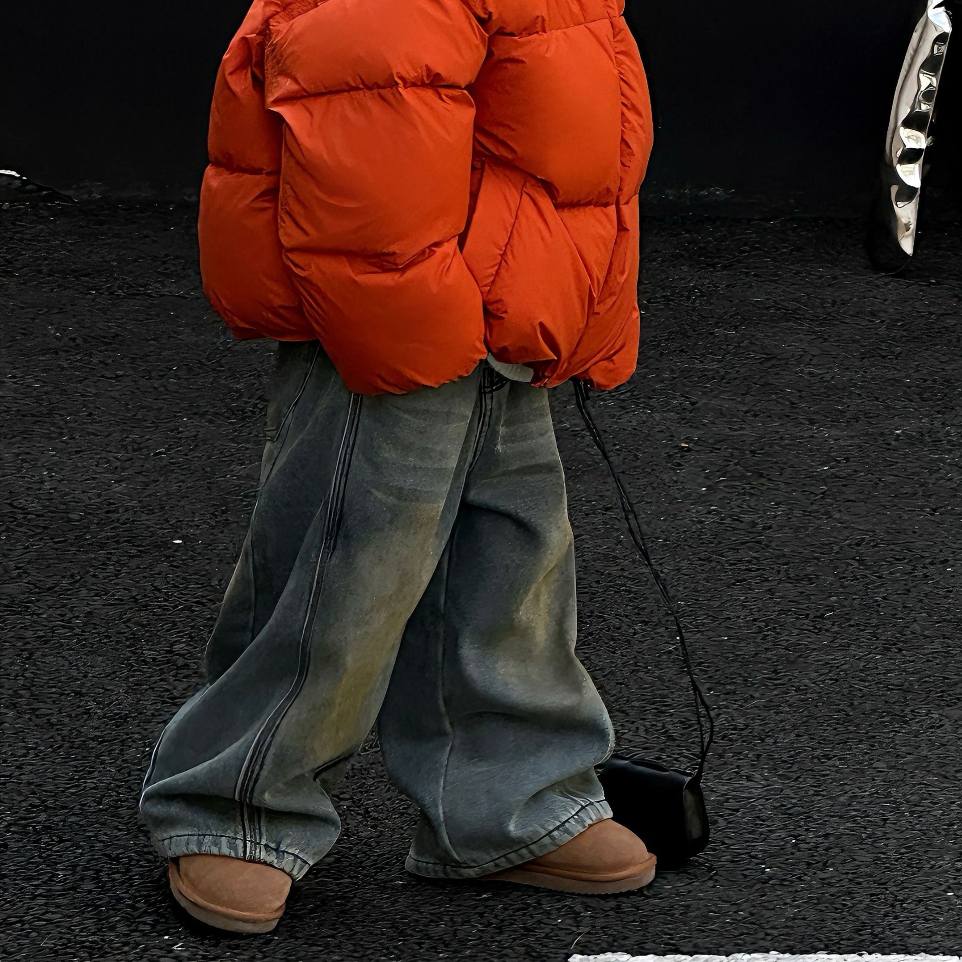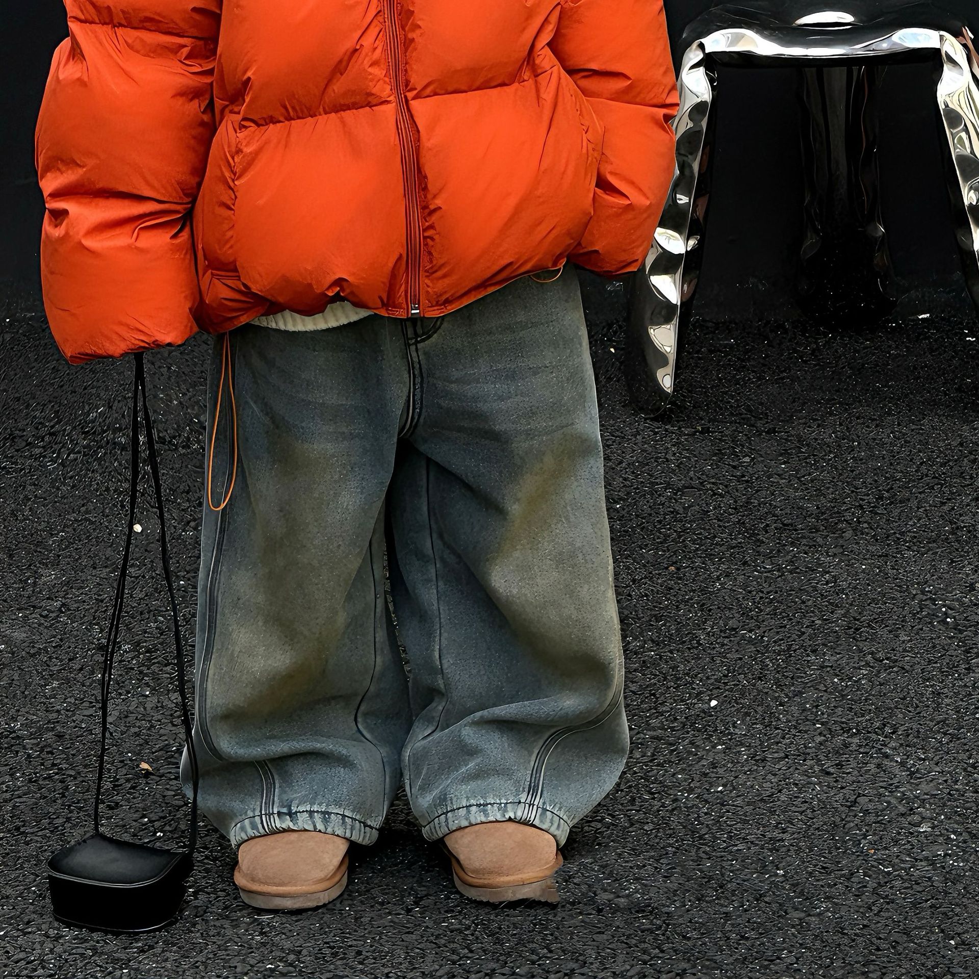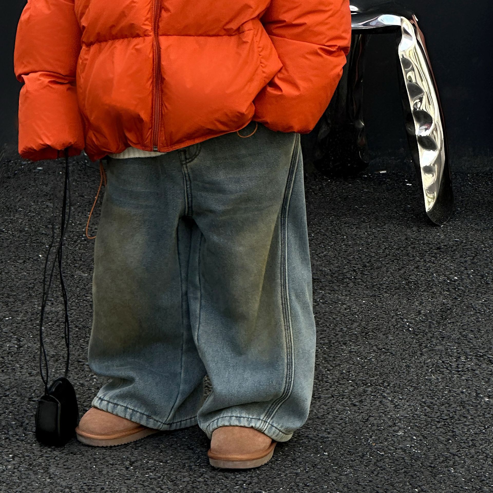 Tyru 2024 겨울 새 소년 패션 레트로 특수 톤 씻은 넓은 다리 청바지 어린이 유행 바지스토어 가기