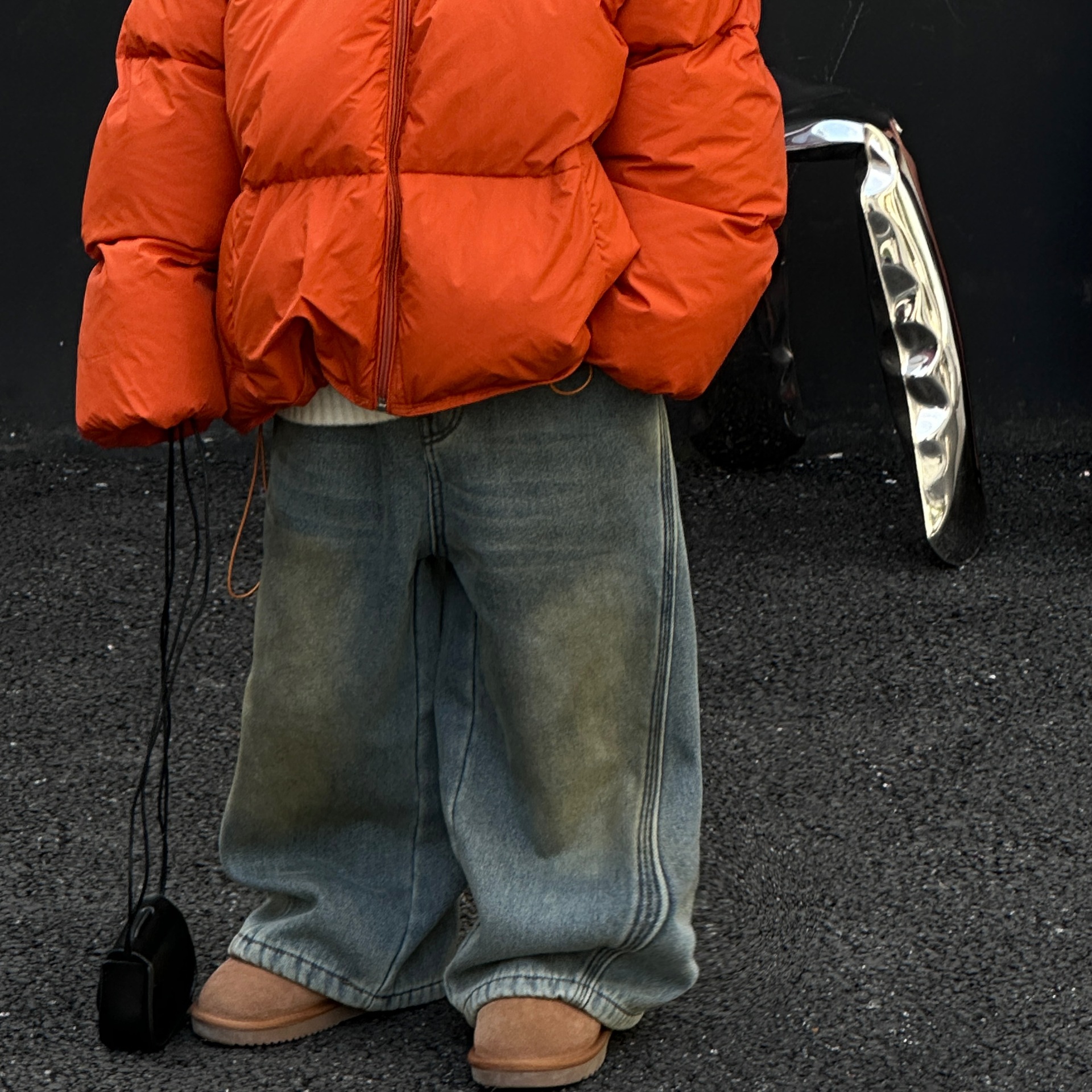 Tyru 2024 겨울 새 소년 패션 레트로 특수 톤 씻은 넓은 다리 청바지 어린이 유행 바지