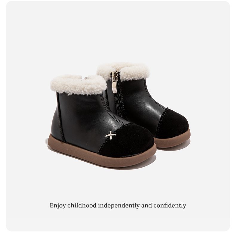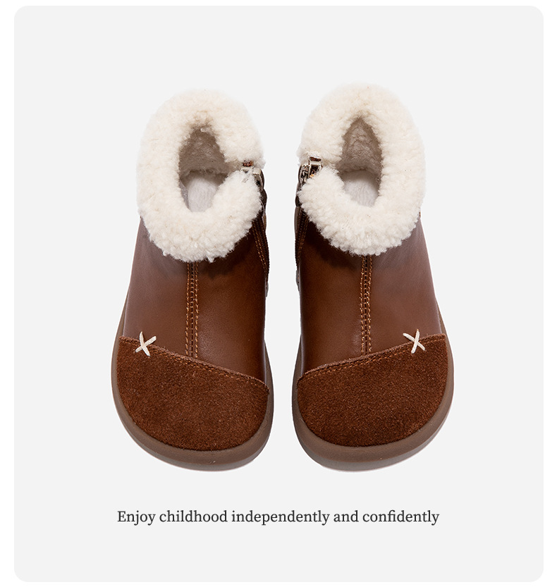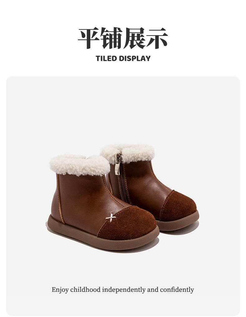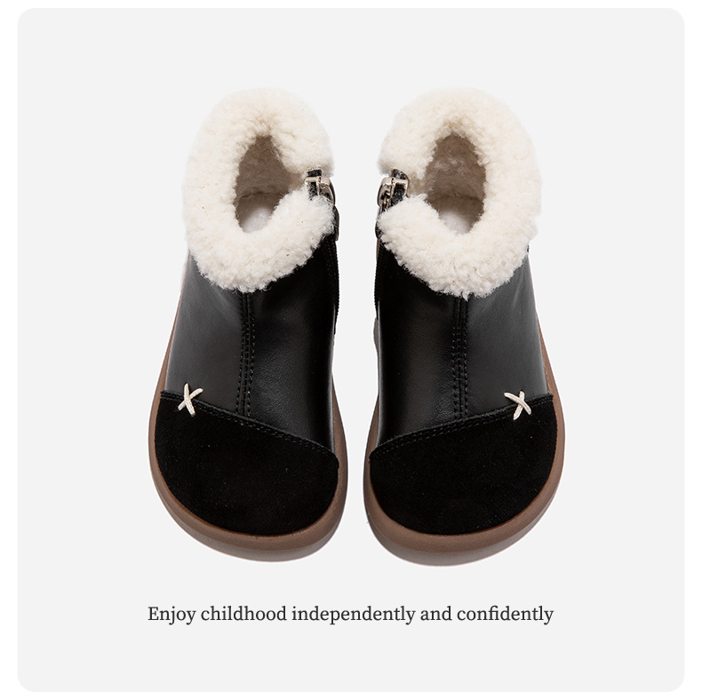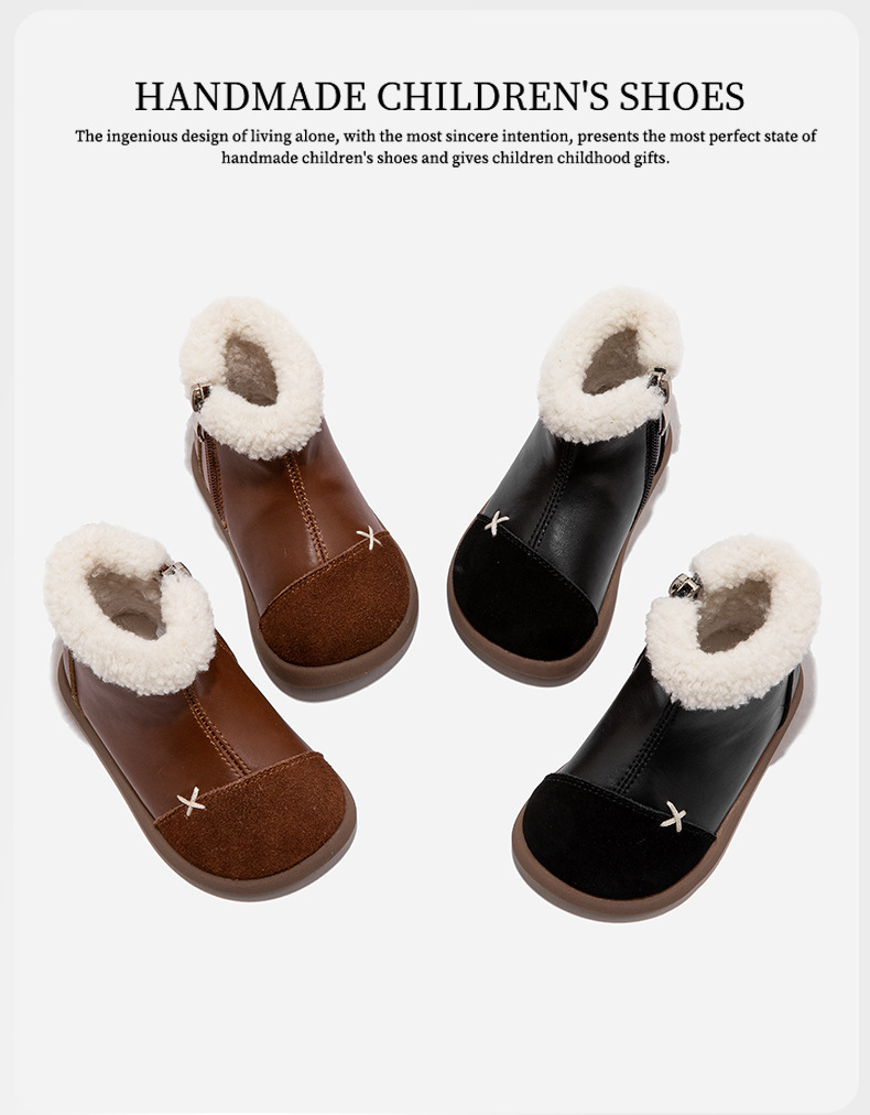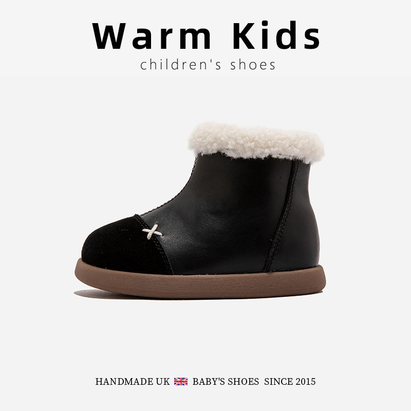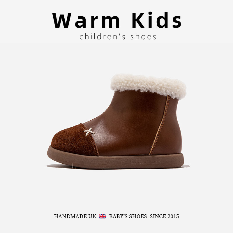 정품 가죽 소녀의 영국 레트로 컬러 블록 작은 가죽 부츠 가을 및 겨울 새로운 도착 아기 소녀의 어린이 기모 두꺼운 코튼 부츠스토어 가기